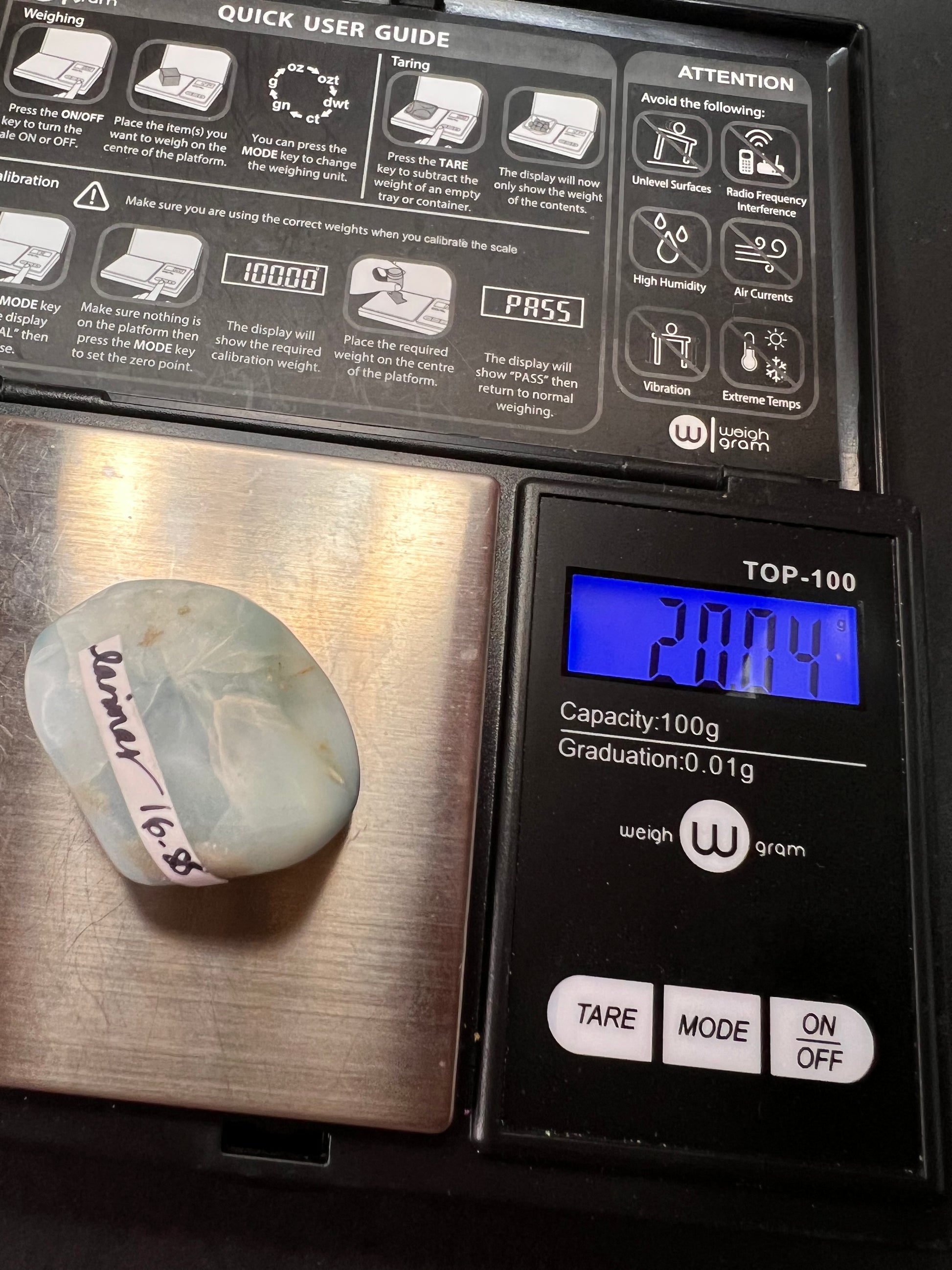 Larimar tumble from the Dominican Republic weighing 20.04 grams