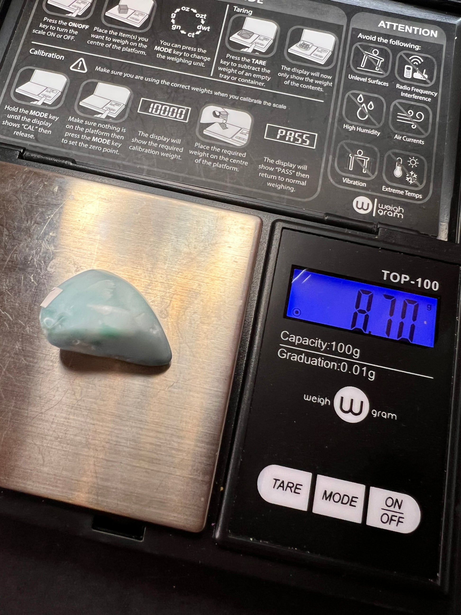 Larimar tumble from the Dominican Republic weighing 8.70 grams