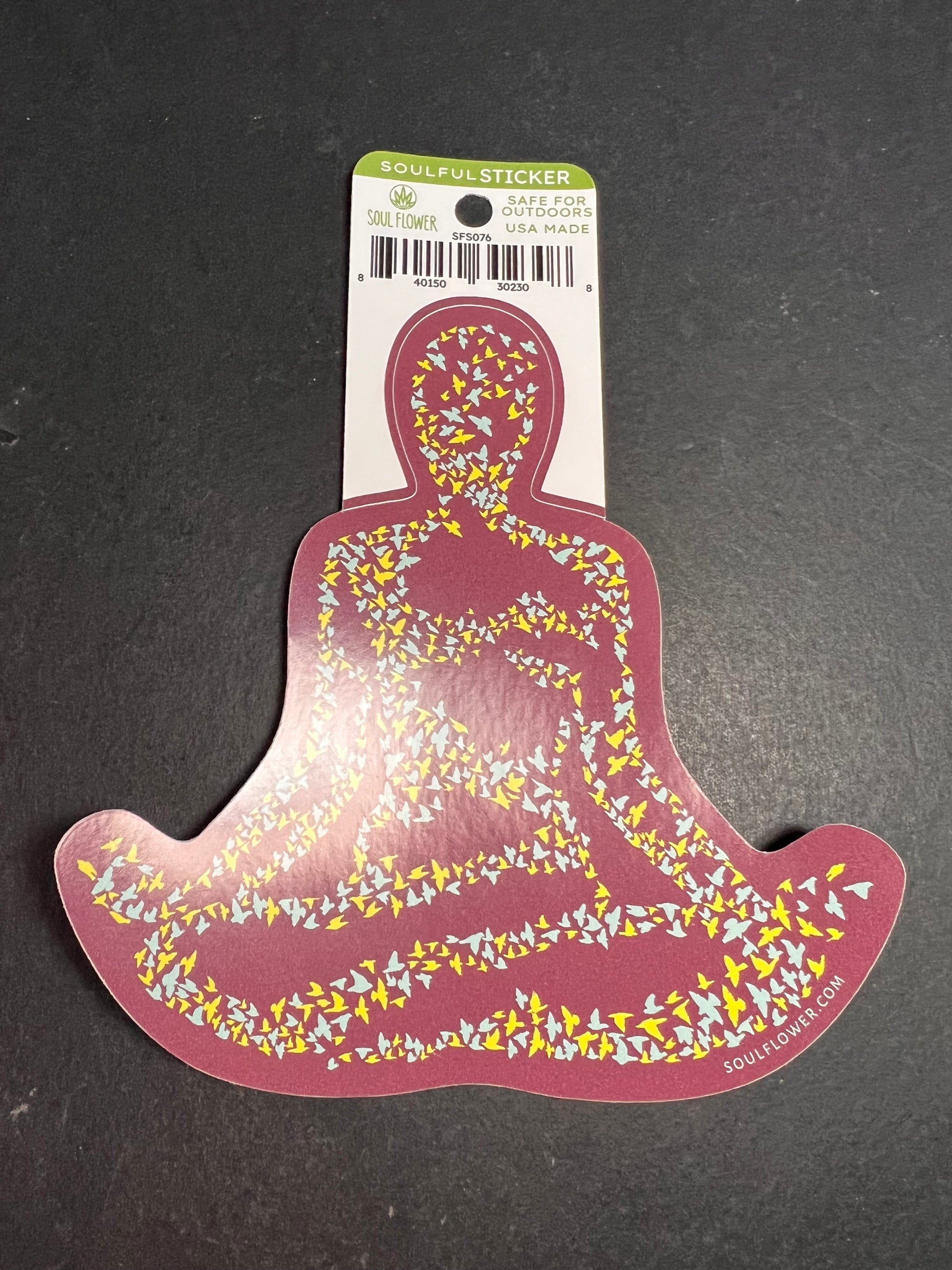 This peaceful sticker features a seated meditation figure filled with vibrant geometric patterns. With calming maroon tones and colorful triangles, it’s perfect for journals, water bottles, laptops, or anywhere you want to add a mindful touch.