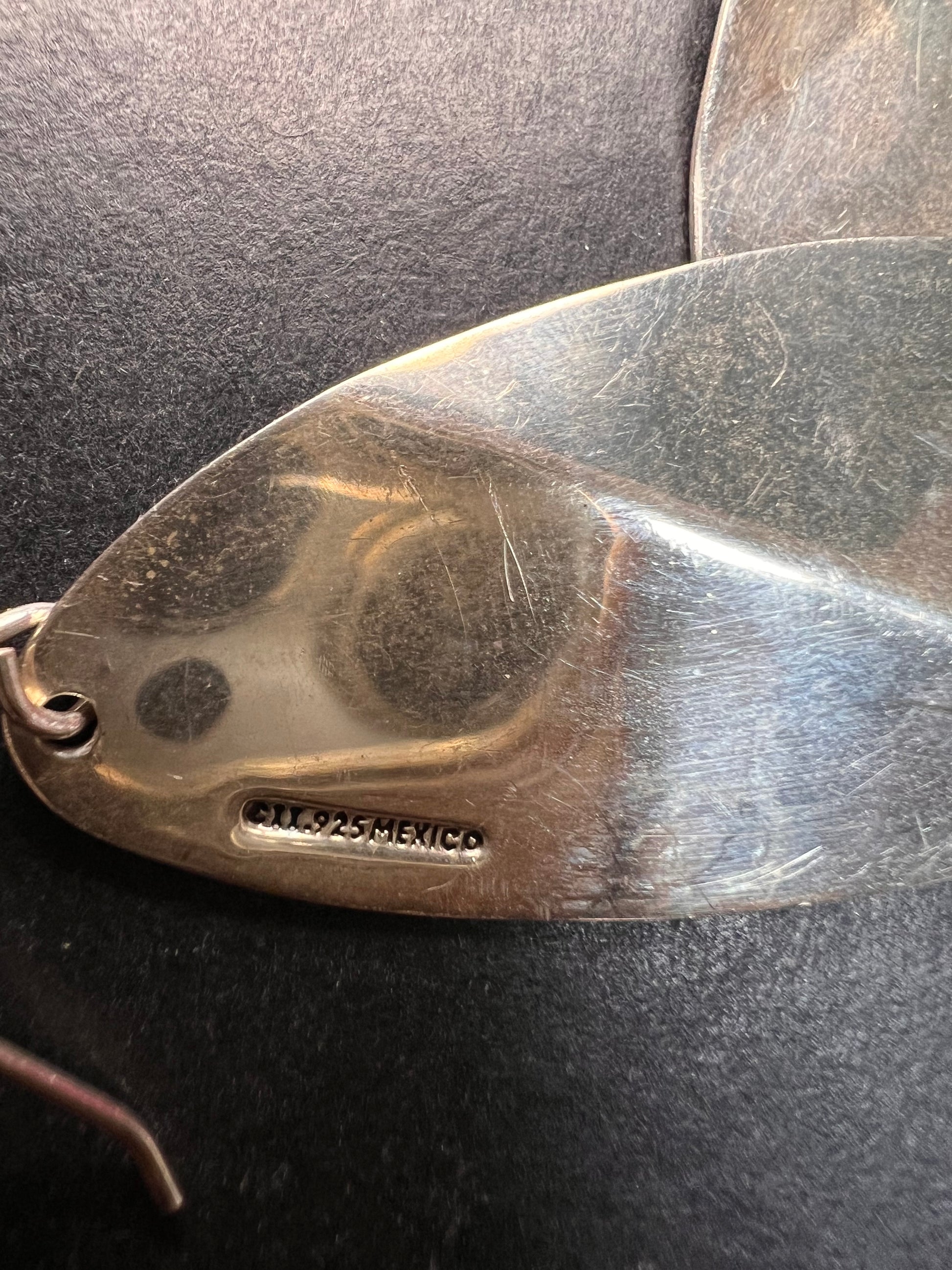 Authentic 925 Taxco mexican sterling silver. Total weight is 13.52 grams. Measurements are about 2.5x1 inch. CII.
