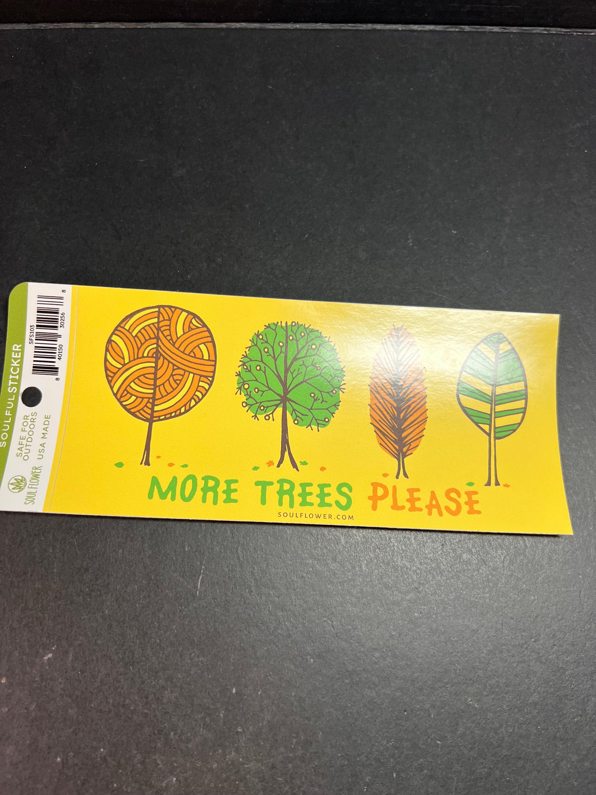 Bright, bold, and rooted in nature. This sticker features four unique tree designs on a sunny yellow background with the message “More Trees Please” in playful green and orange lettering. A perfect pick for eco-lovers, nature nerds, and tree huggers alike.