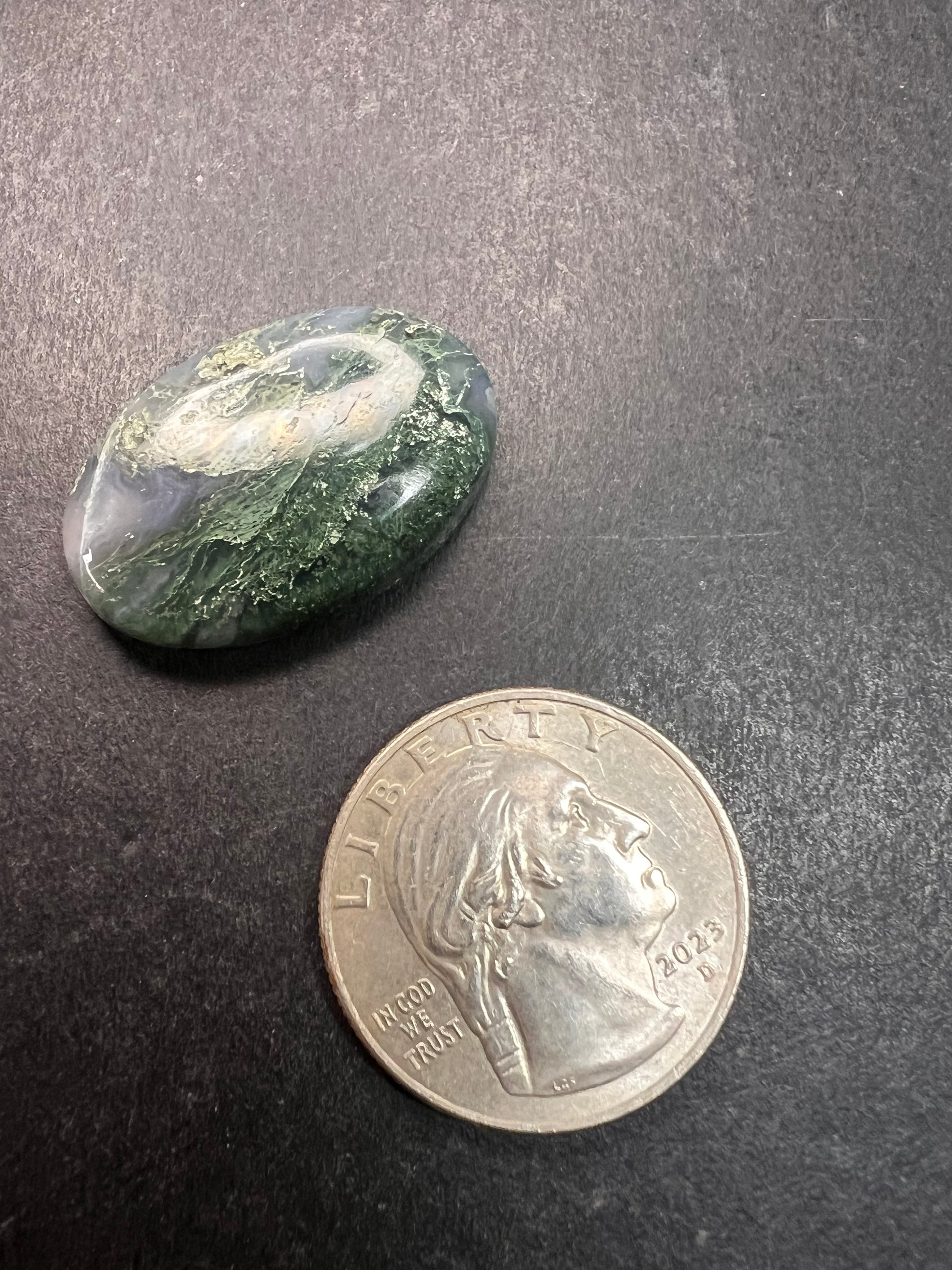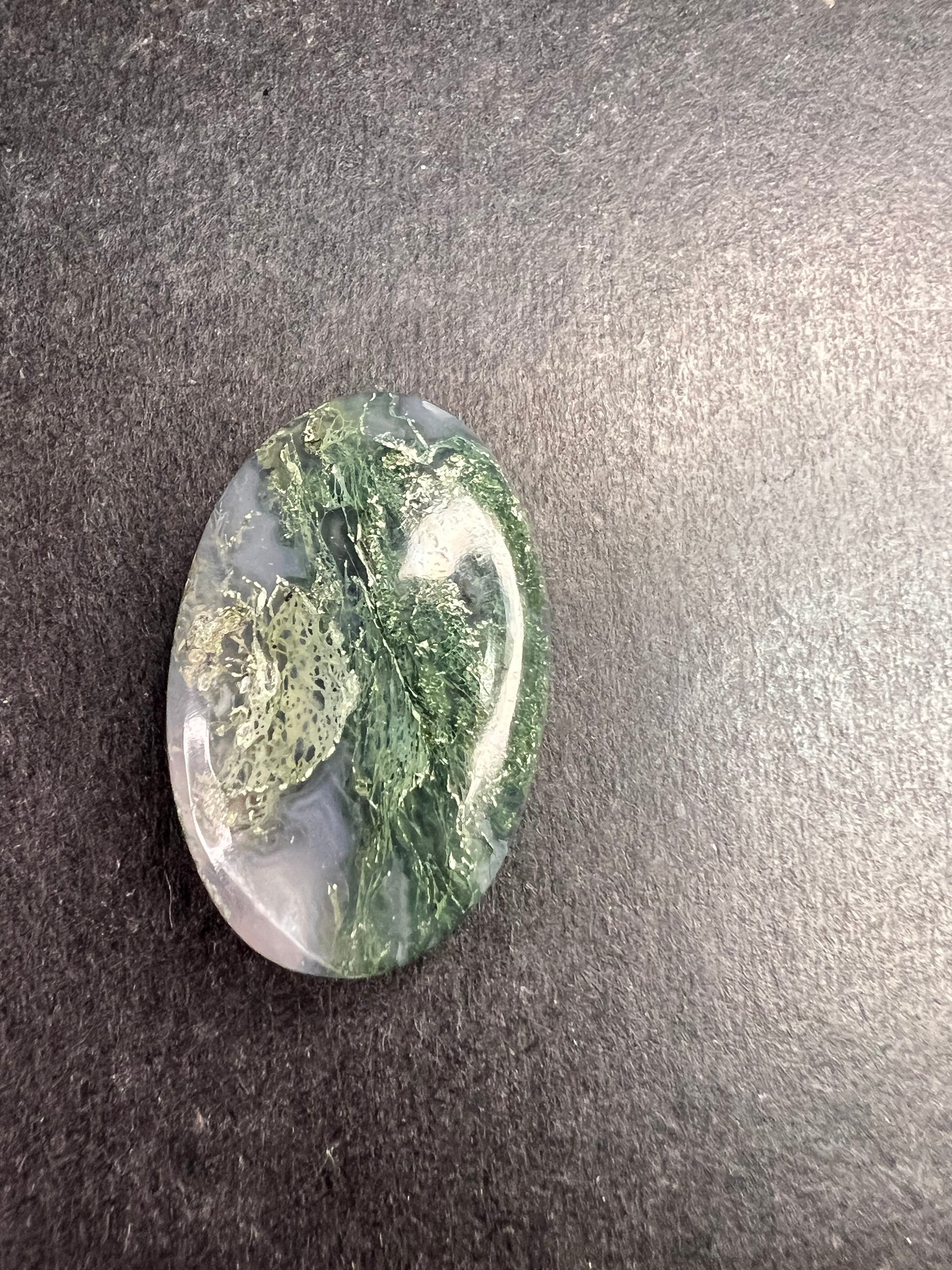 This is a natural Moss Agate cabochon, a dendritic form of Quartz. It is ideally sized for use in custom jewelry settings (ring, pendant, or brooch). Moss Agate promotes balance and connection to nature.