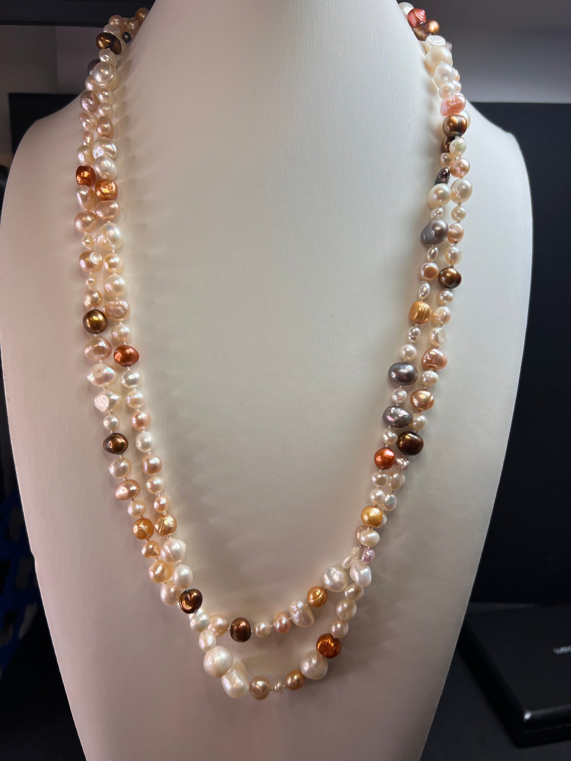 Multi colored freshwater pearls 50 inch endless necklace