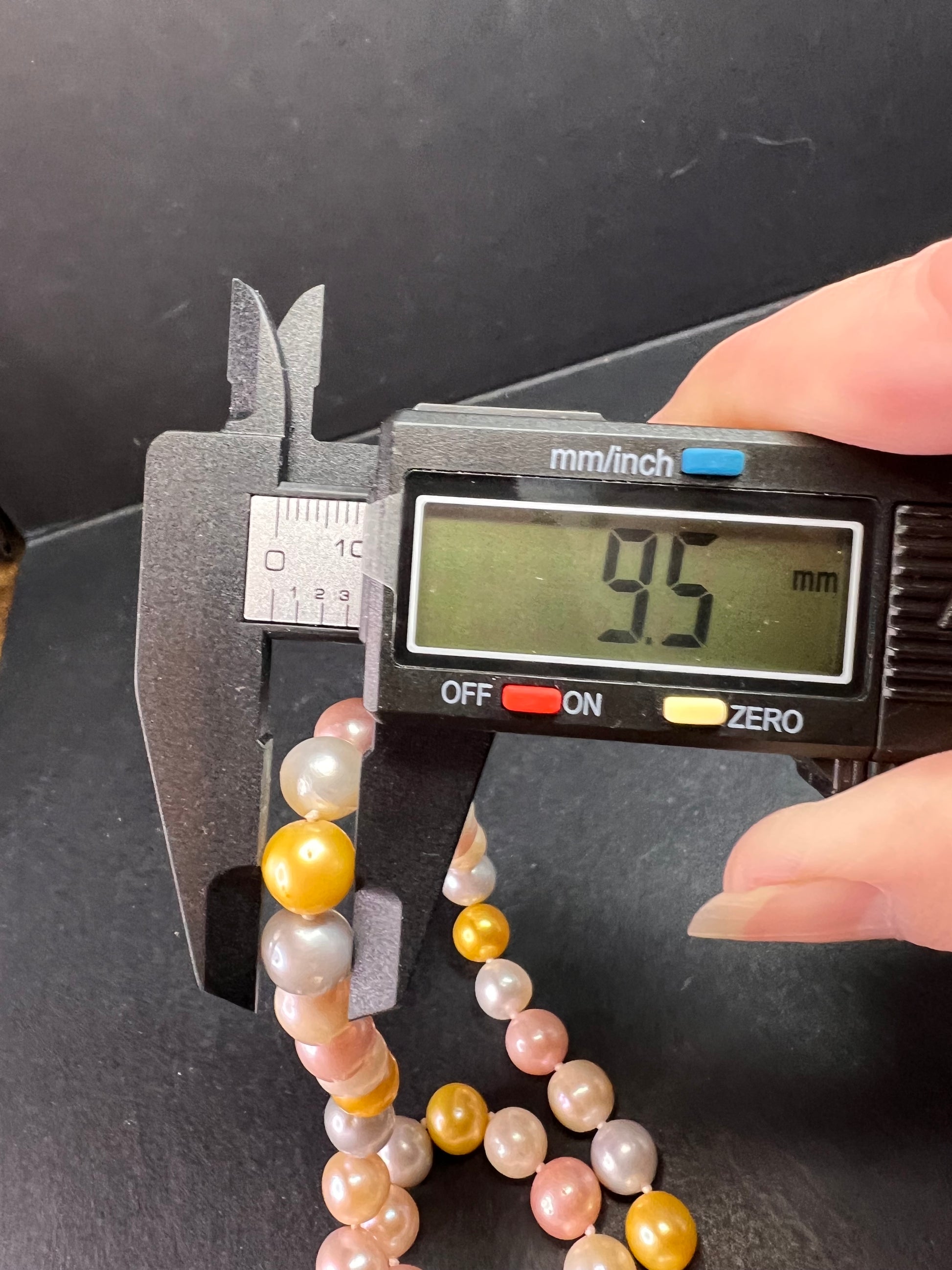 Estate-purchased strand of genuine cultured pearls in like-new, unworn condition. Naturally multi-colored pearls display soft blush pink, silver gray, champagne, ivory, and golden tones. Pearls measure approximately 9.5–9.7mm as shown in photos. Necklace length is about 18 inches. Finished with a solid 925 sterling silver toggle clasp stamped with both purity mark and WW maker’s mark. High luster with visible natural growth characteristics and good surface quality. A timeless, elegant pearl strand with beautiful organic color variation.
