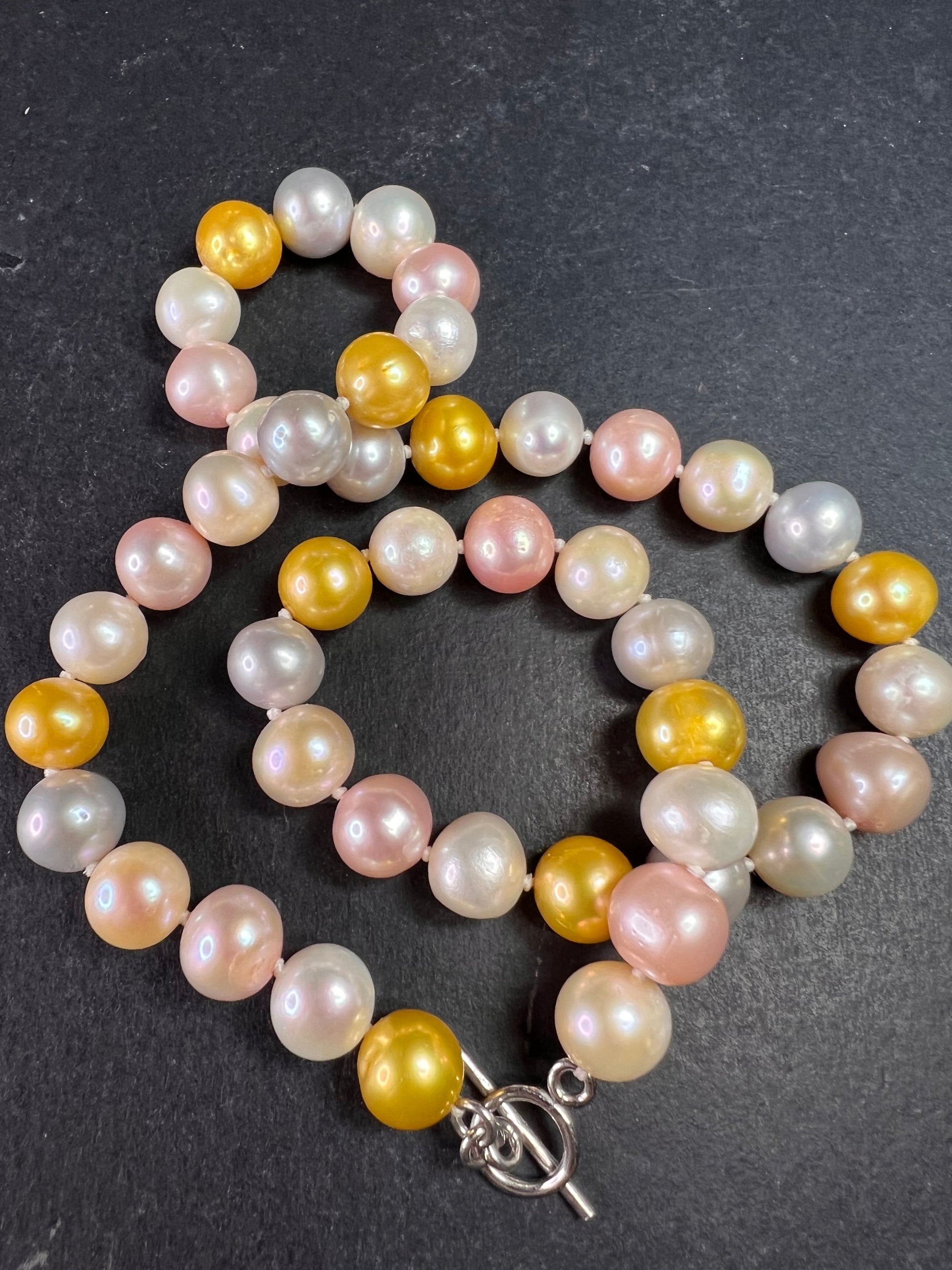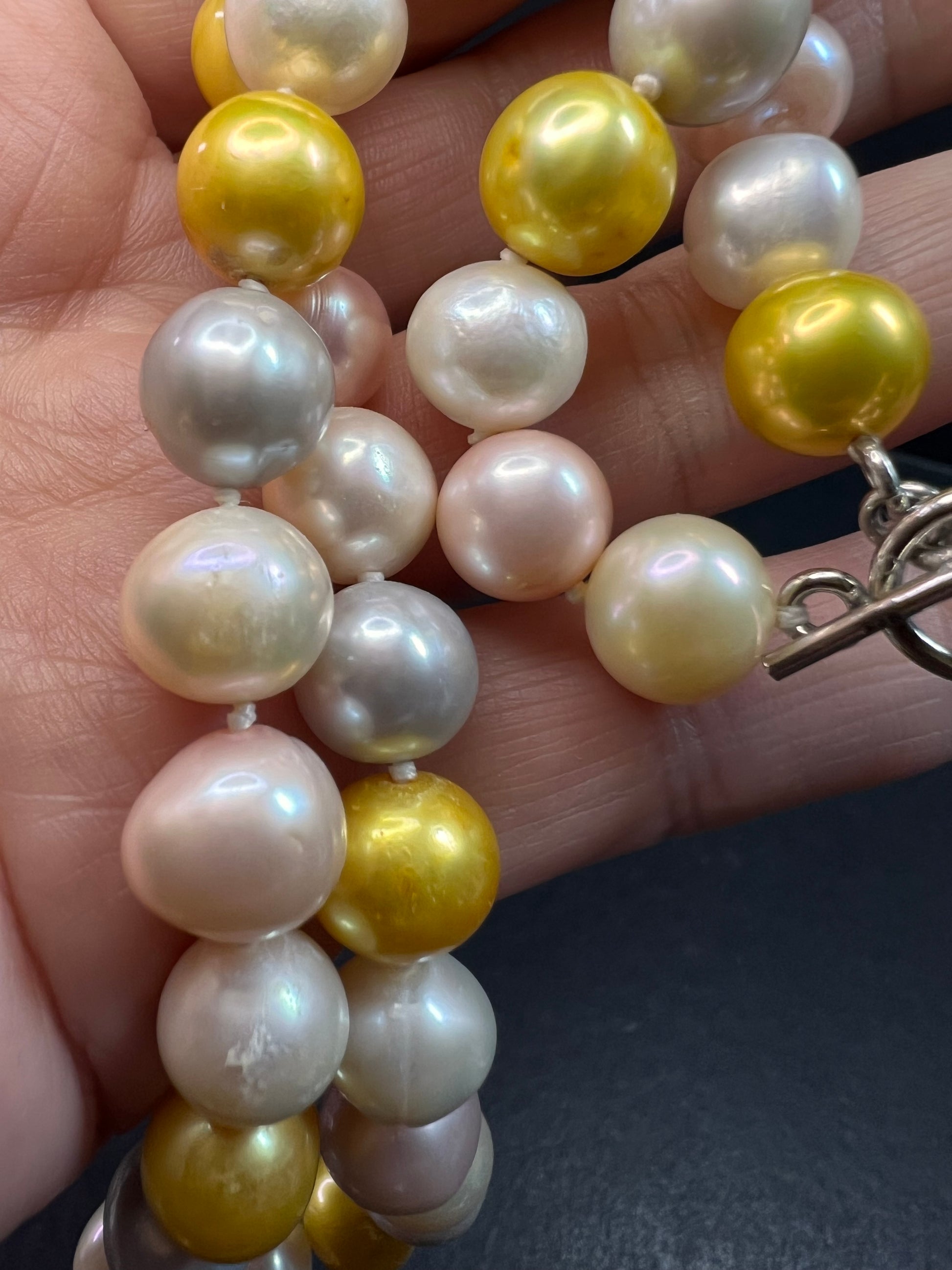 Multicolor Cultured Pearl Necklace 18” 925 WW Sterling Toggle Clasp