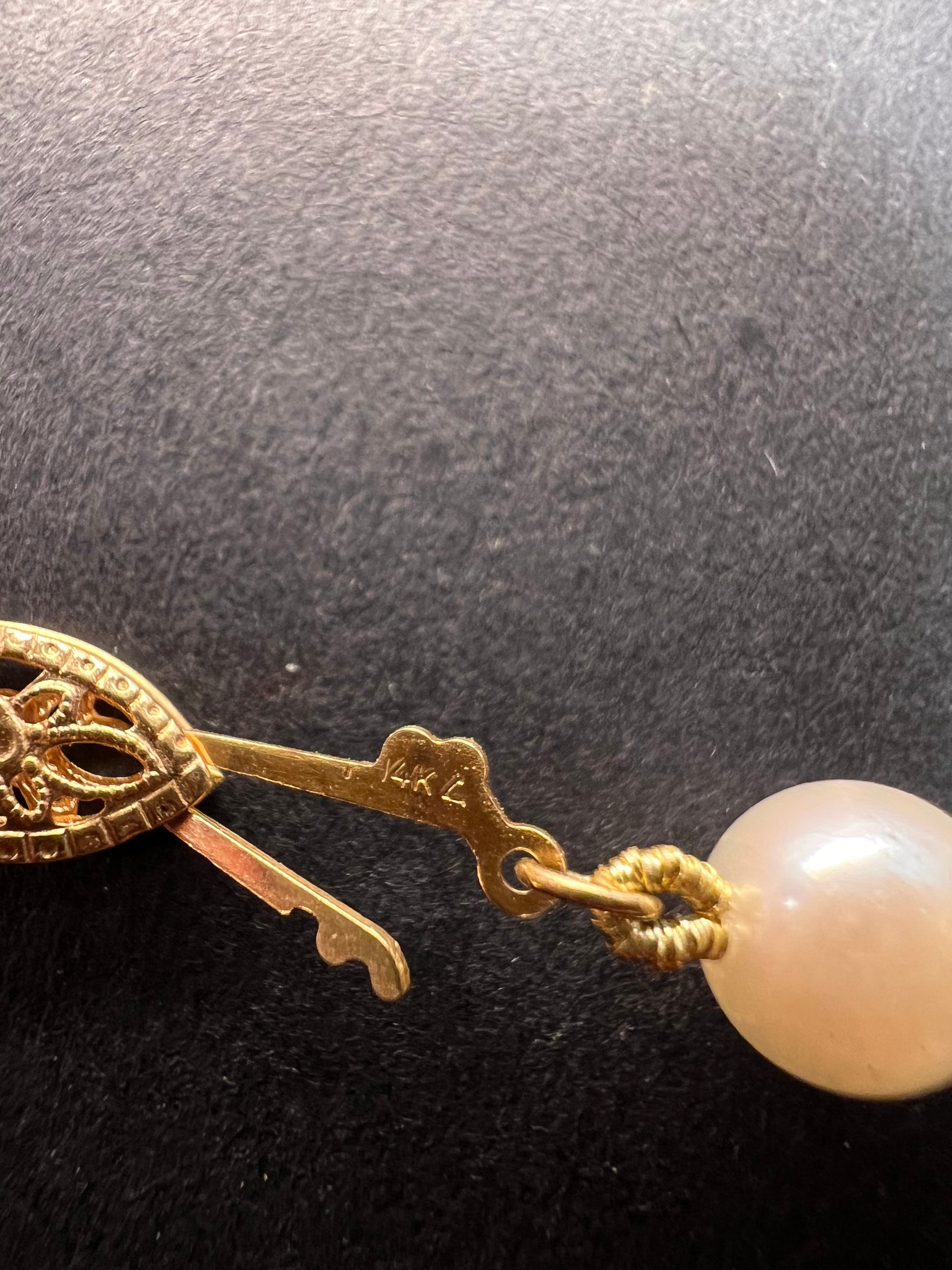 This necklace is new and not new at the same time. It was originally rescued from an estate purchase, but the pearls desperately needed restringing and cleaning. The fact that they have a 14k gold clasp made it worthwhile. I had my jeweler restring these pearls, giving them a fresh new life. Because of the fact that I invested so much in this strand because I believe in reusing, recycling , and giving new life to old things , these are priced closer to current retail comp values.