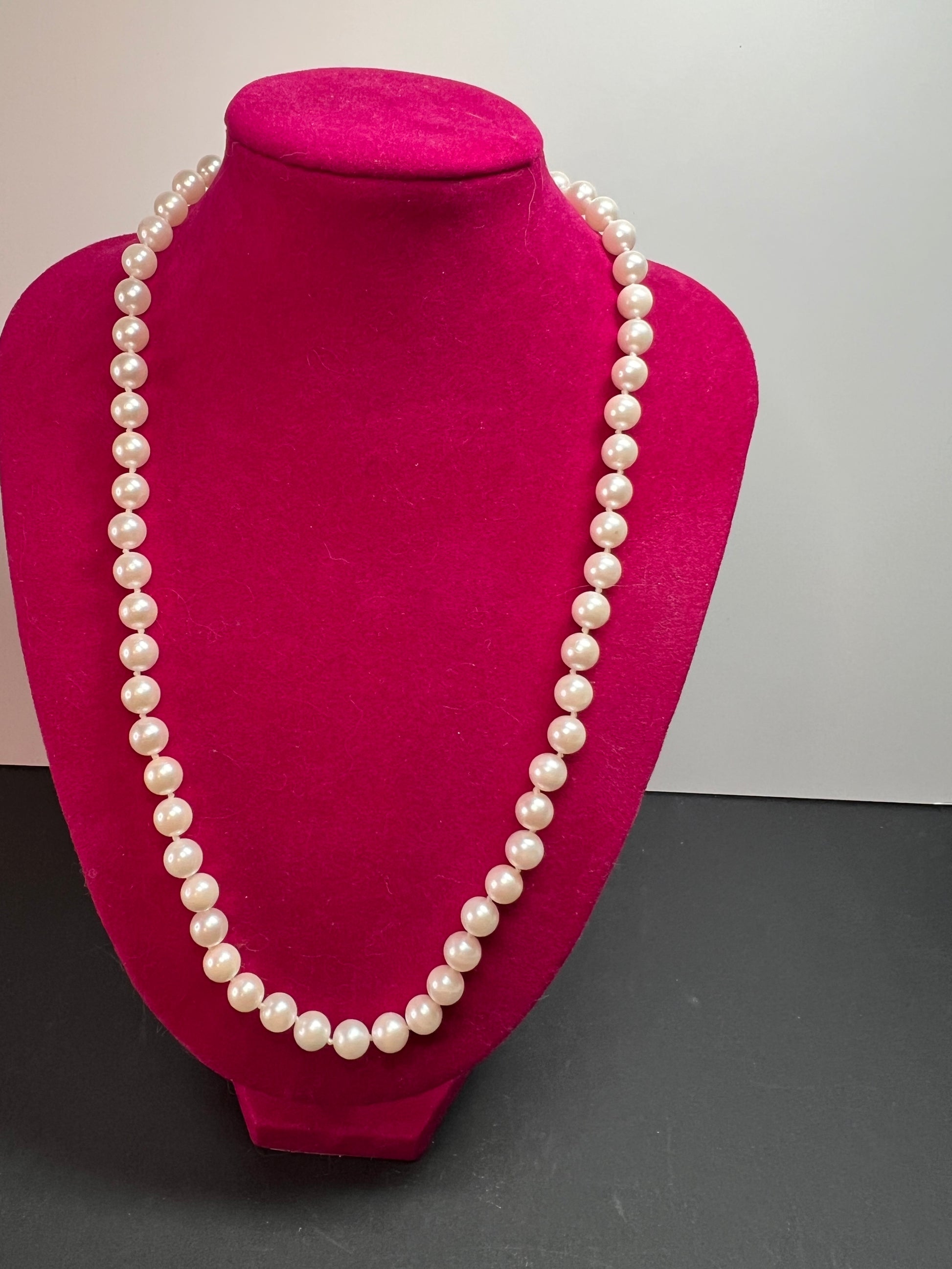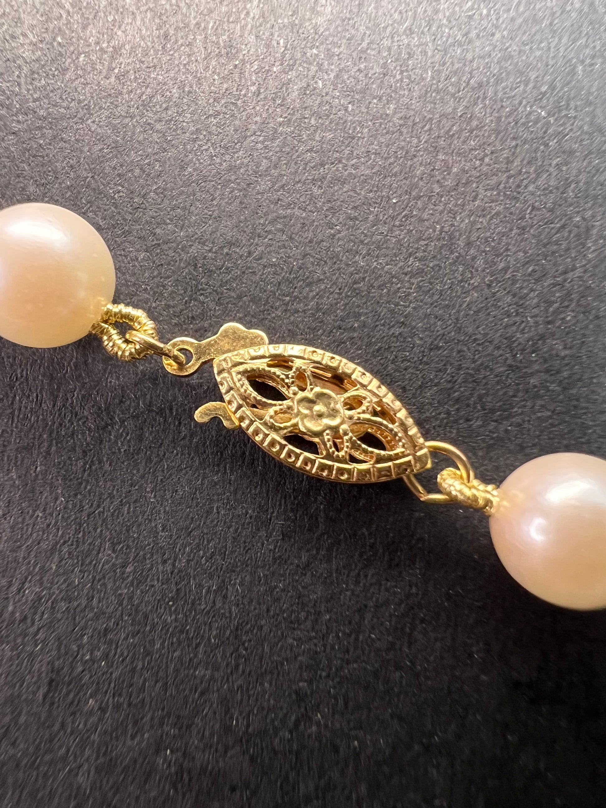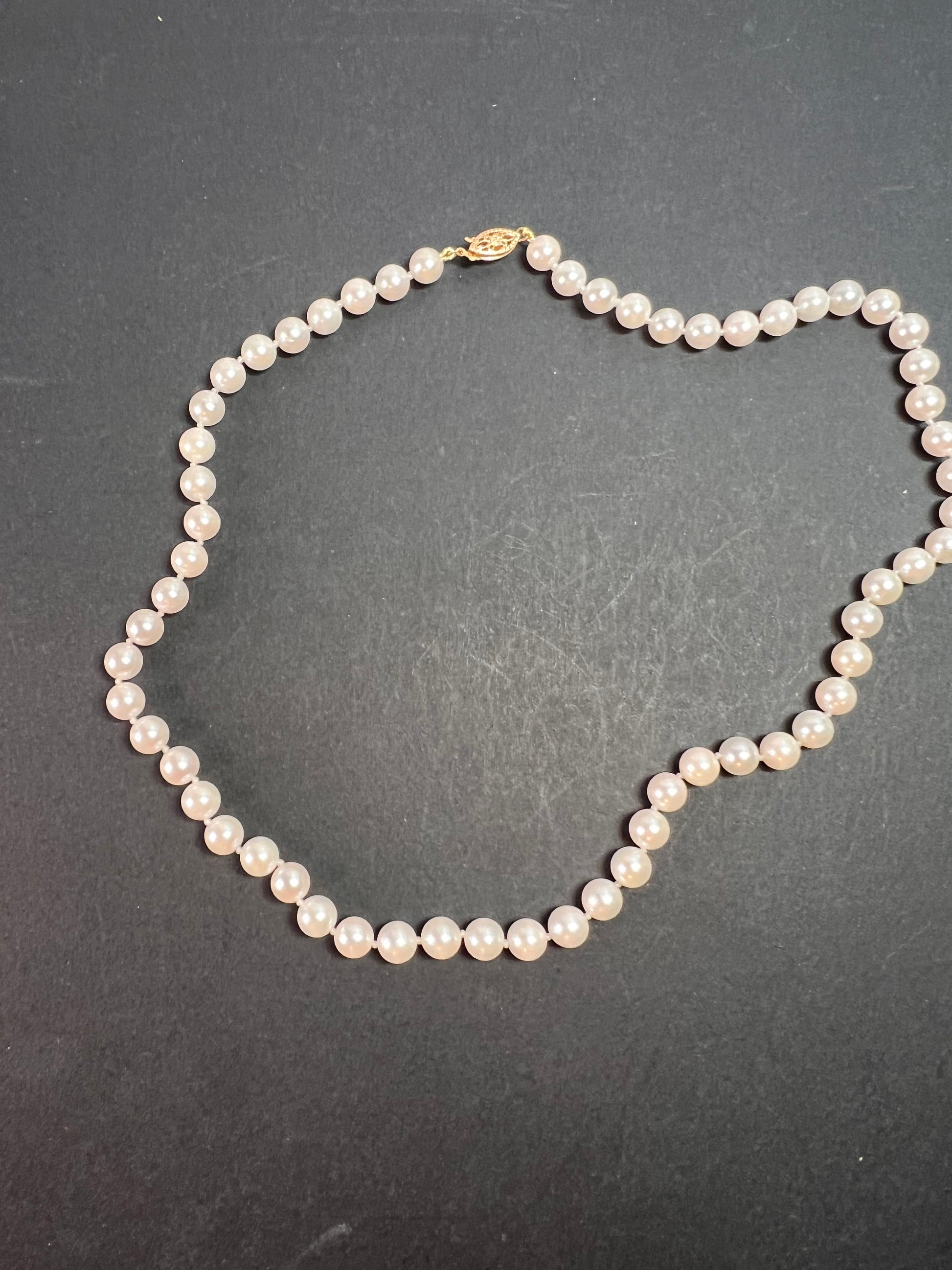NEW vintage 7 mm white cultured pearl 18 inch necklace with 14k gold clasp