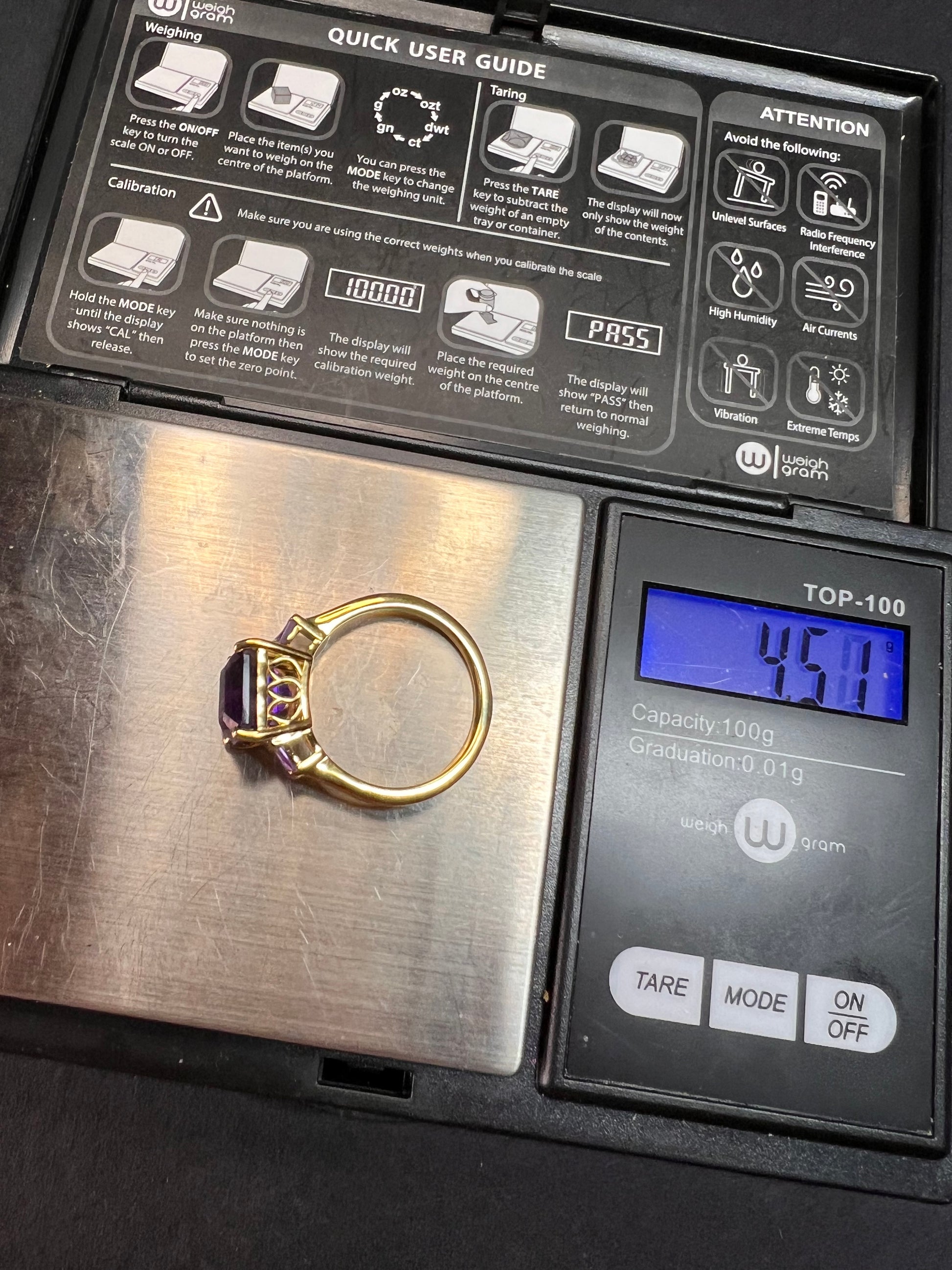 NEW African amethyst ring in vermeil yellow gold size 9
