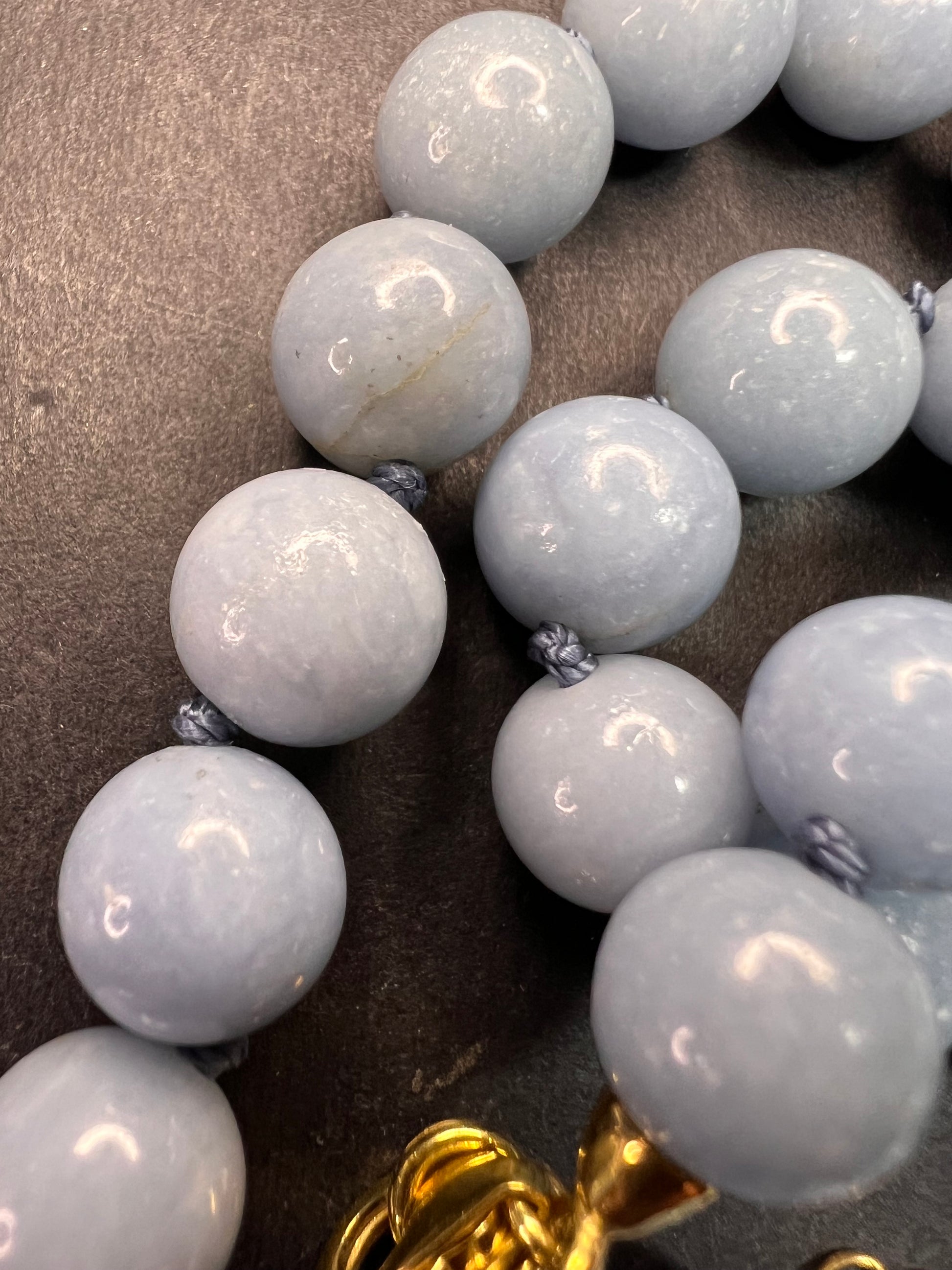 NEW Angelite beaded 18-20 inch necklace with vermeil yellow gold clasp