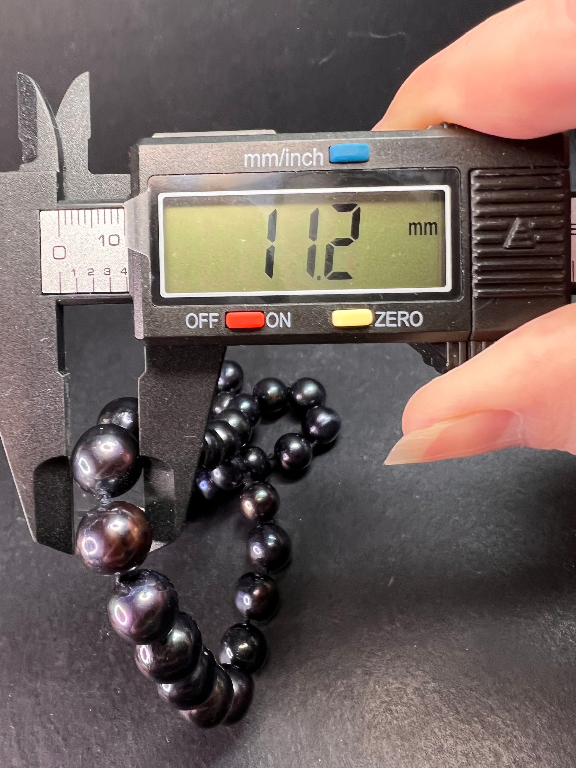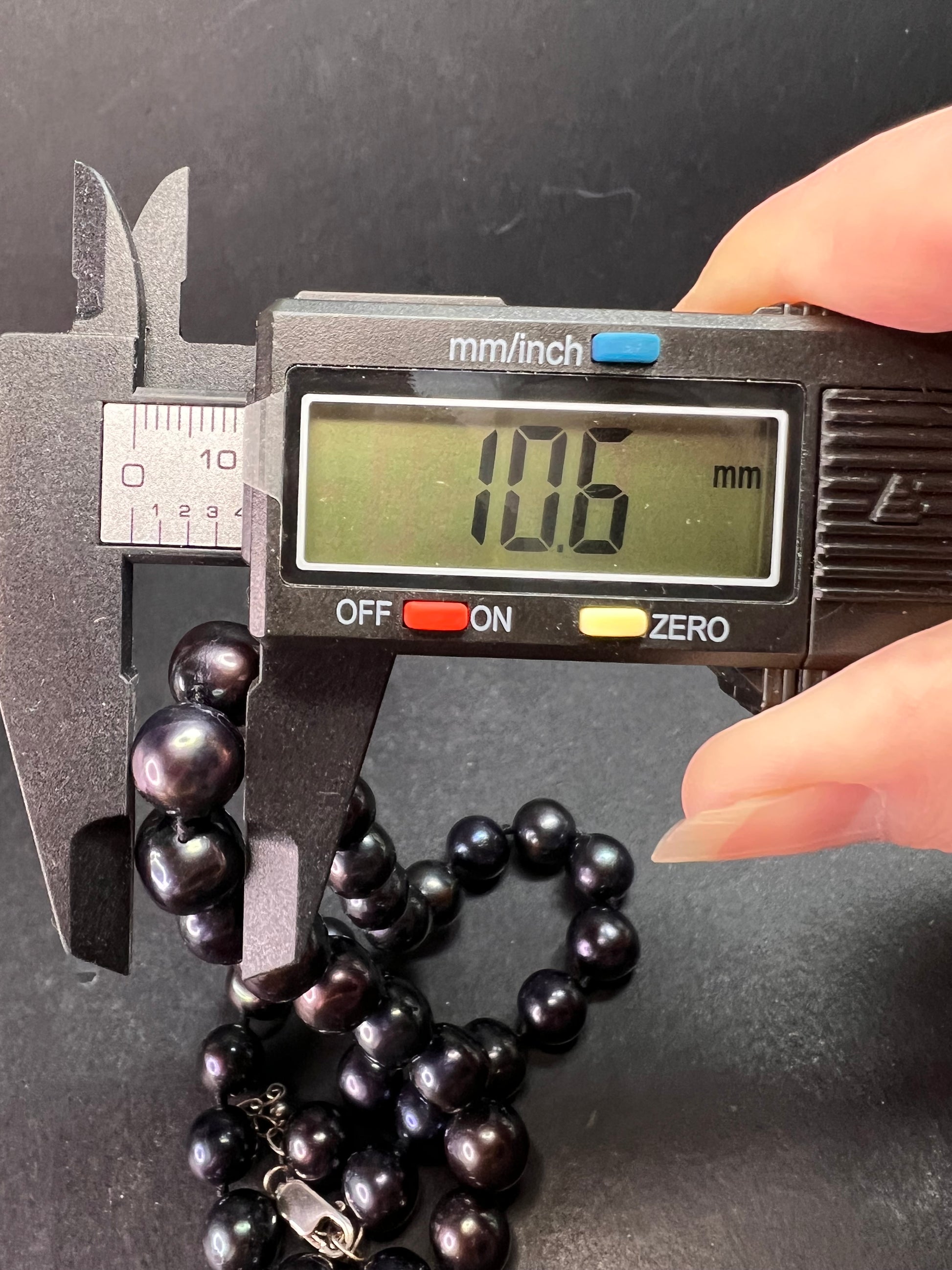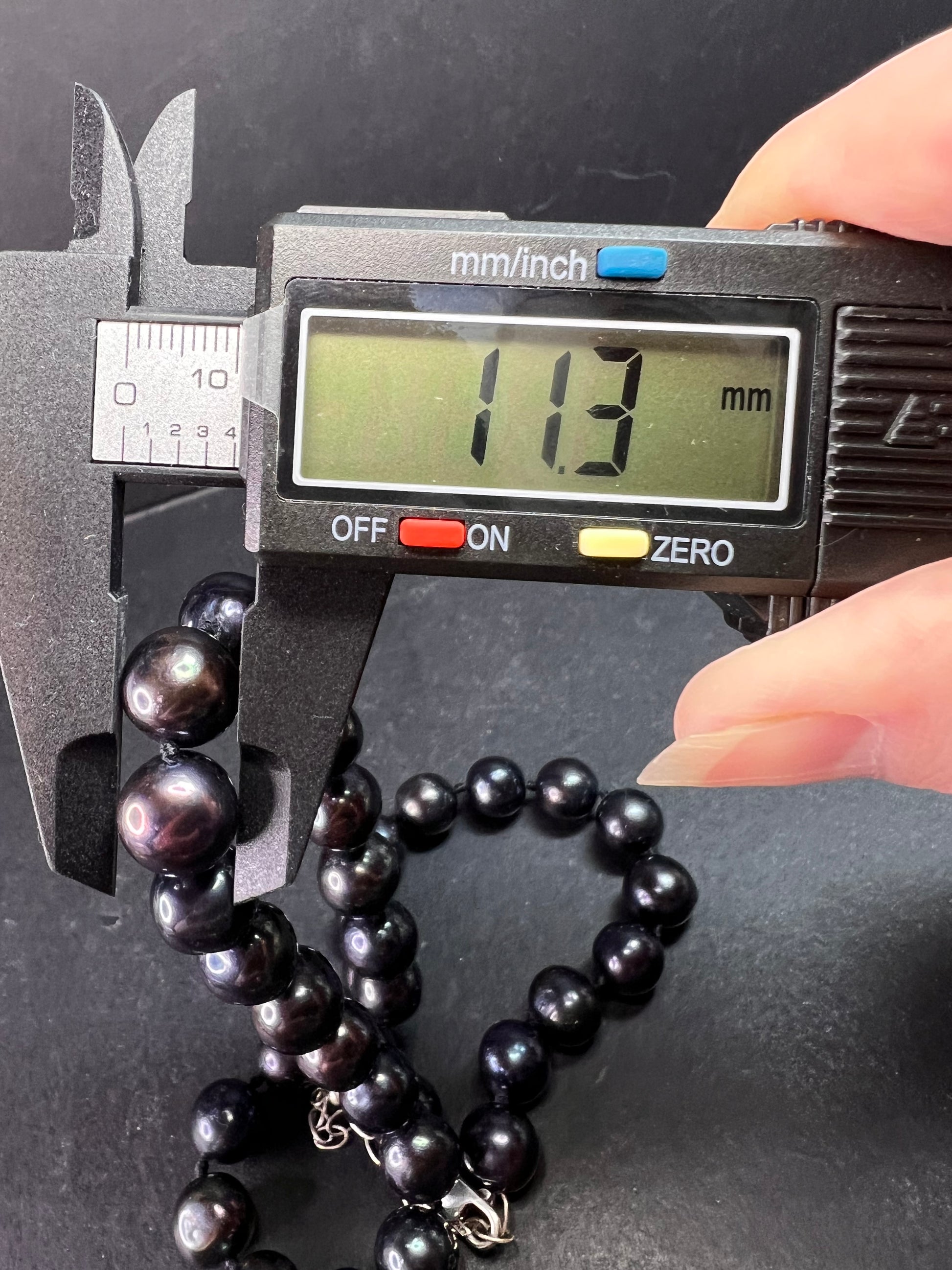 New Black Cultured Freshwater Pearl Necklace 11mm, 18–20”, 925 Silver