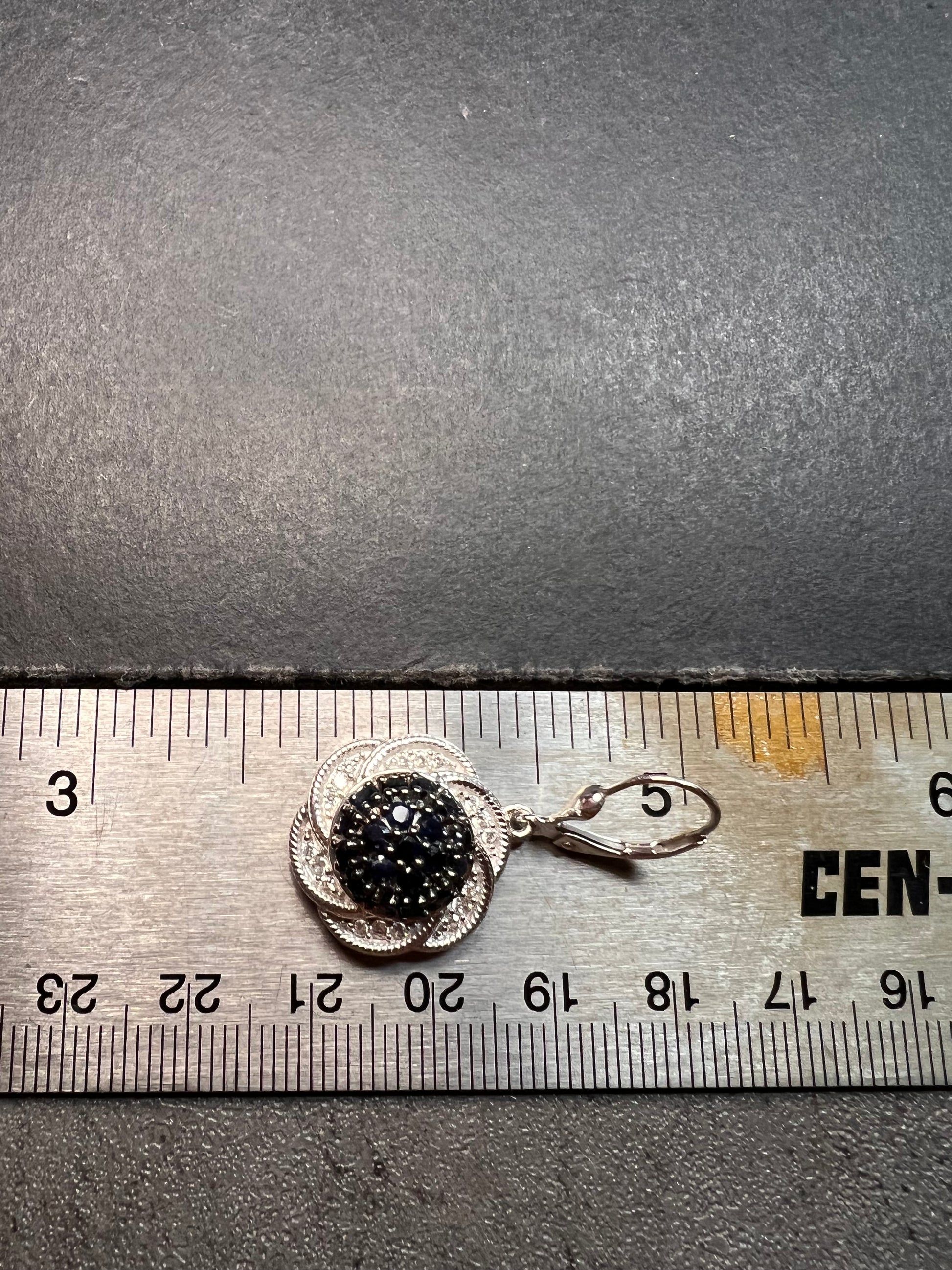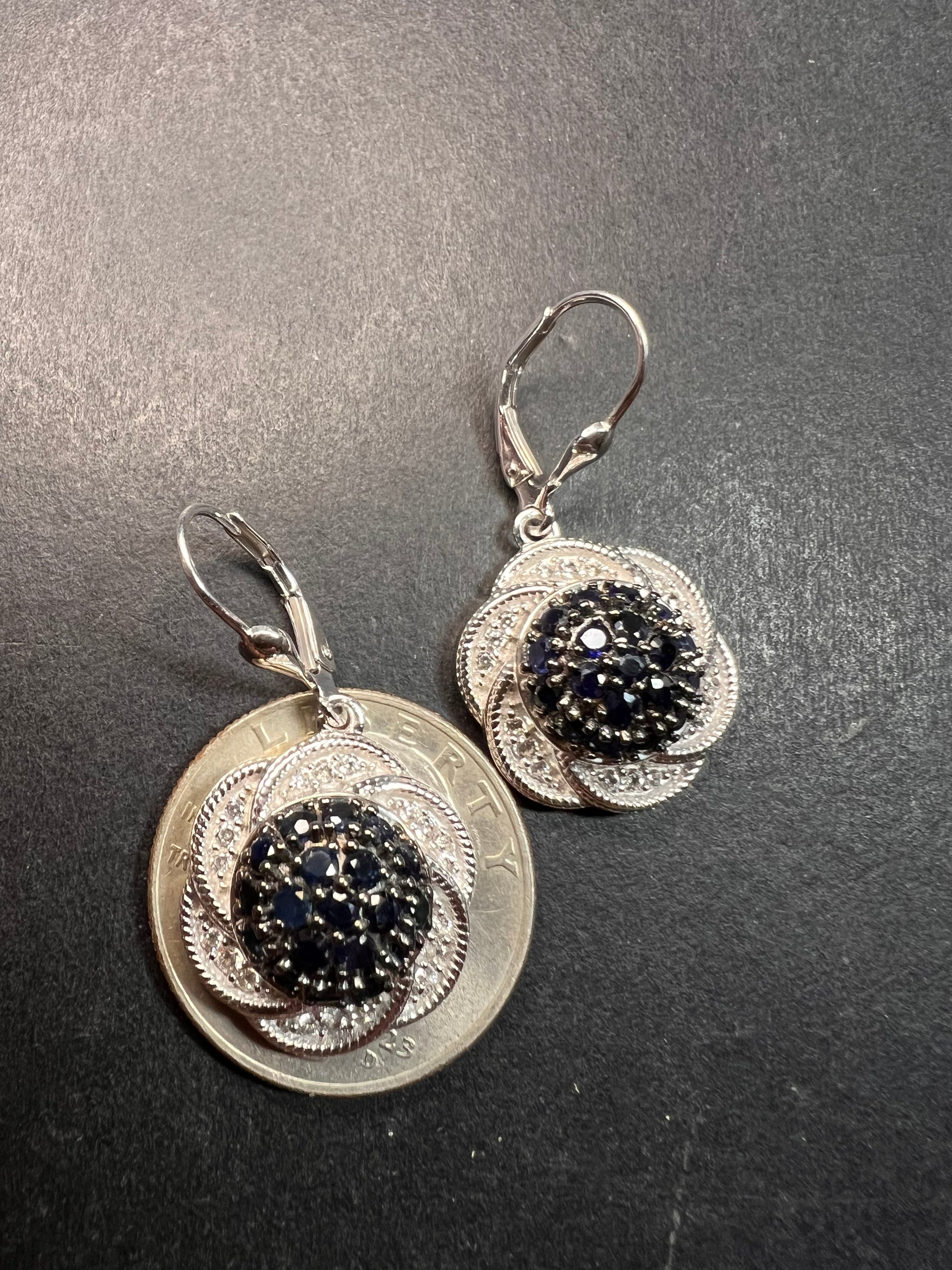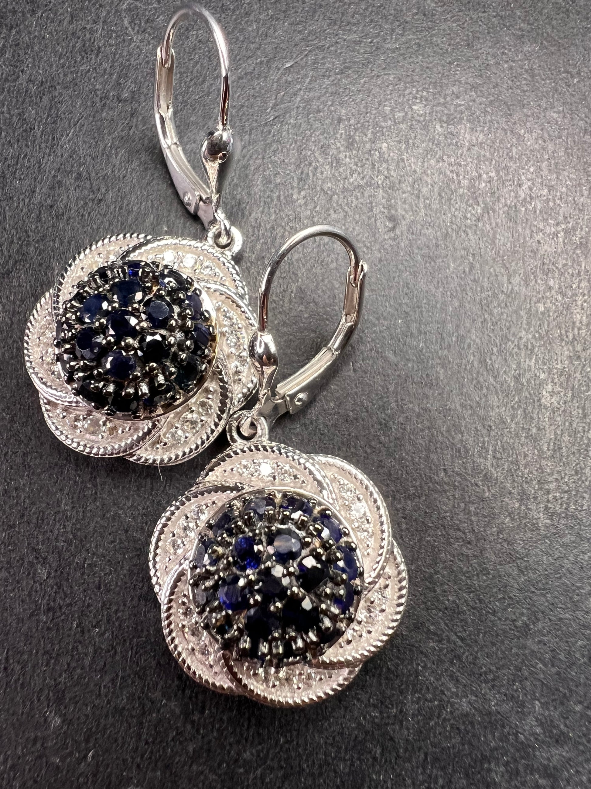 NEW blue sapphire and zircon galaxy halo earrings in rhodium over sterling silver