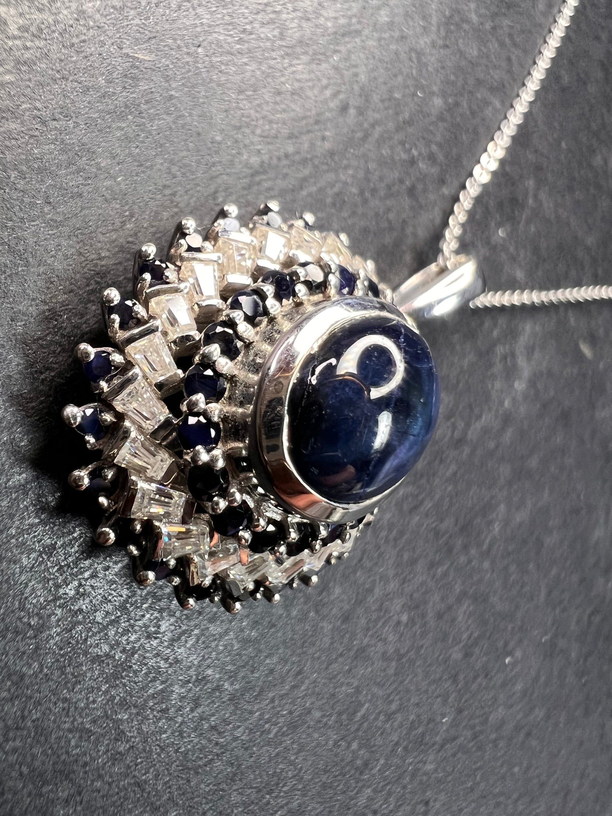 NEW Blue star sapphire and moissanite sterling silver halo pendant necklace