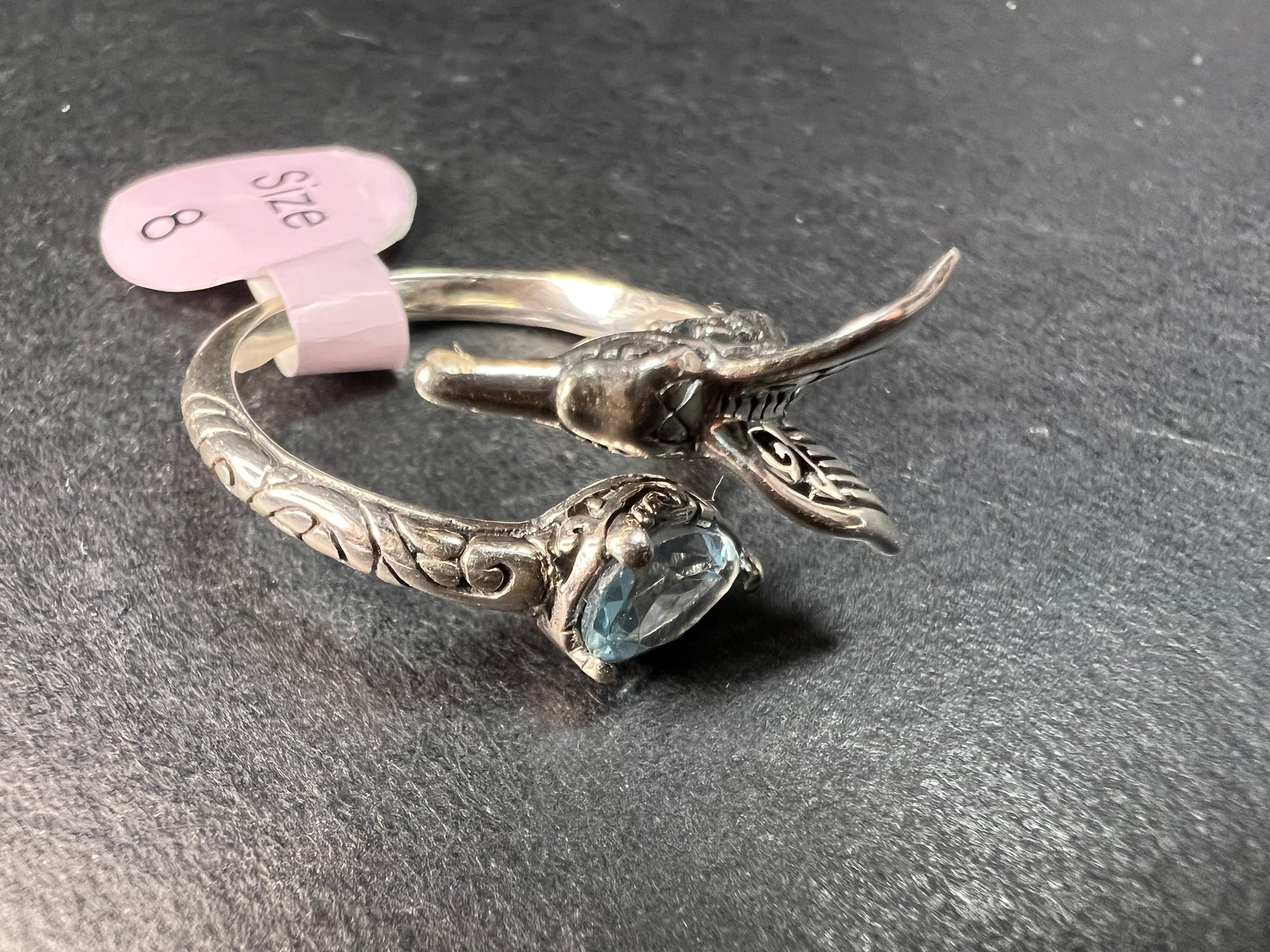 NEW Blue topaz hummingbird Bali sterling silver ring size 7