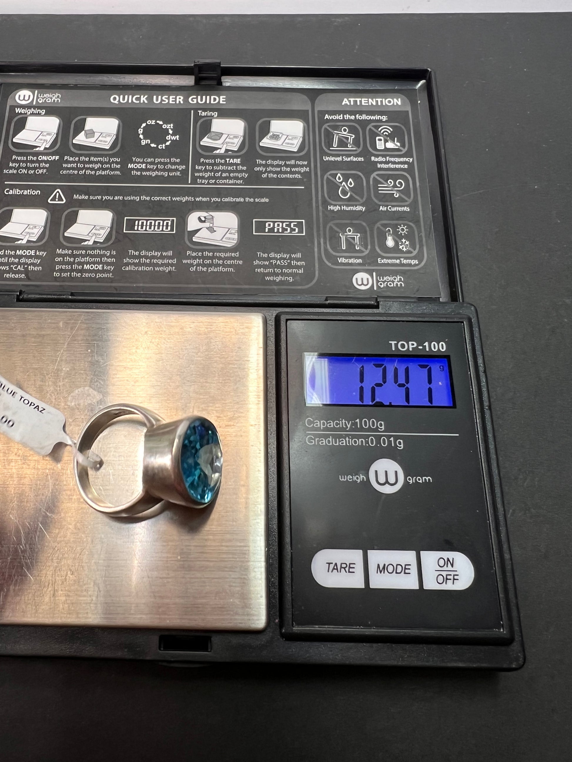 NEW size 8 Blue topaz sterling silver ring size 12.47 grams