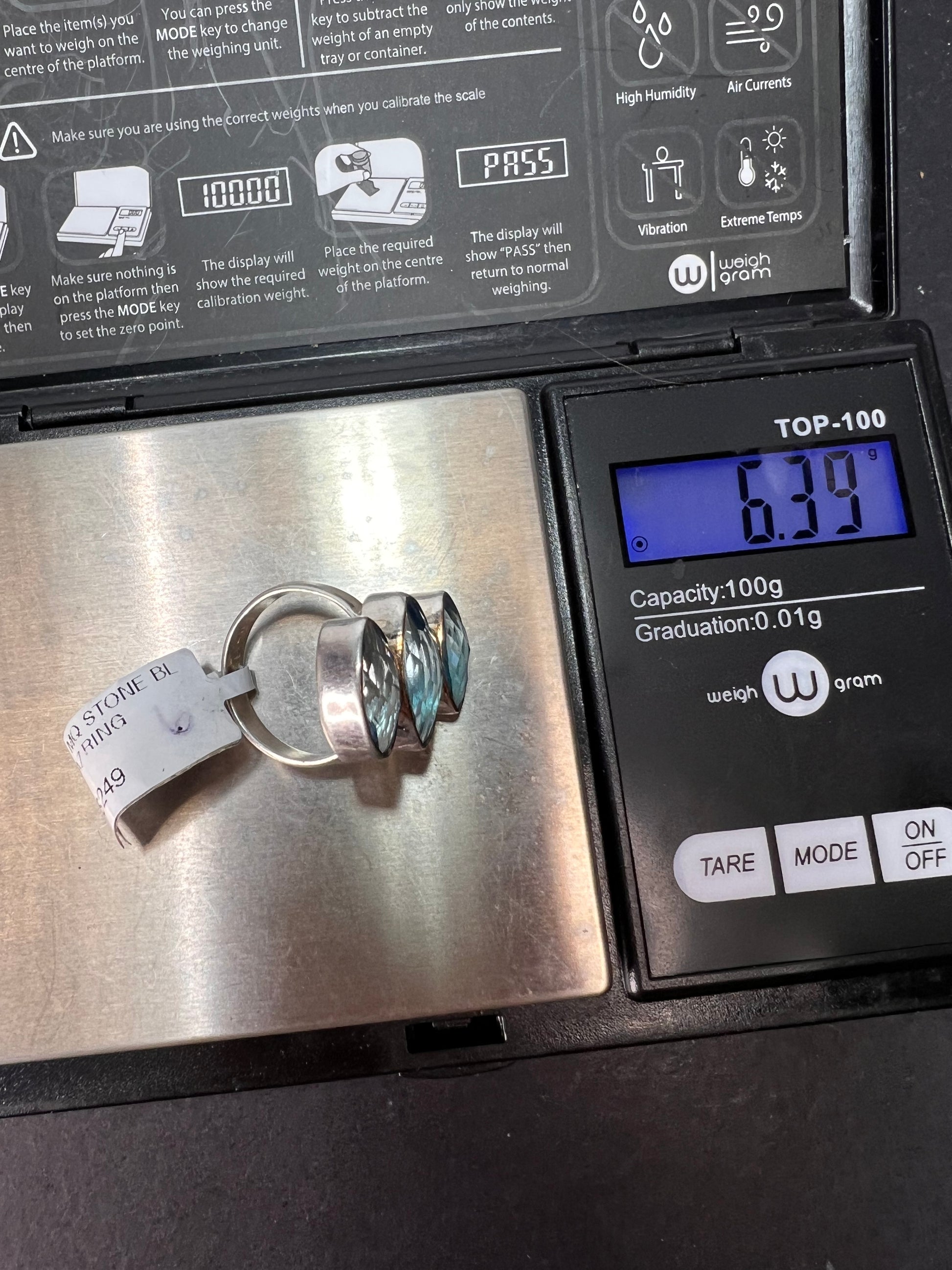 NEW Blue topaz triple stone sterling silver ring size 6 / 6.39 grams