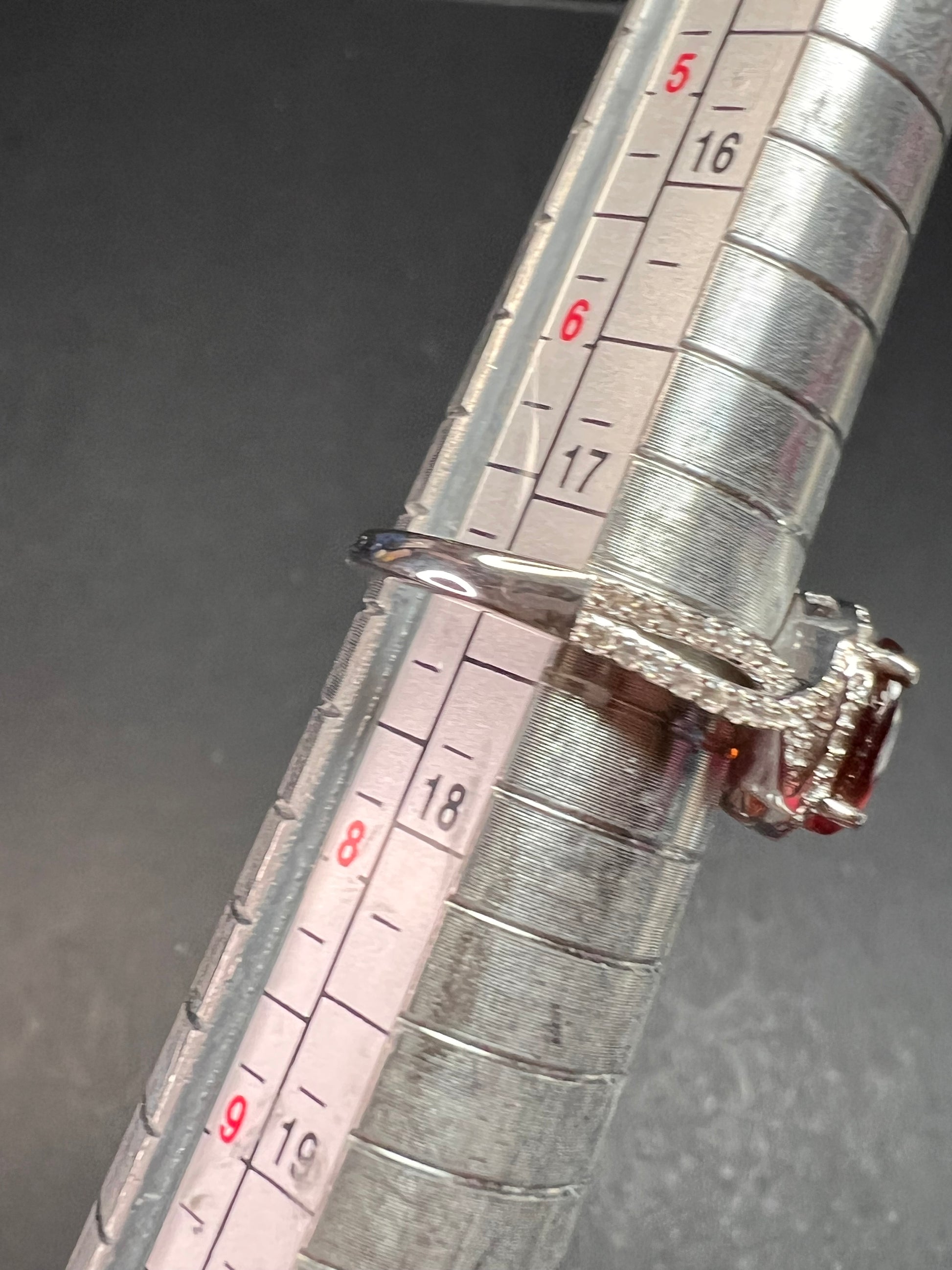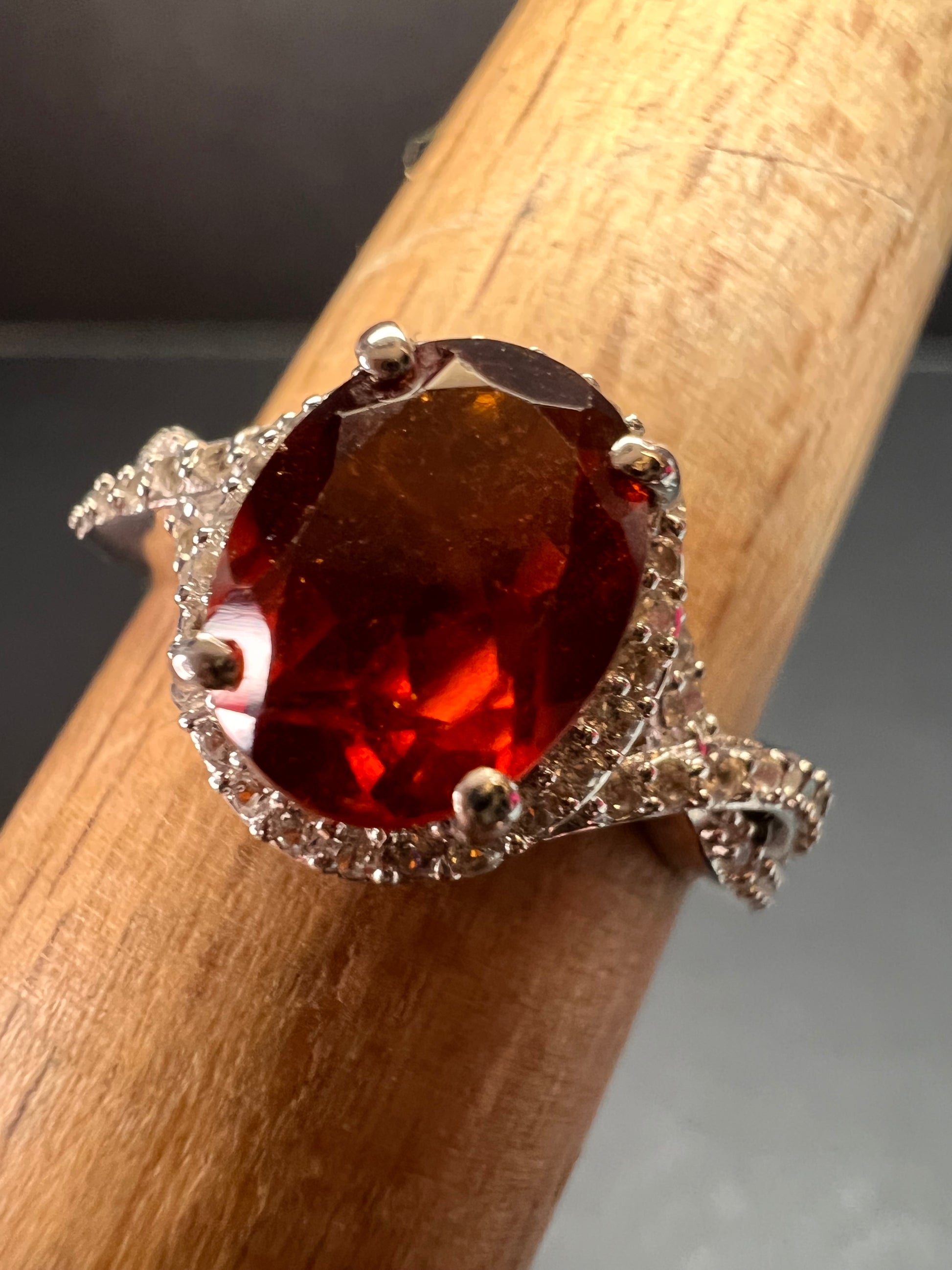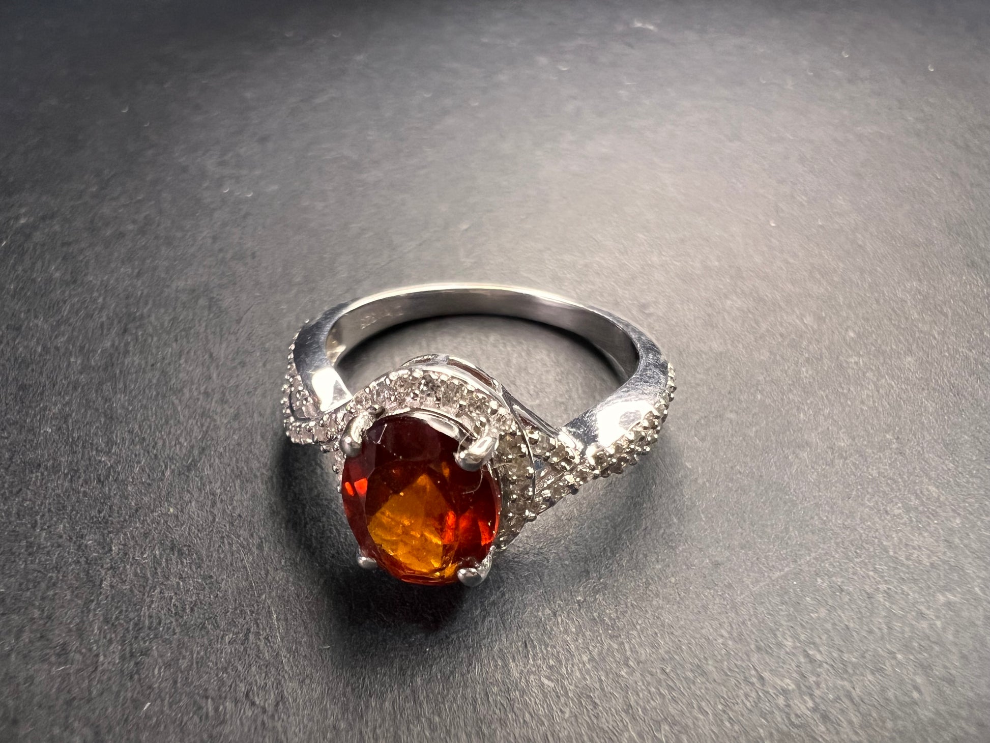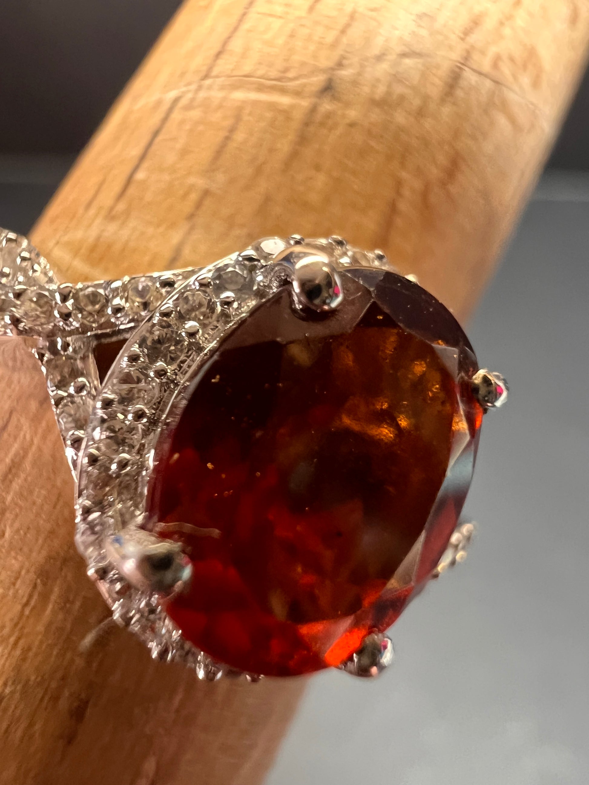NEW Ceylon Hessonite garnet and zircon ring in rhodium over sterling silver size 7