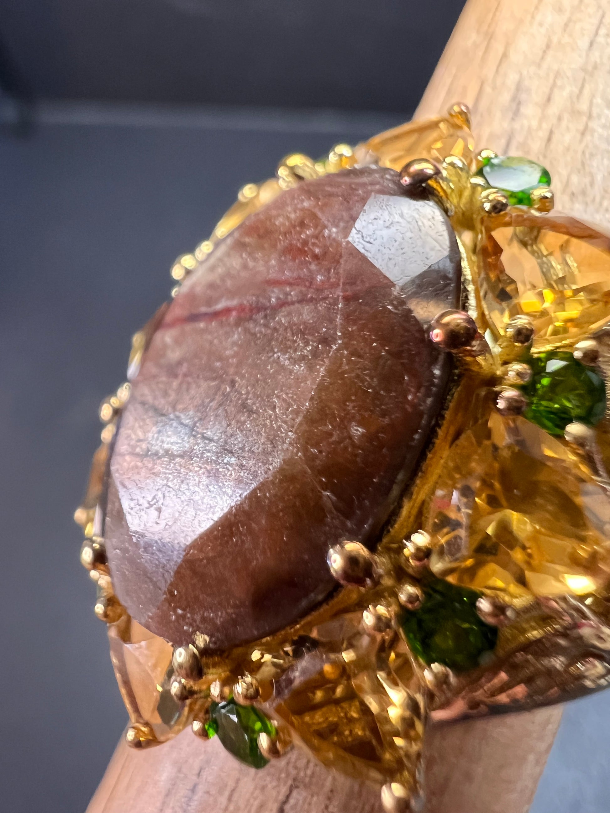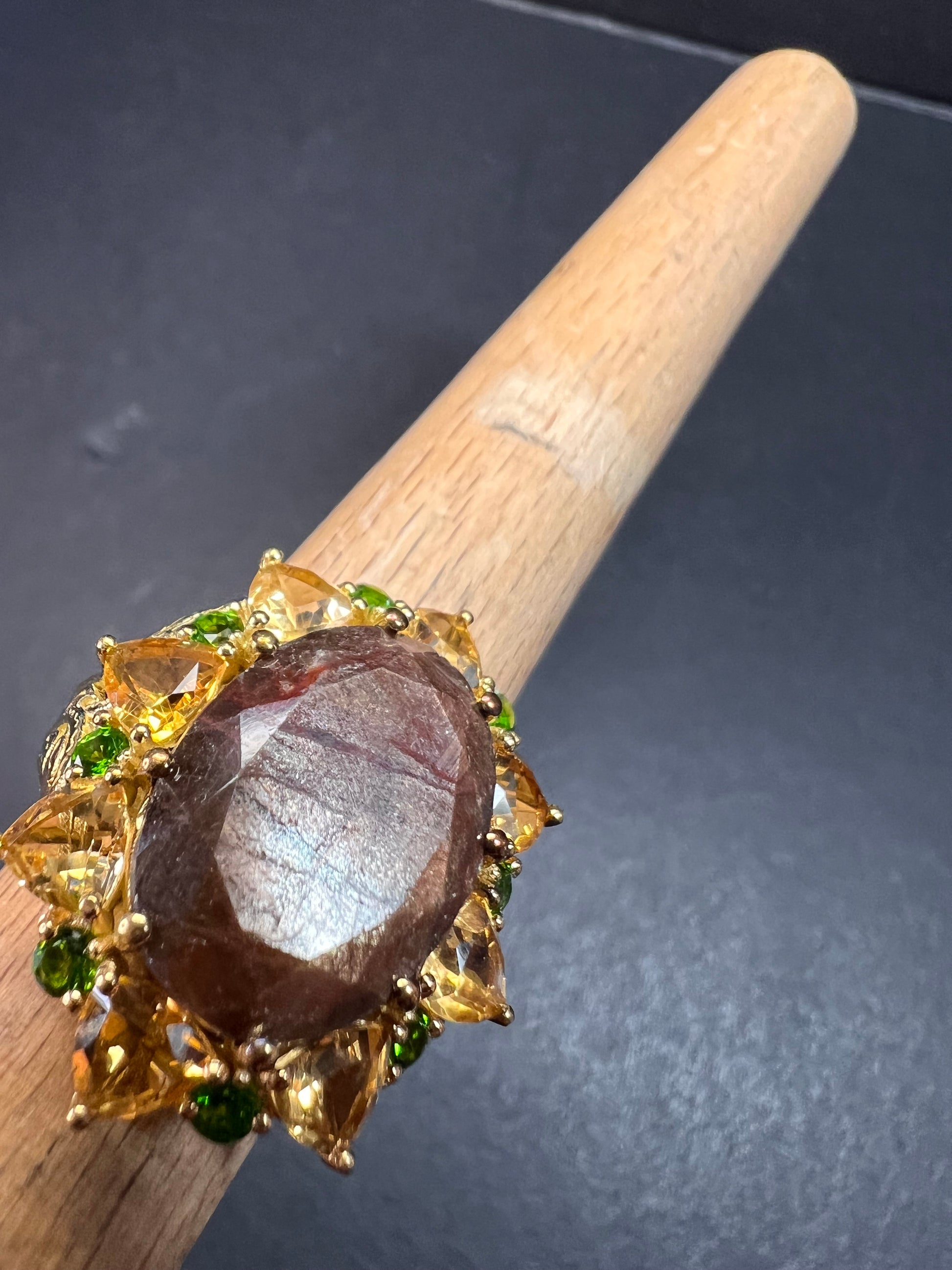 NEW chocolate sapphire multi gem cocktail ring in vermeil size 7