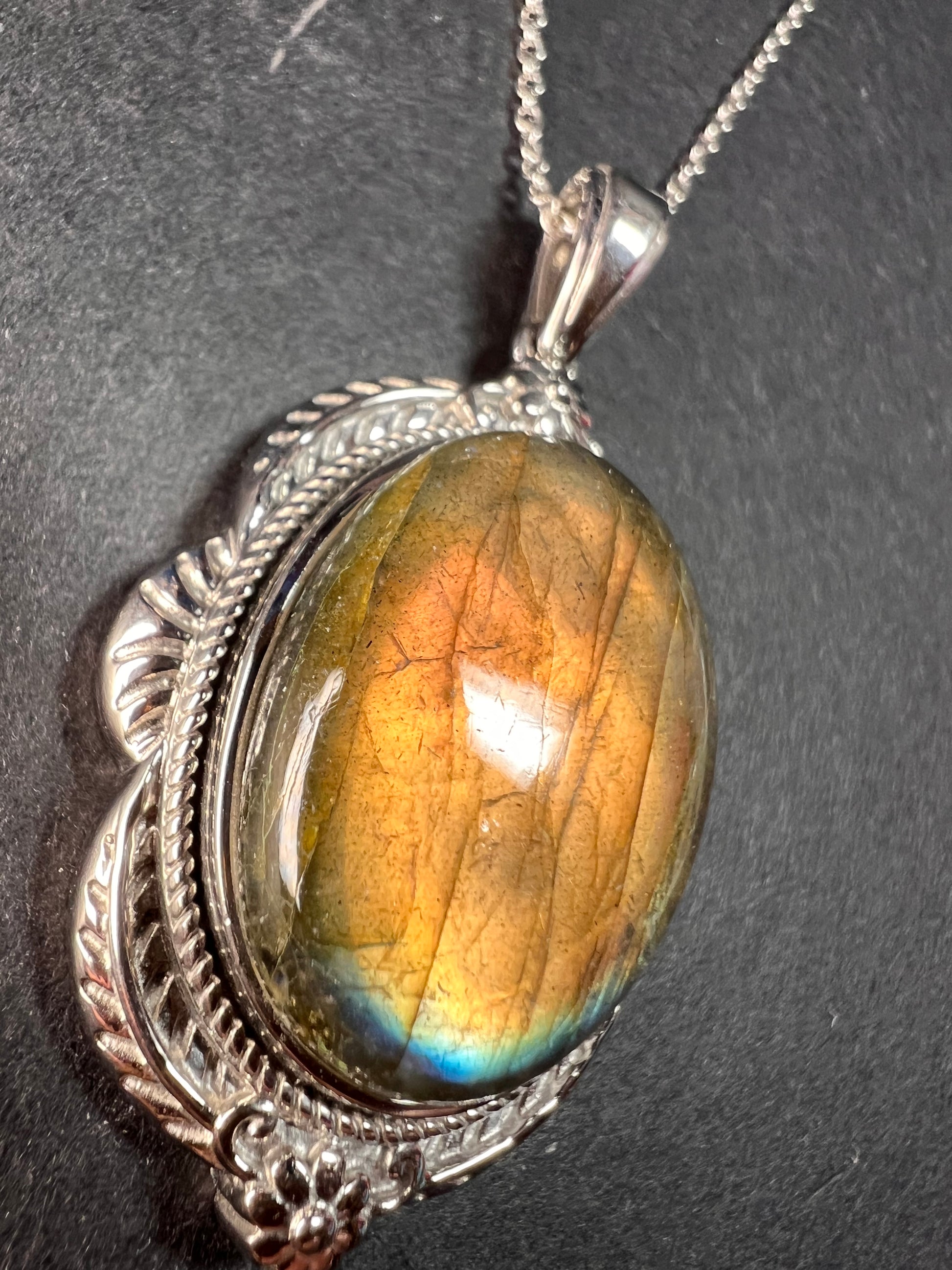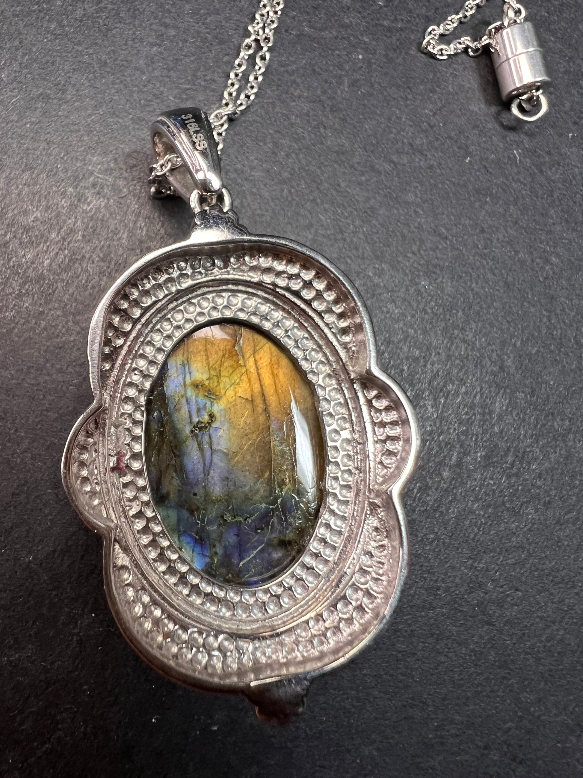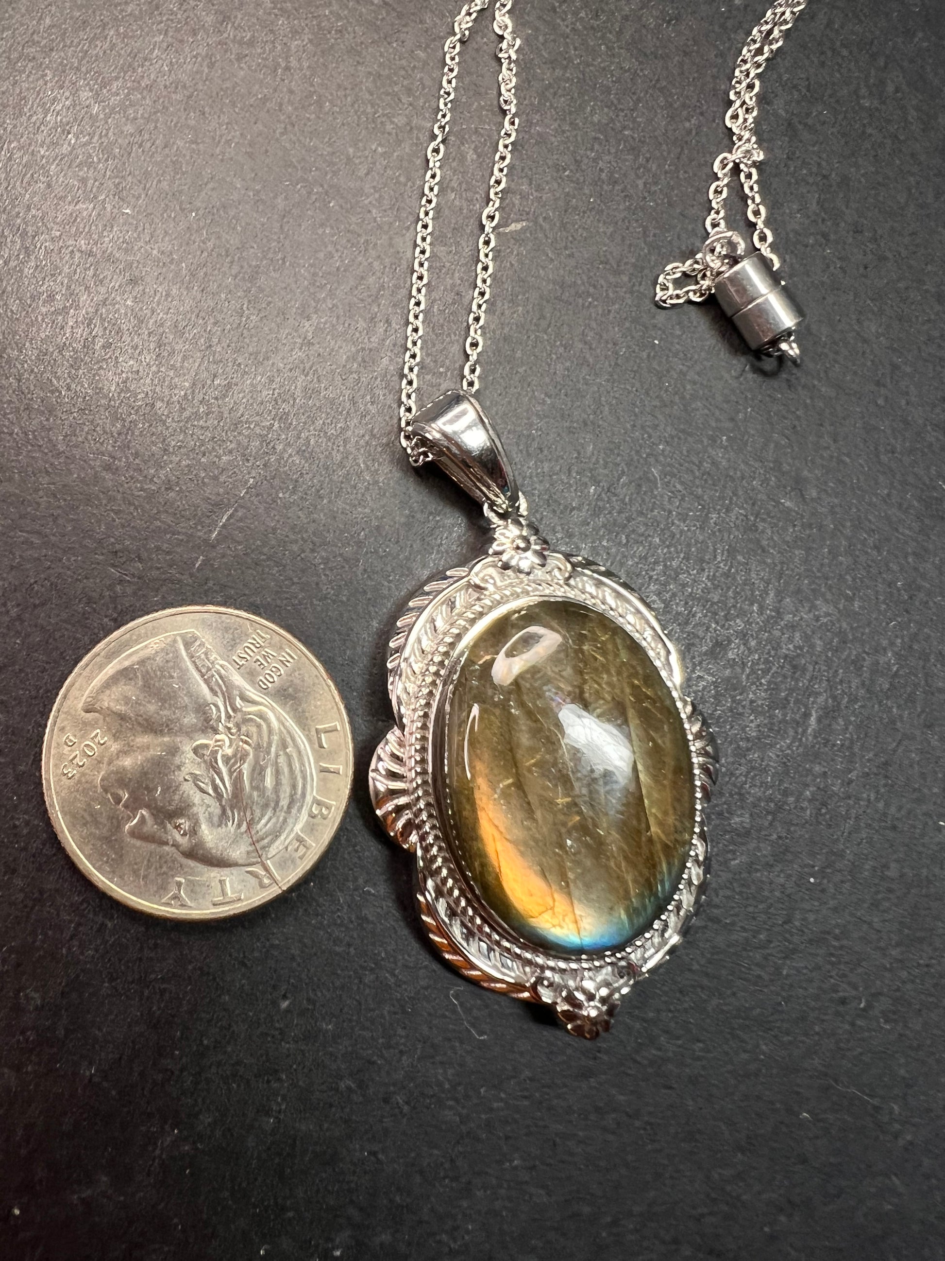 NEW Flashy fire labradorite pendant and chain in stainless steel 20inch
