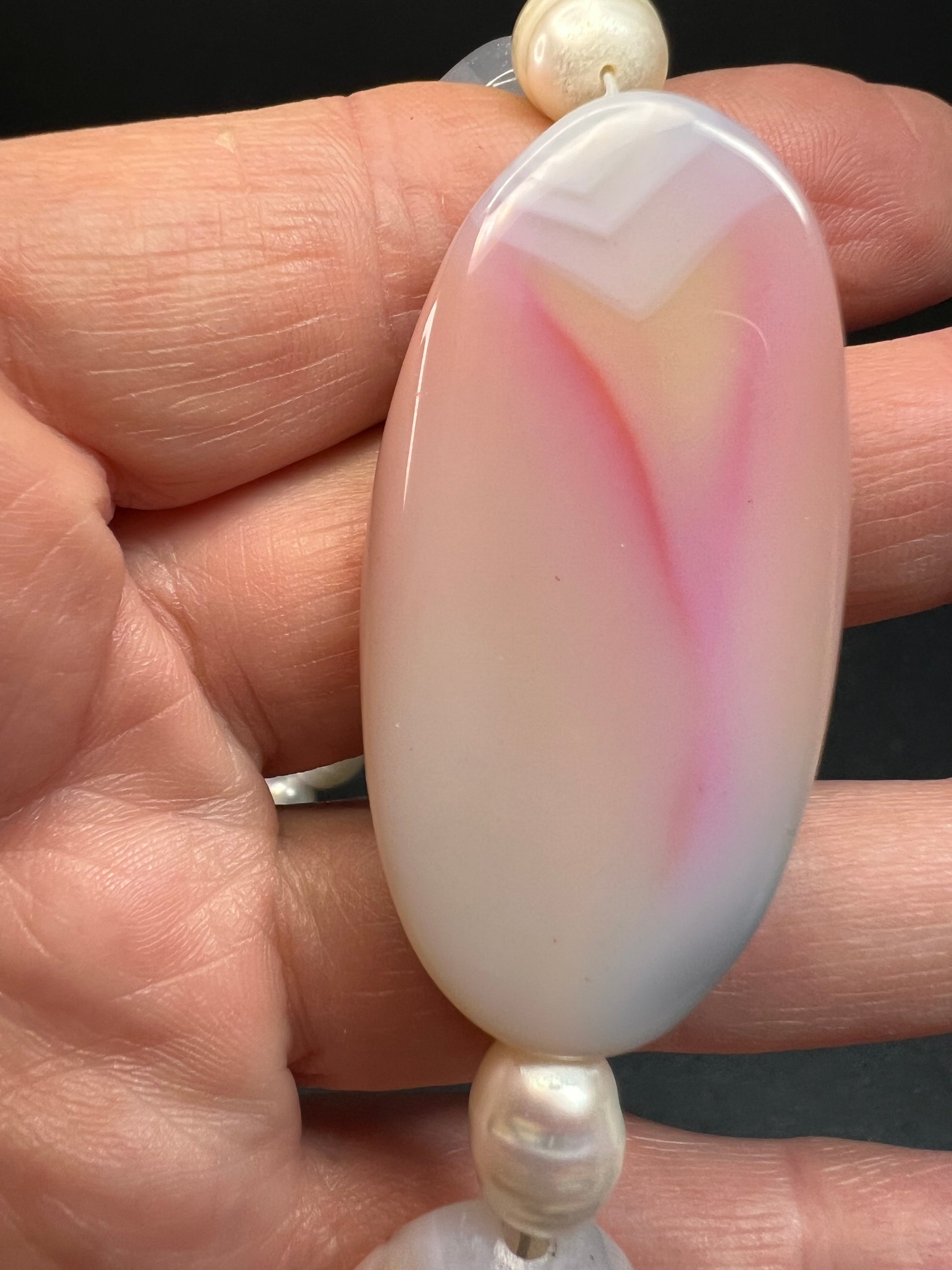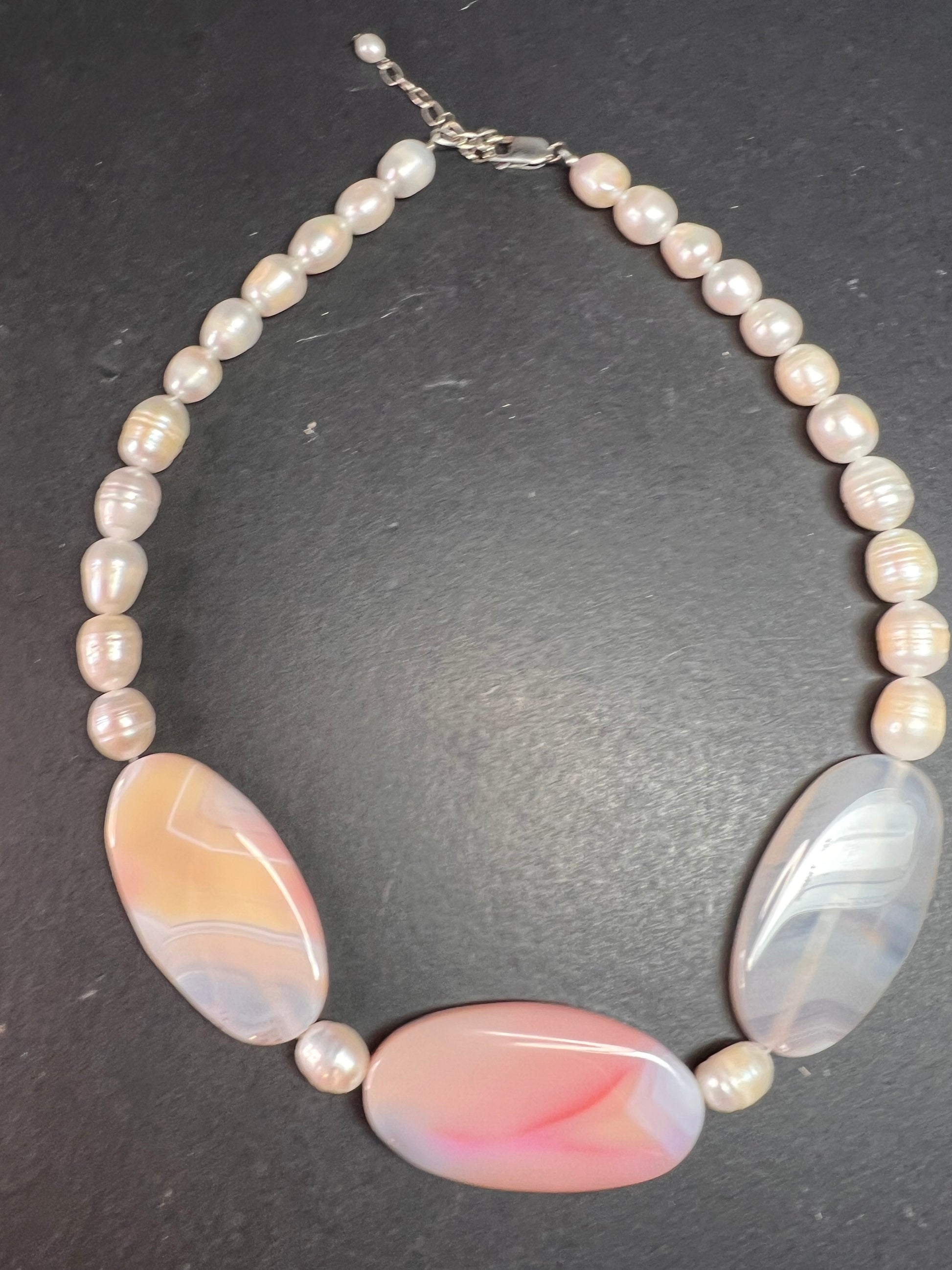 NEW freshwater pearl and agate necklace with sterling silver clasp