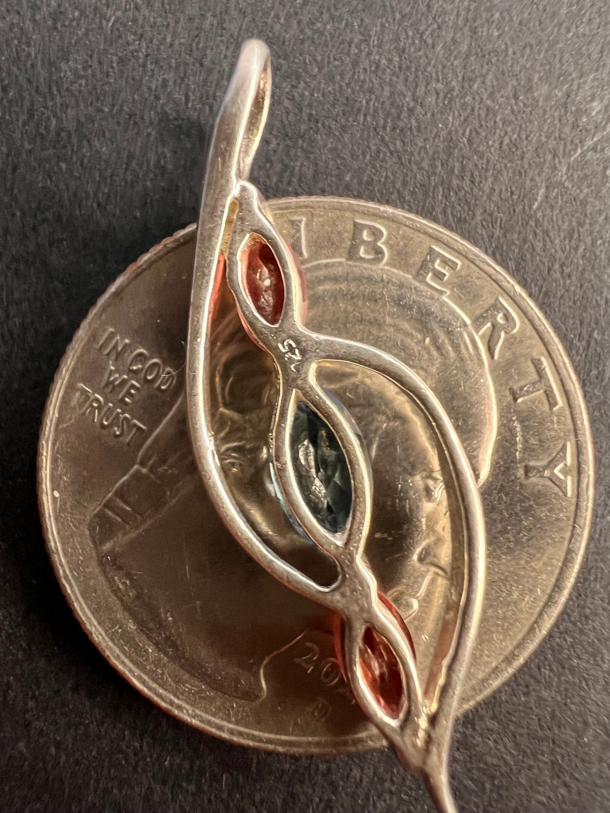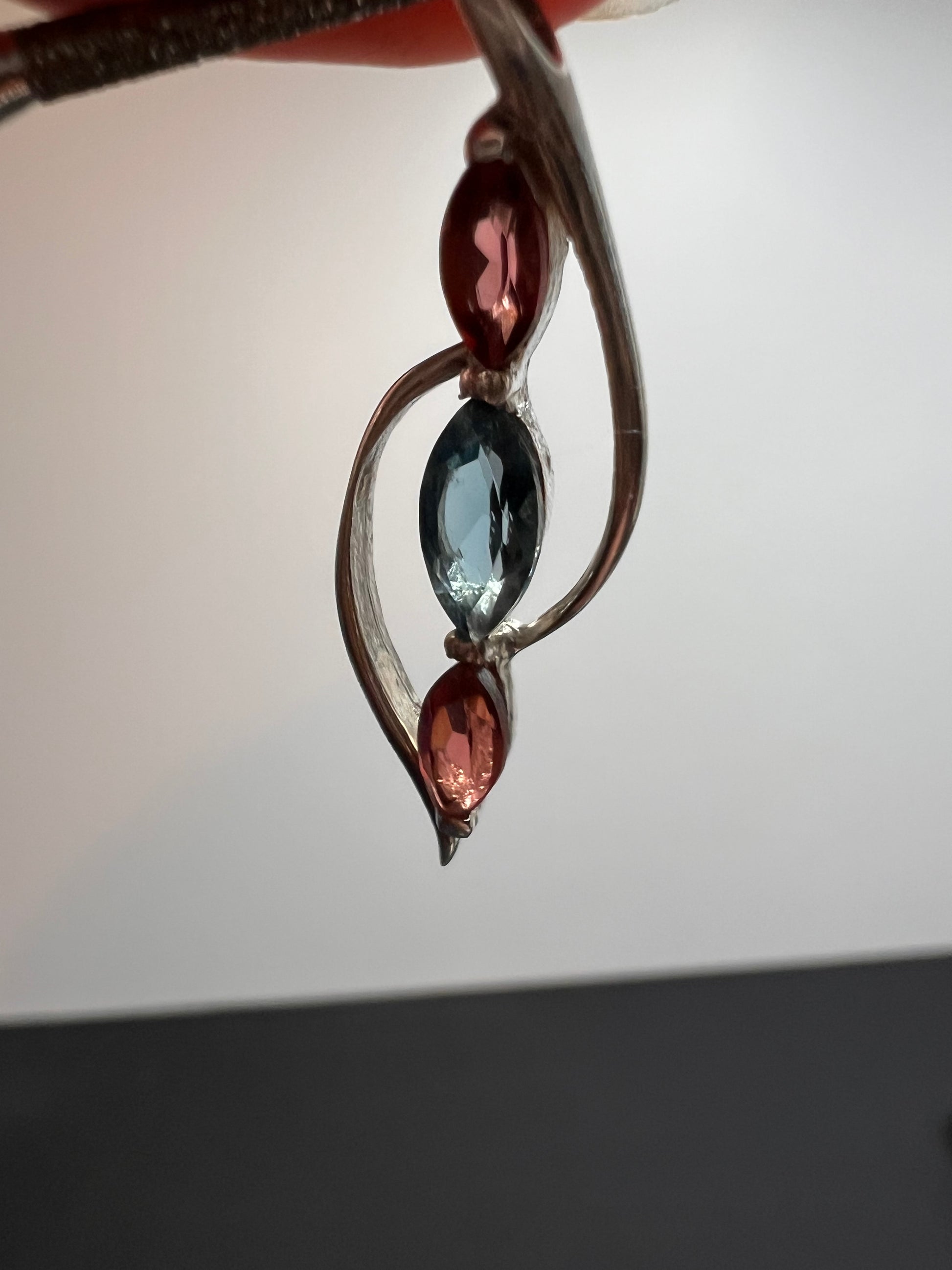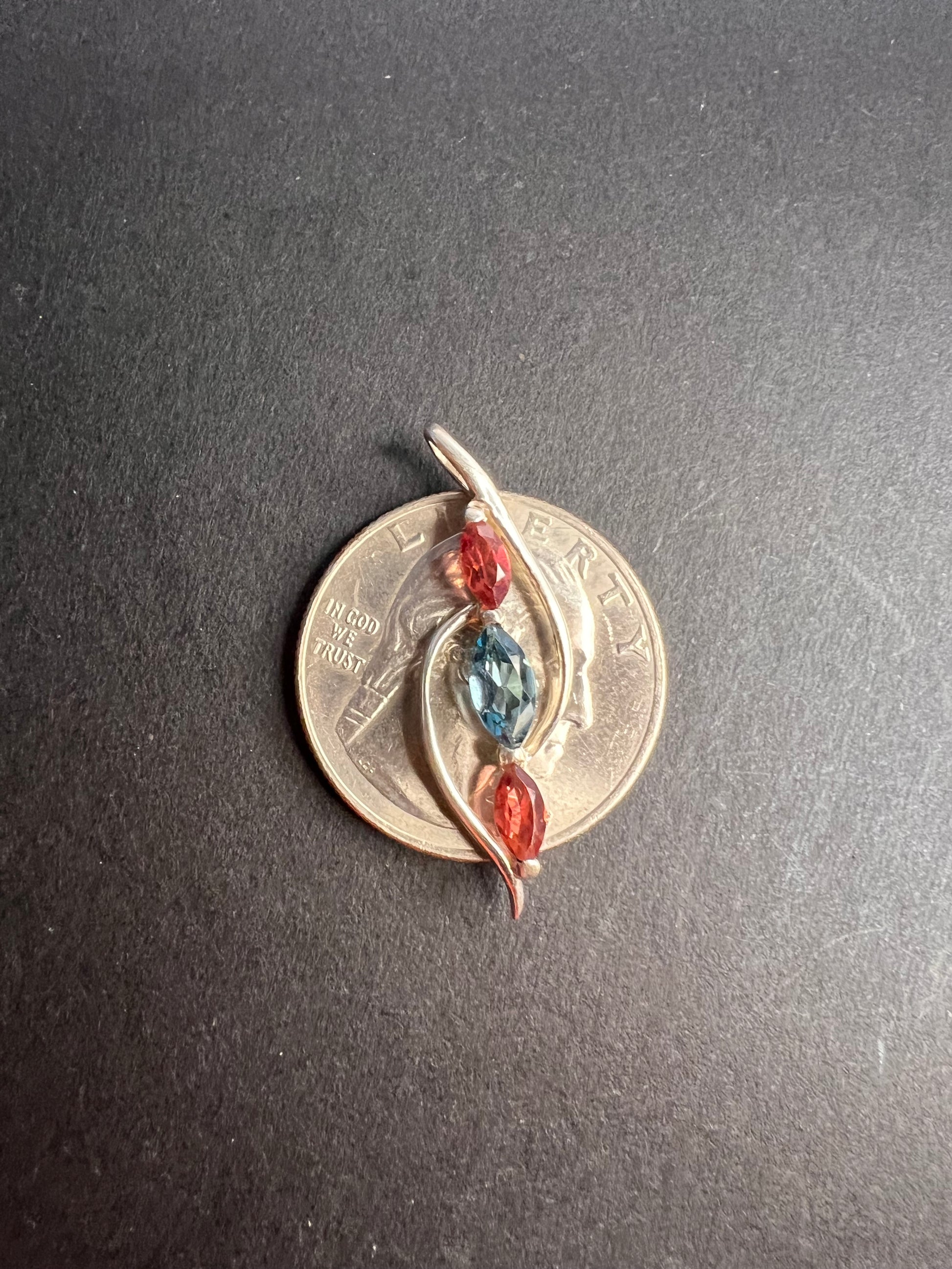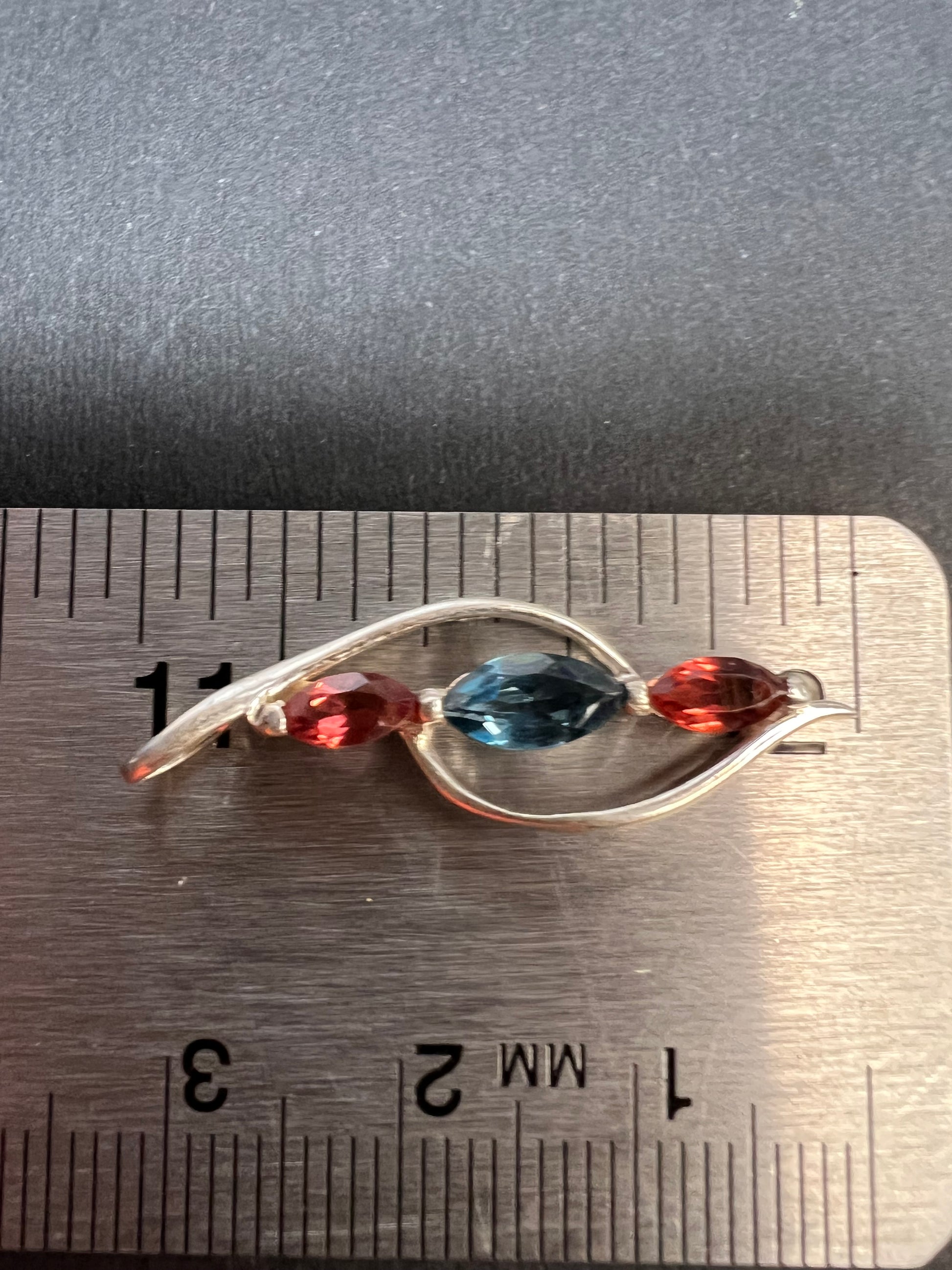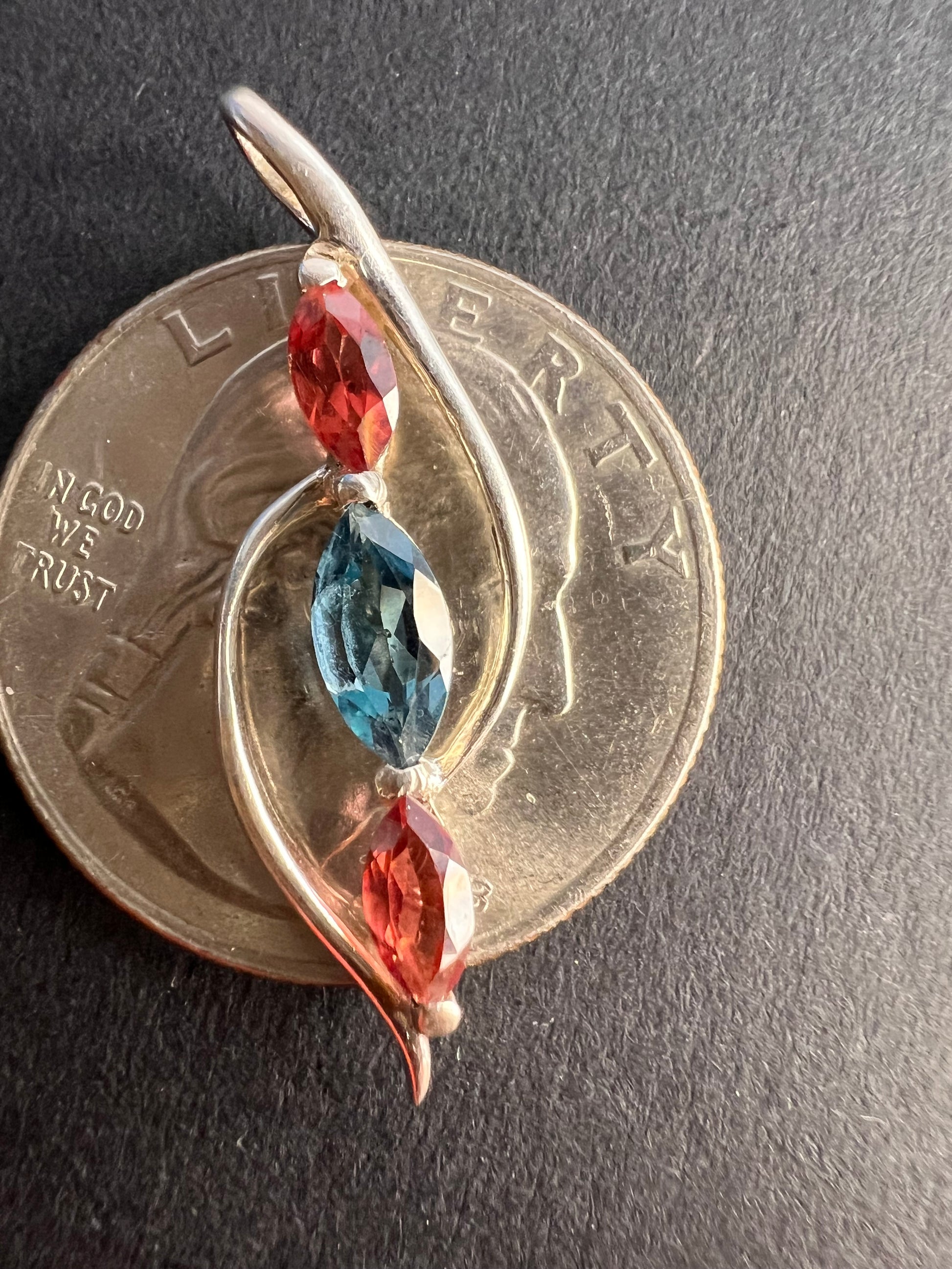 NEW Garnet and blue topaz sterling silver bypass pendant