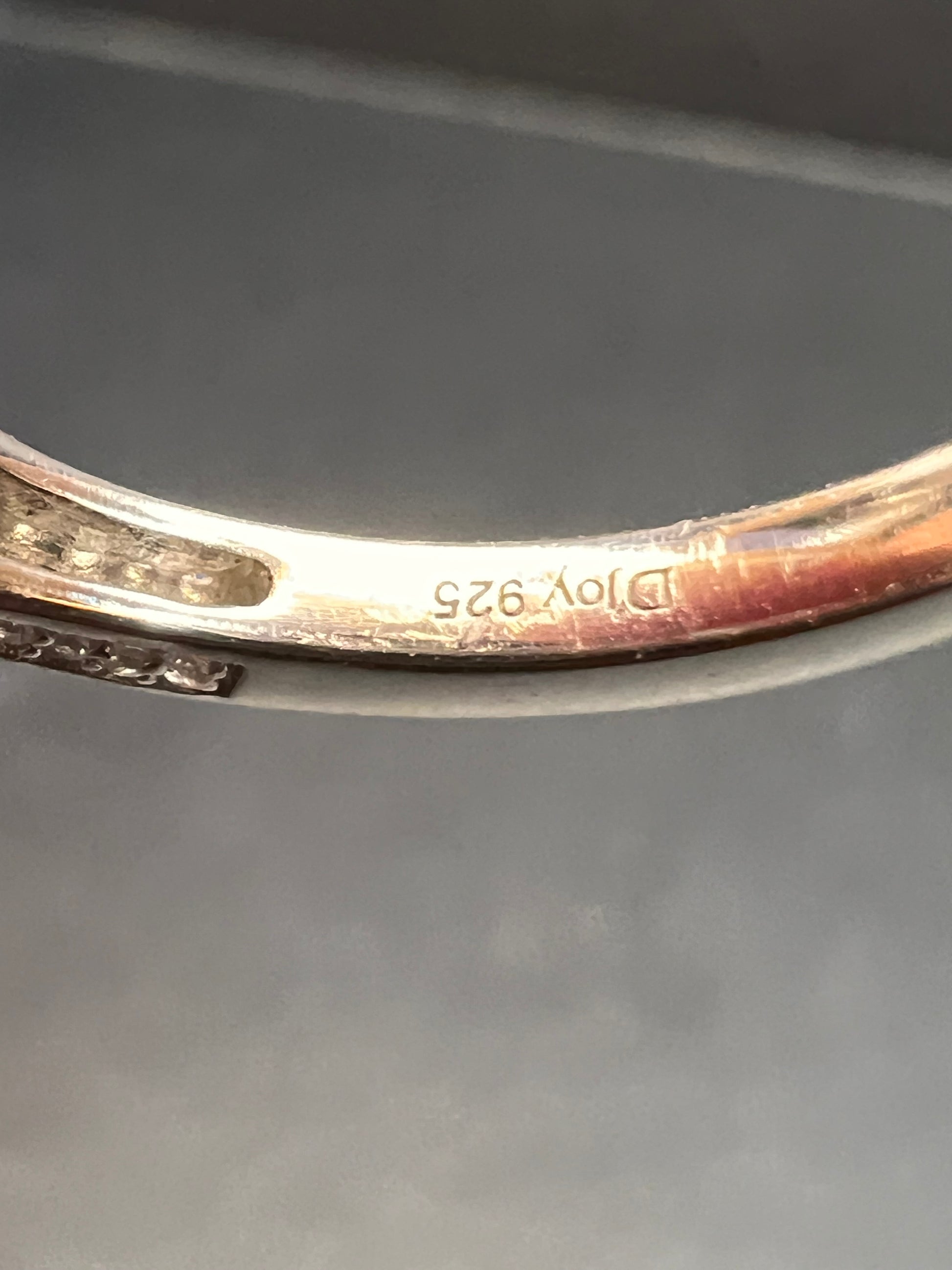 Genuine aqua colored grandidierite oval cut gemstone prong set in authentic 925 sterling silver plated with rhodium. White accent stones around the setting and down the shank are zircon. Measures a size 8 and has a total weight of 3.24 grams. Total ctw is 1.60. Djoy. Made in India. Estimated retail value is $630.