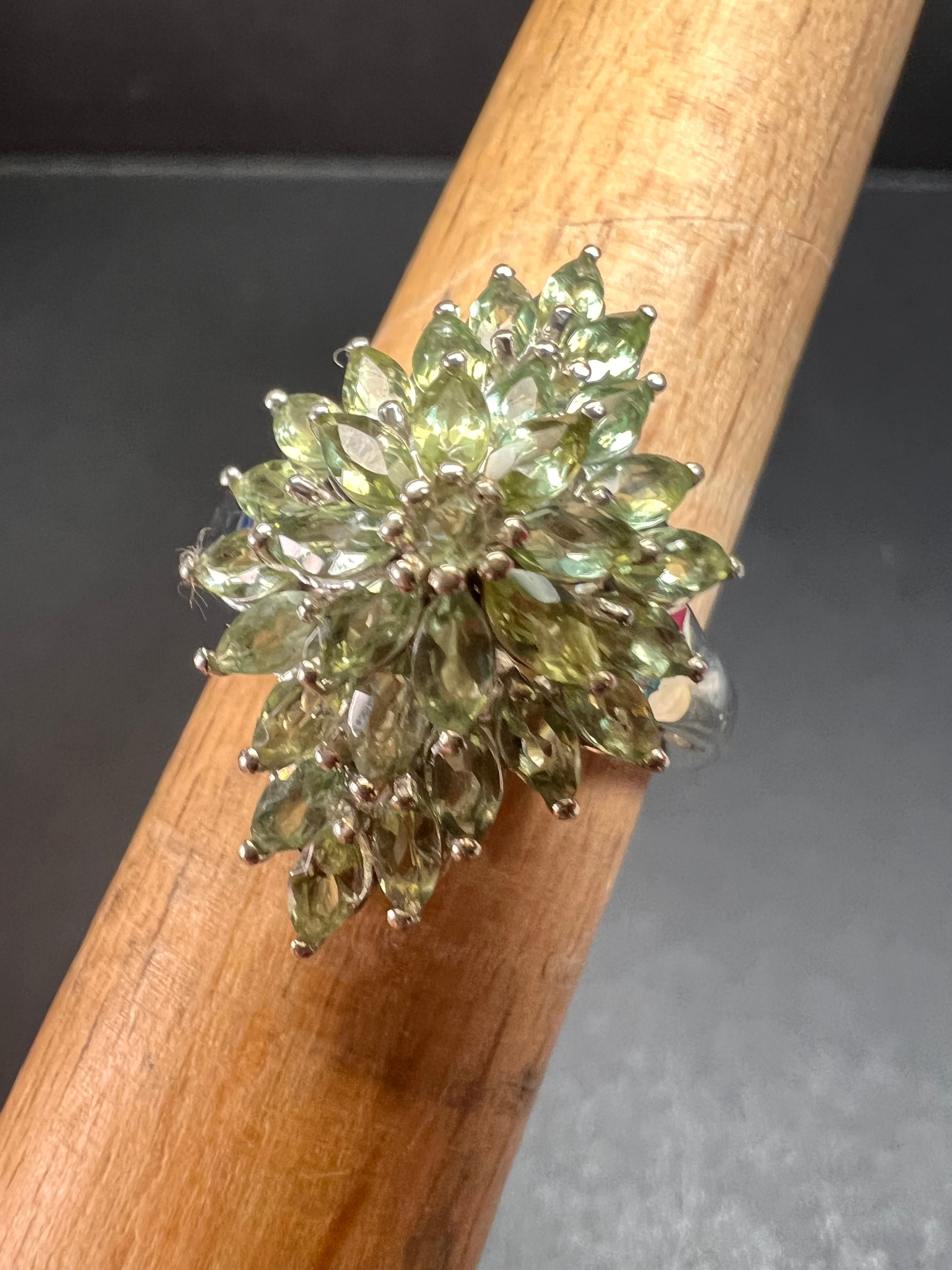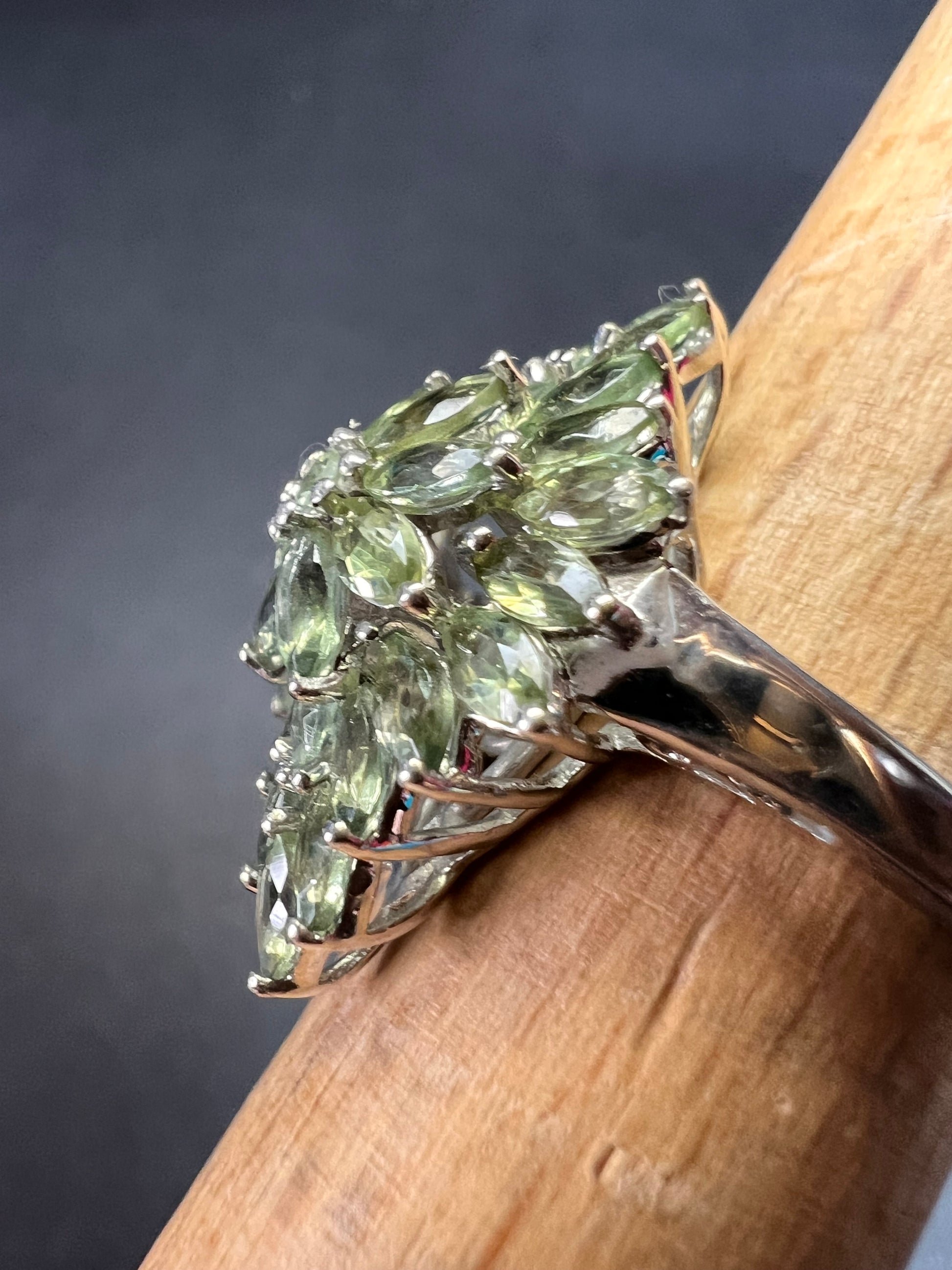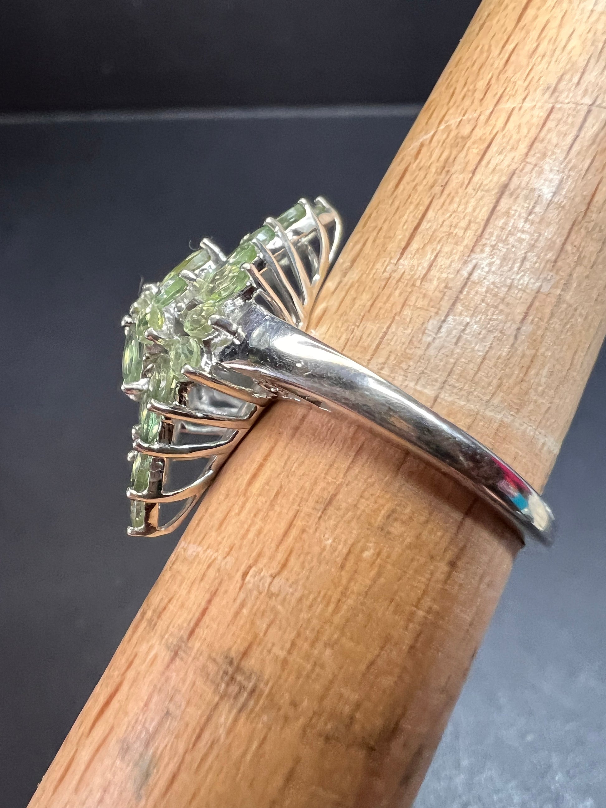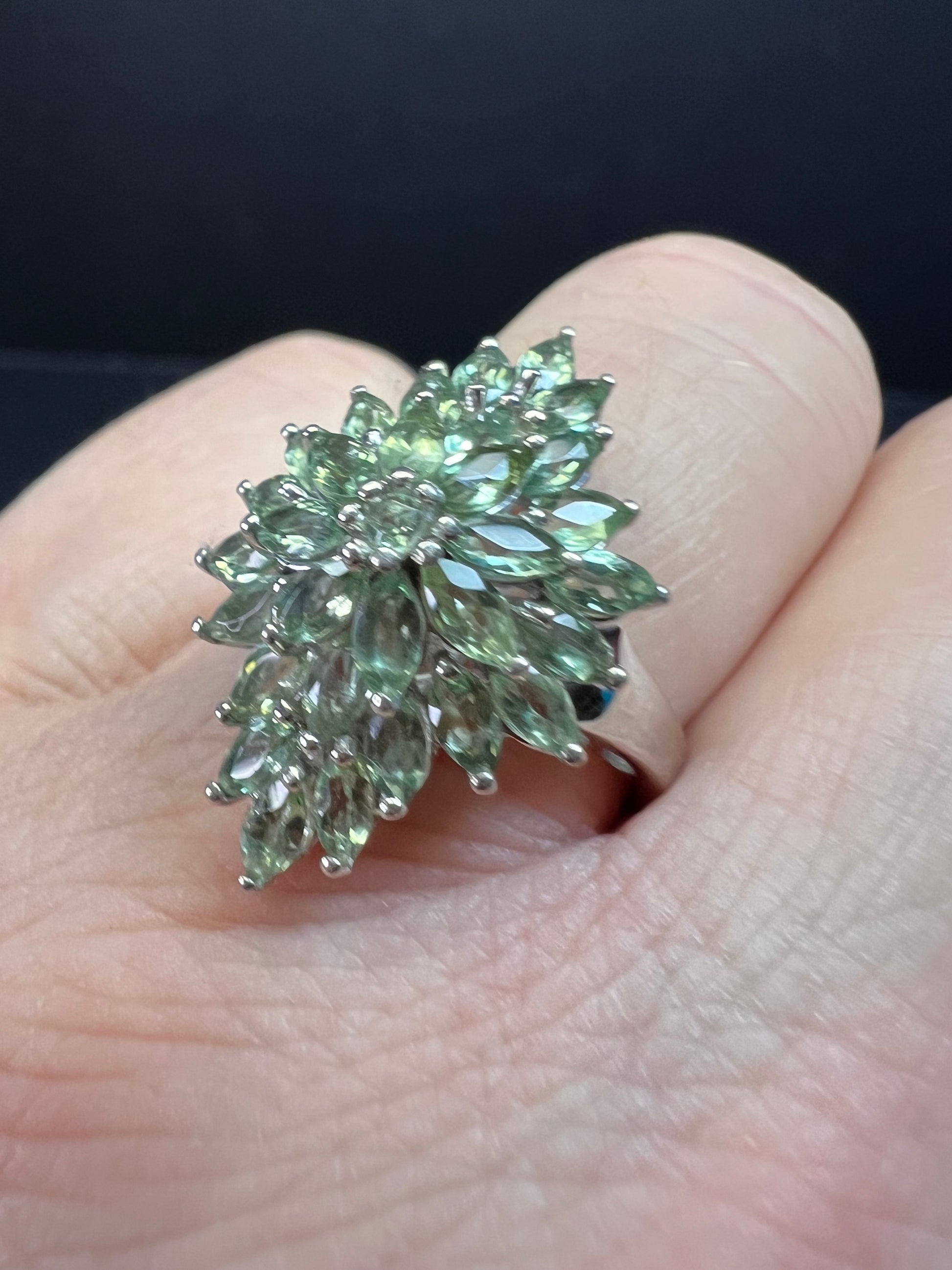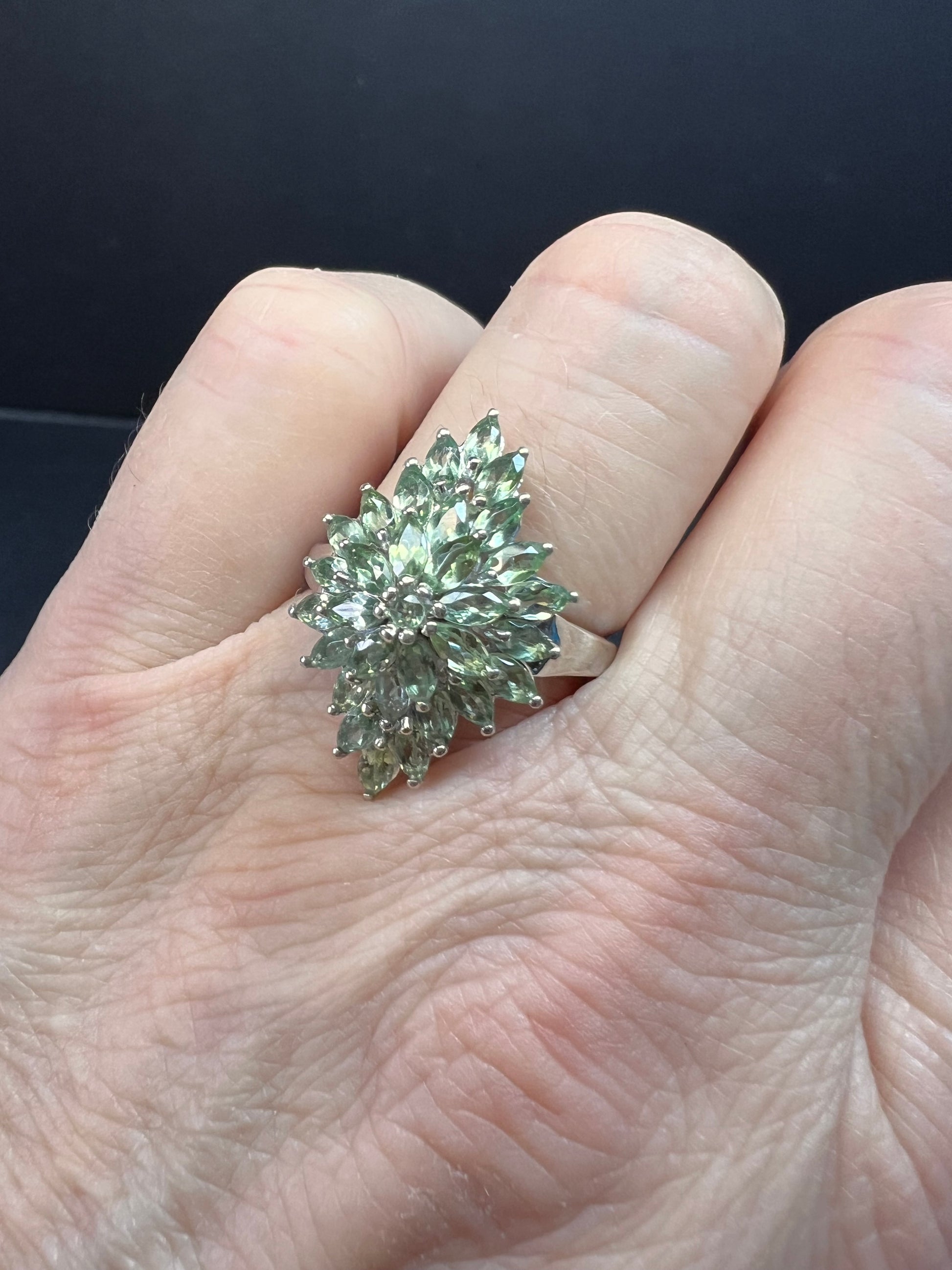 NEW Green apatite floral spray ring in rhodium over sterling silver size 7