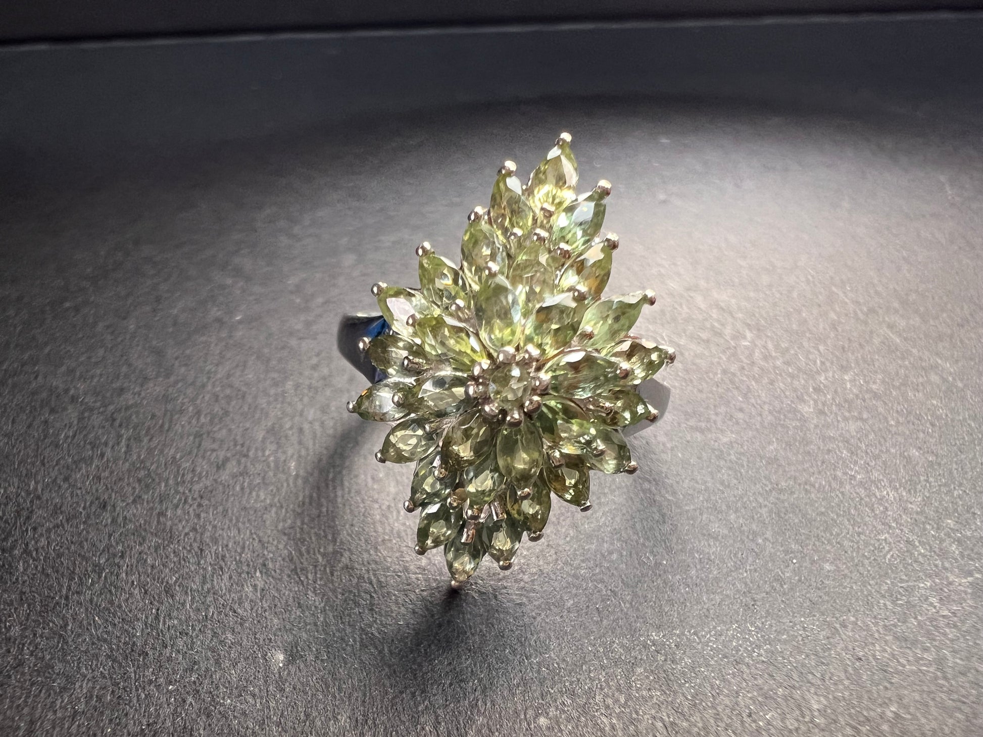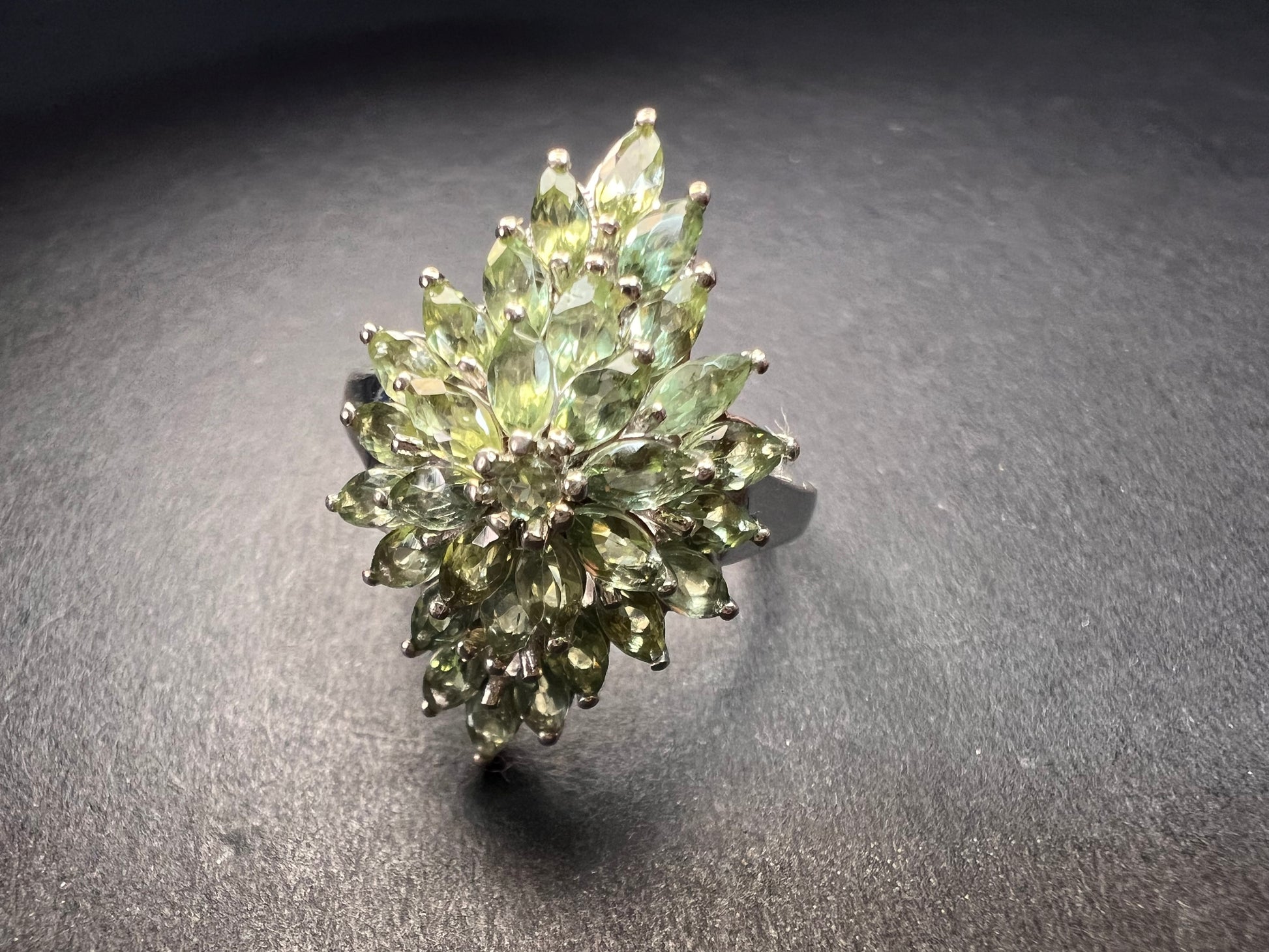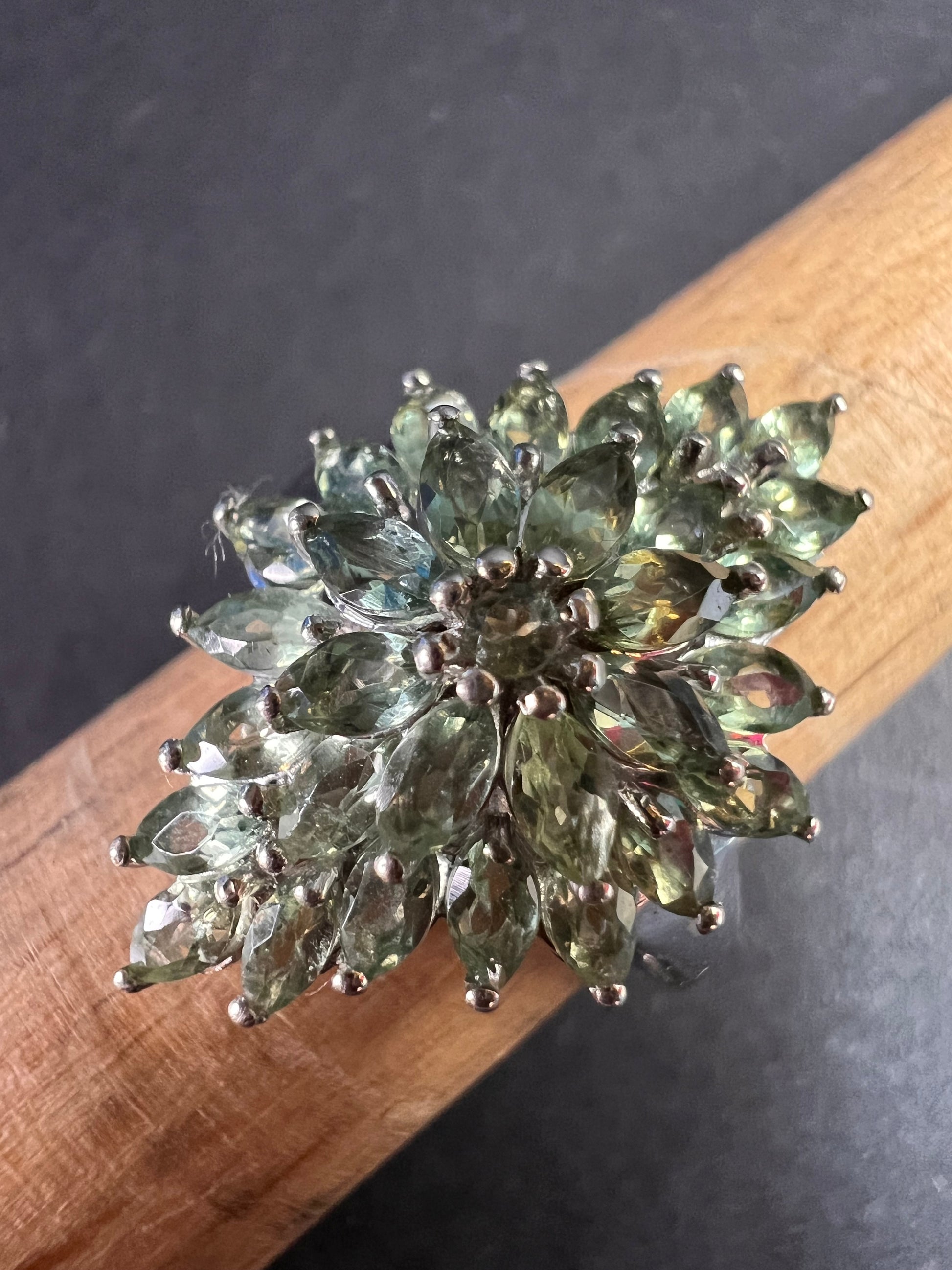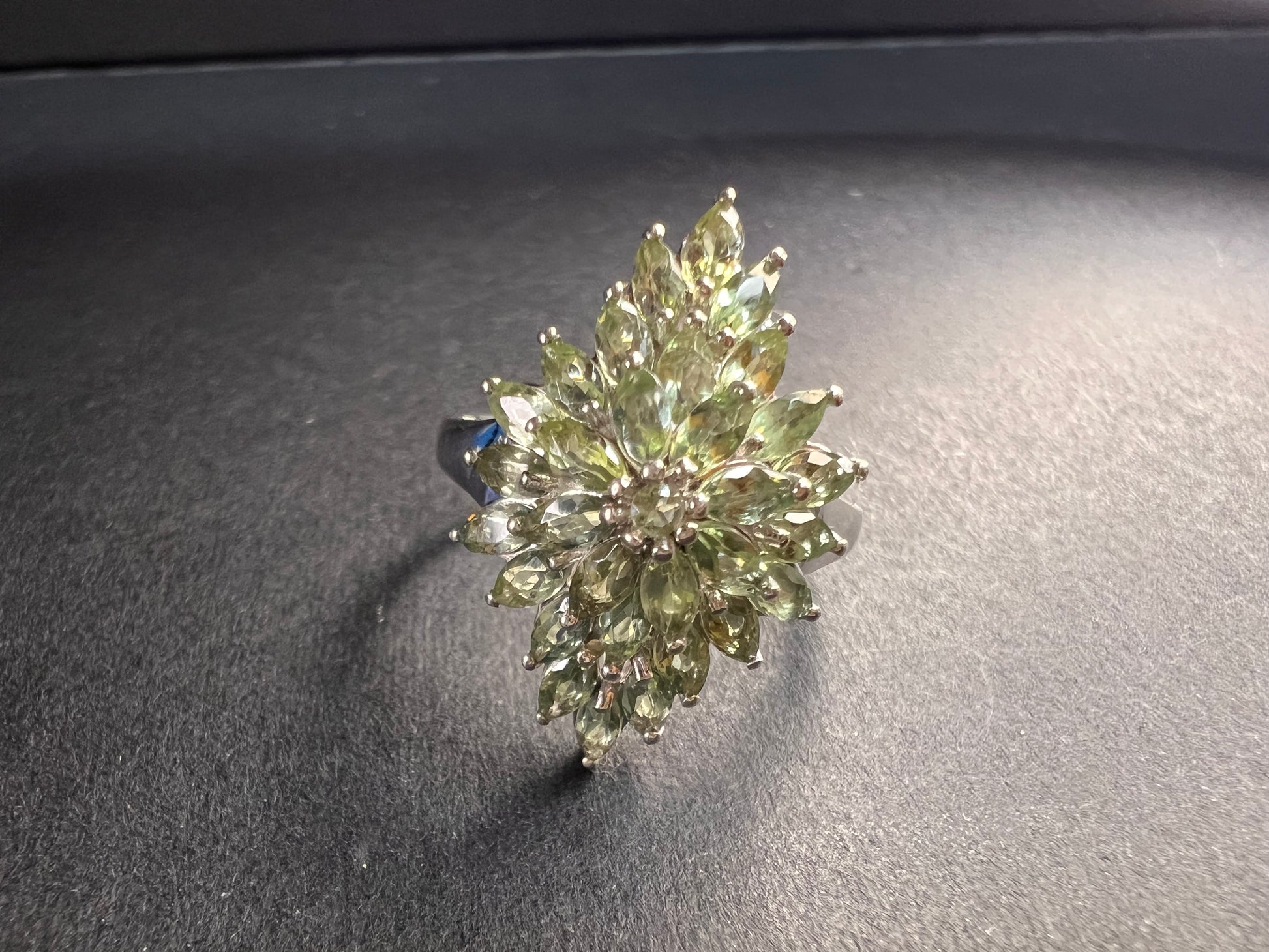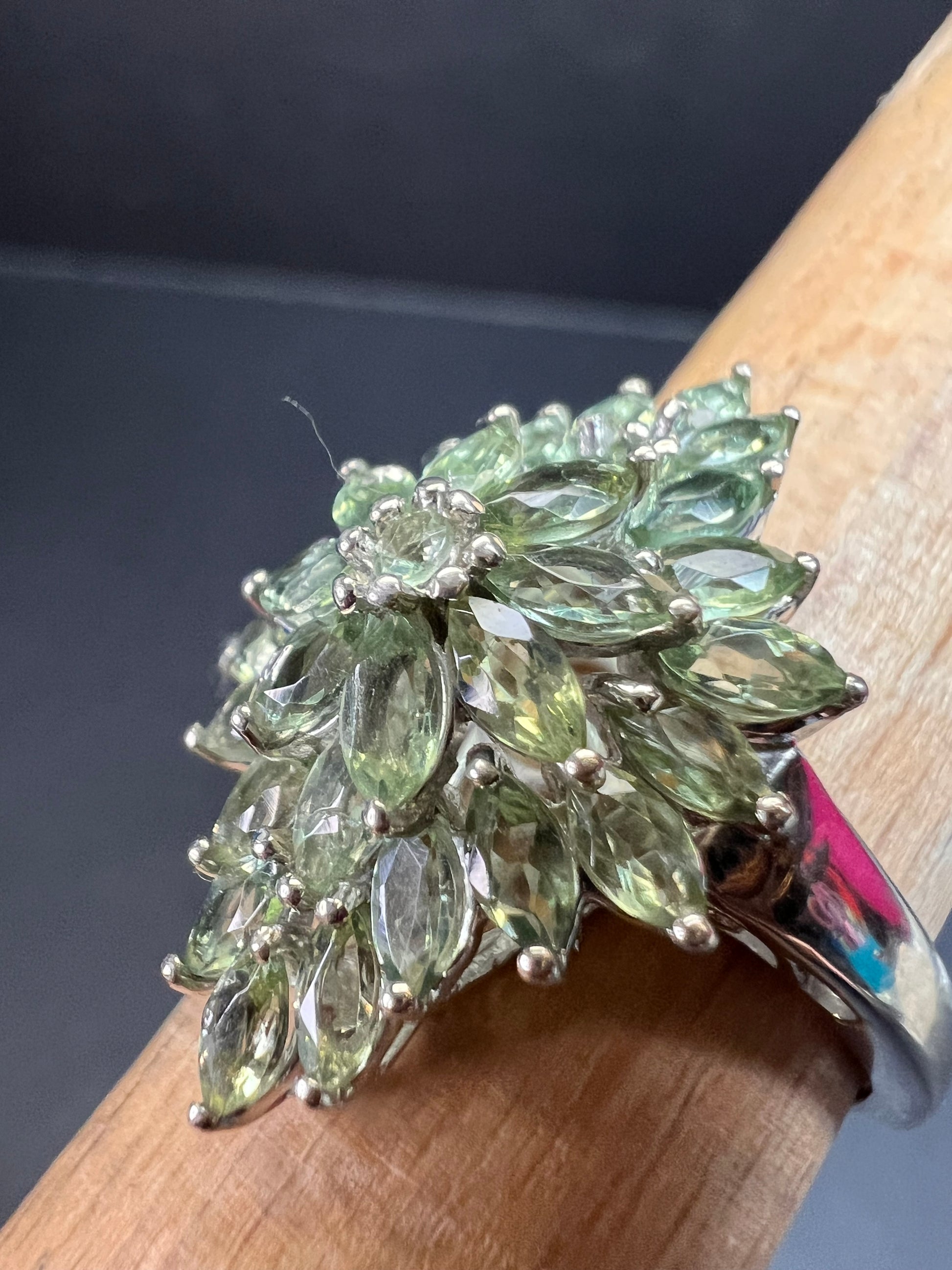 NEW Green apatite floral spray ring in rhodium over sterling silver size 7