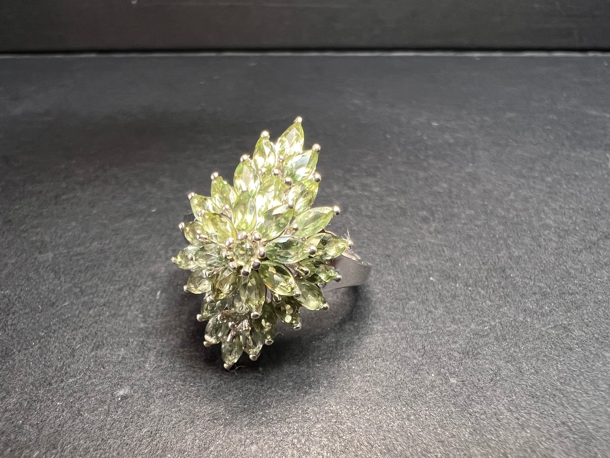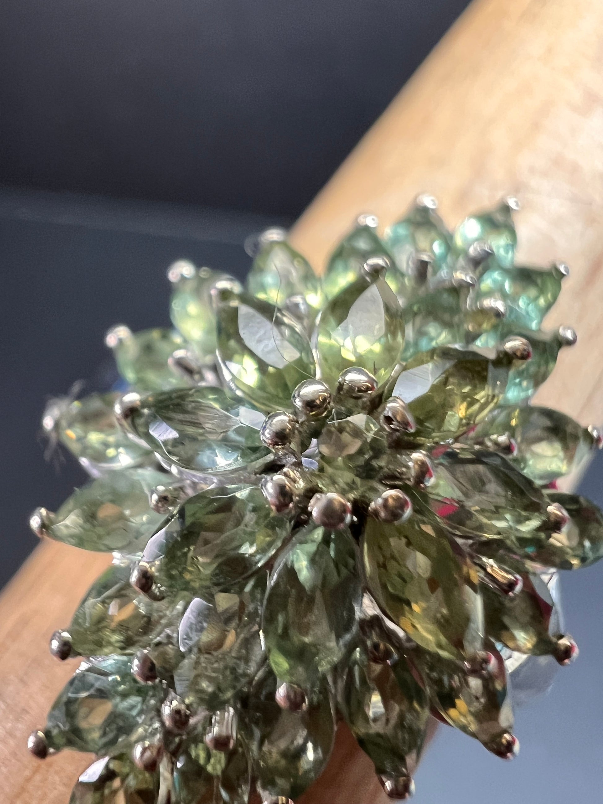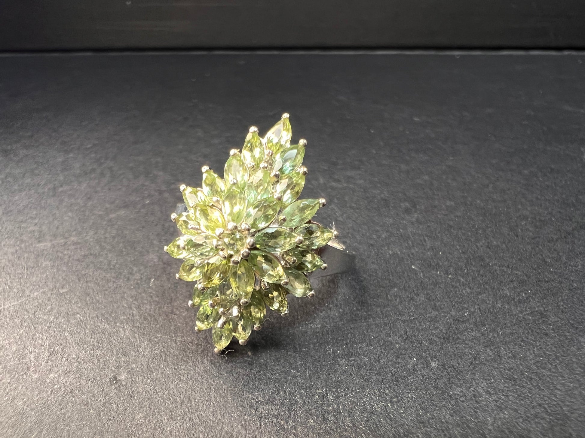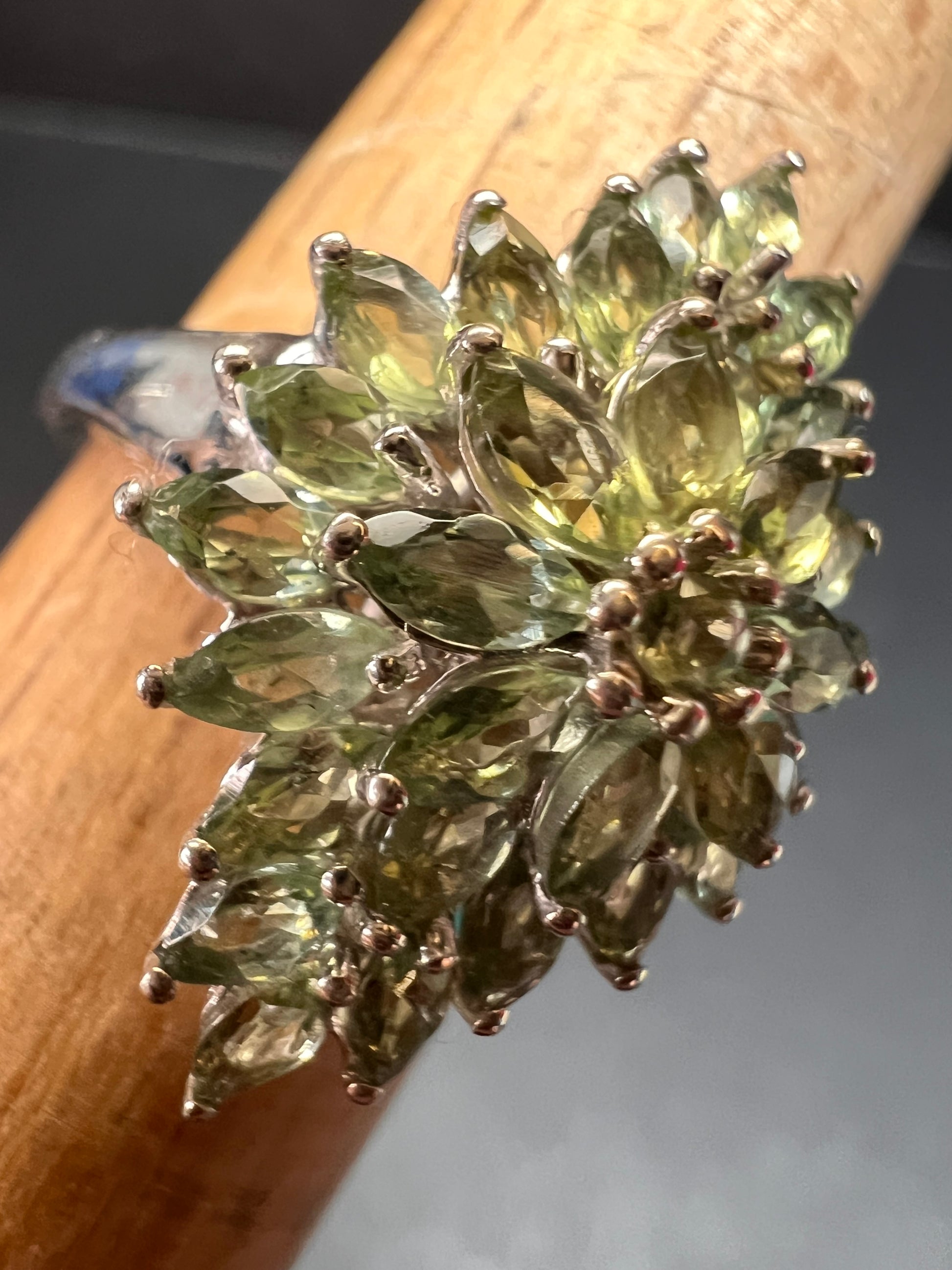 NEW Green apatite floral spray ring in rhodium over sterling silver size 7