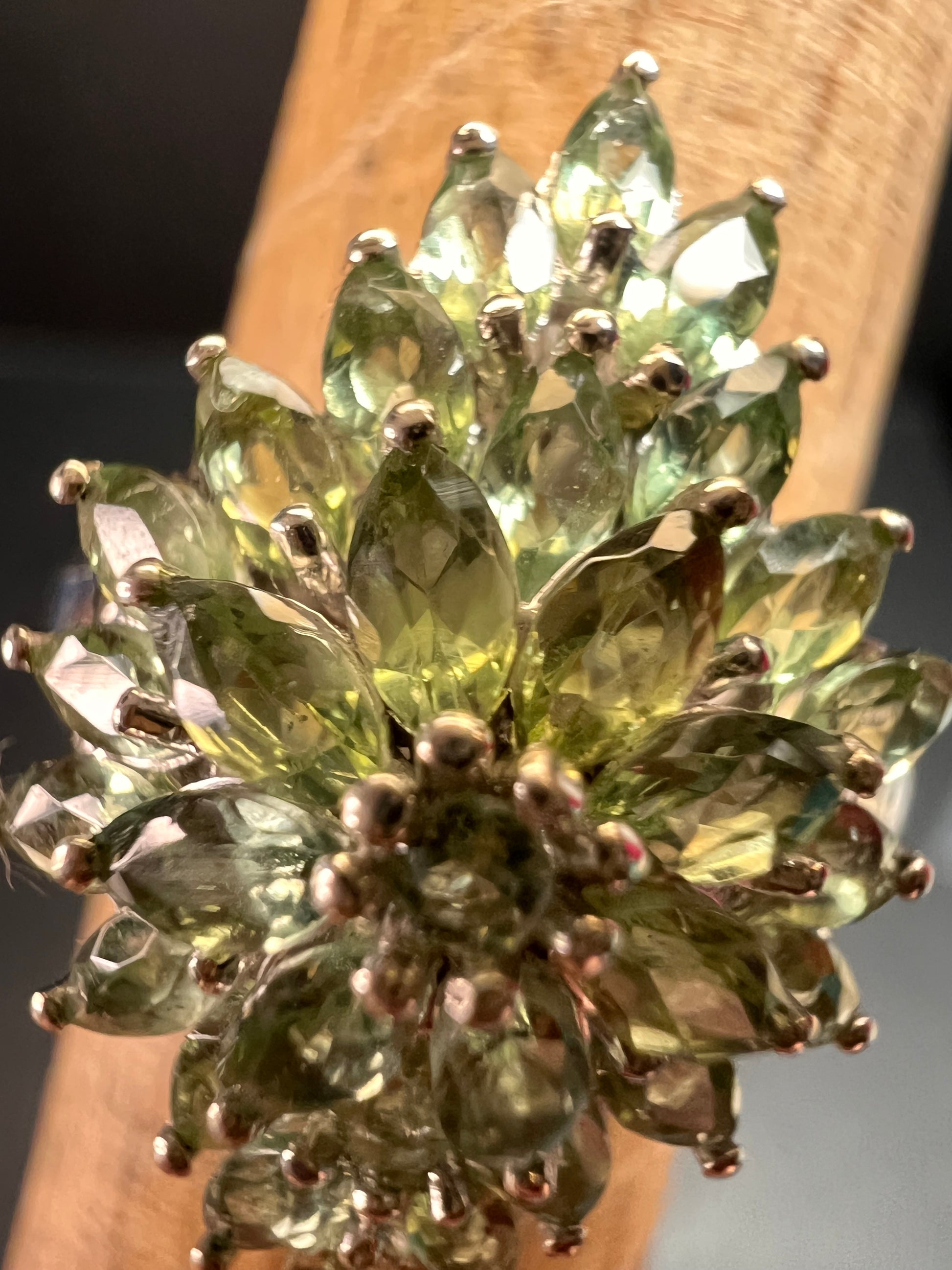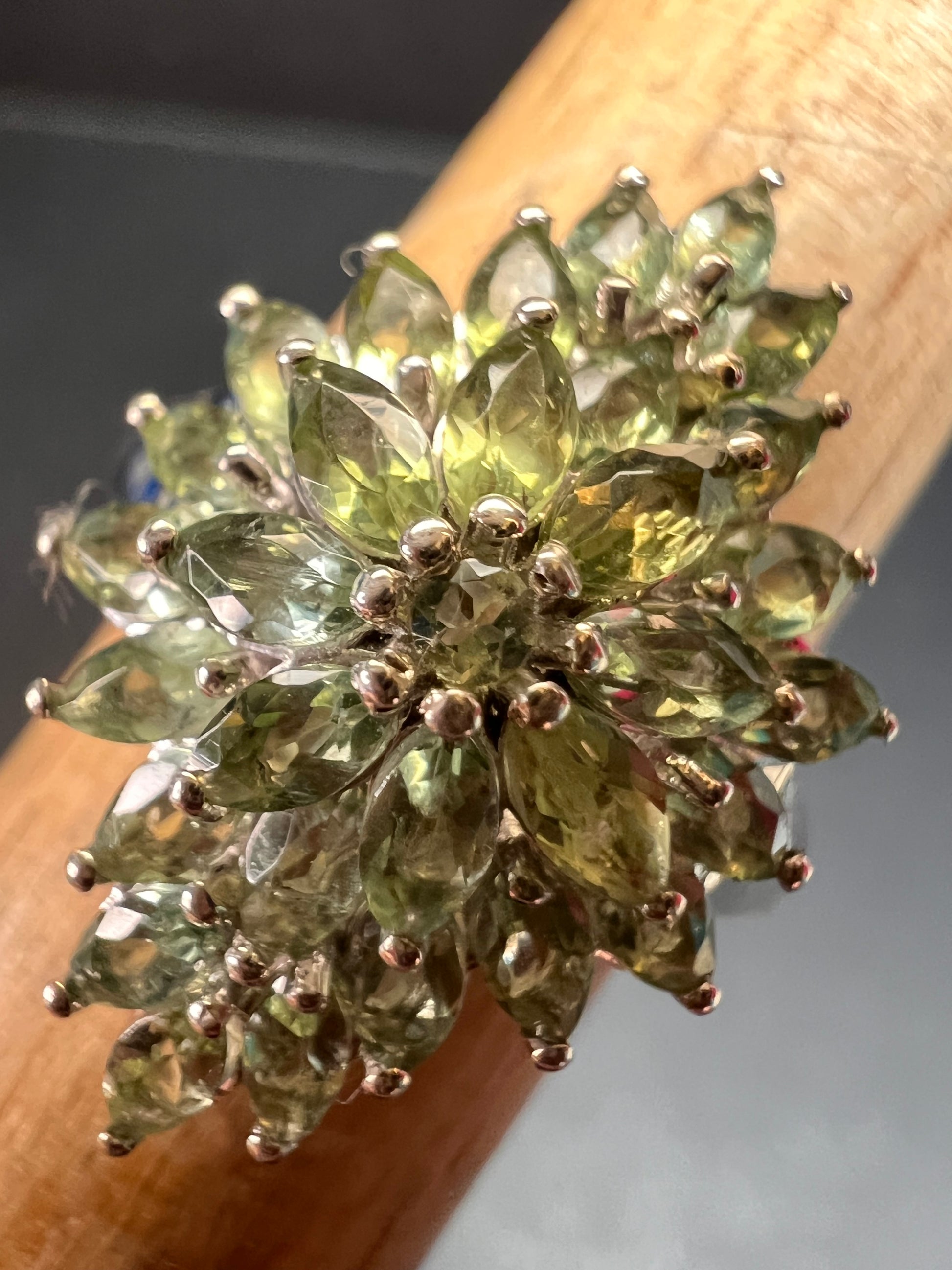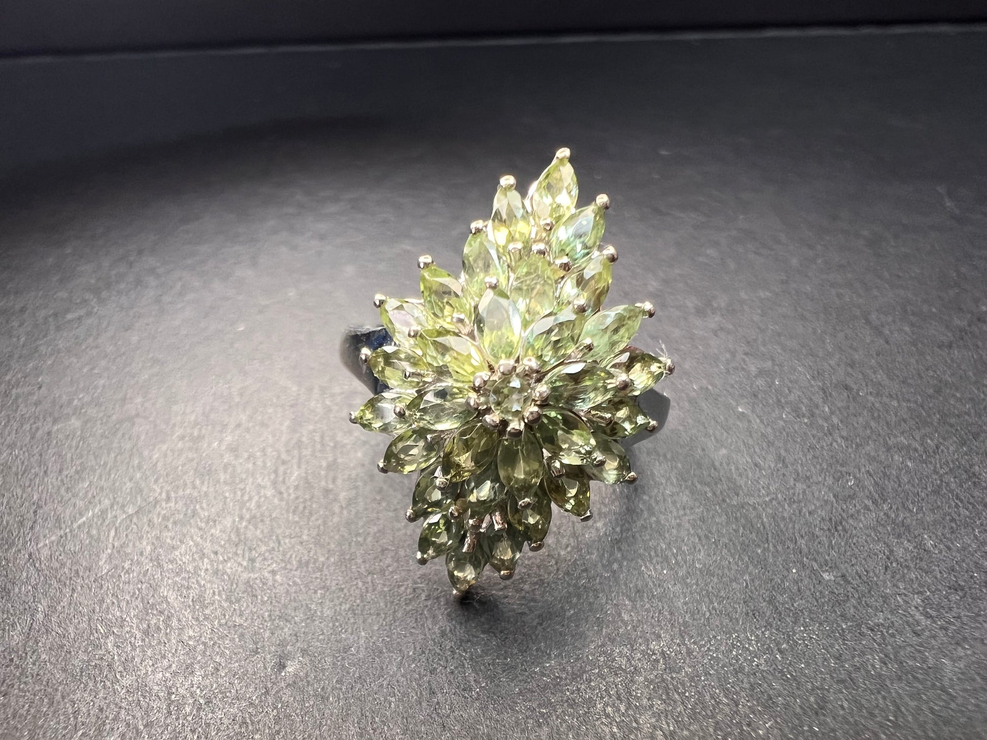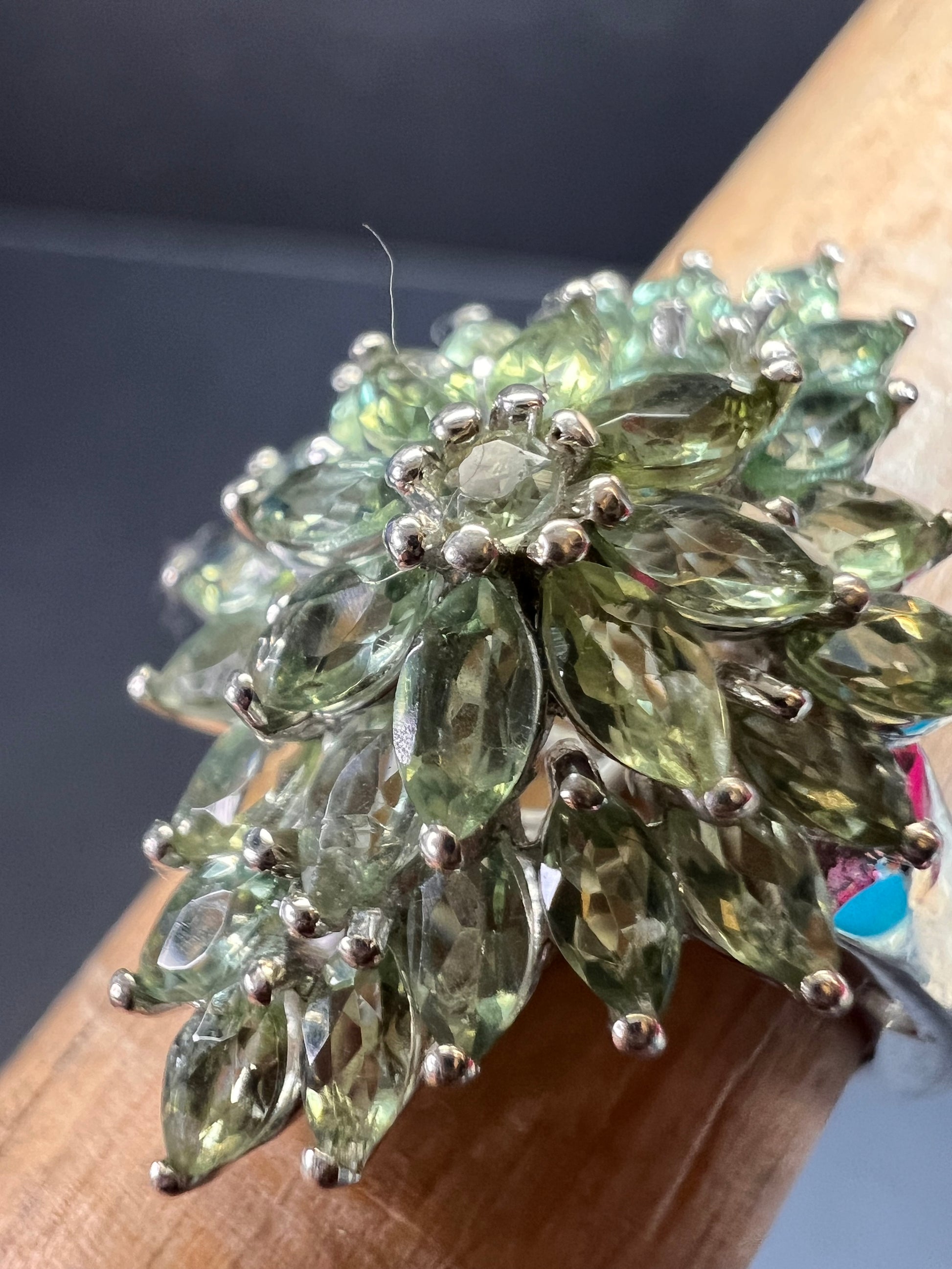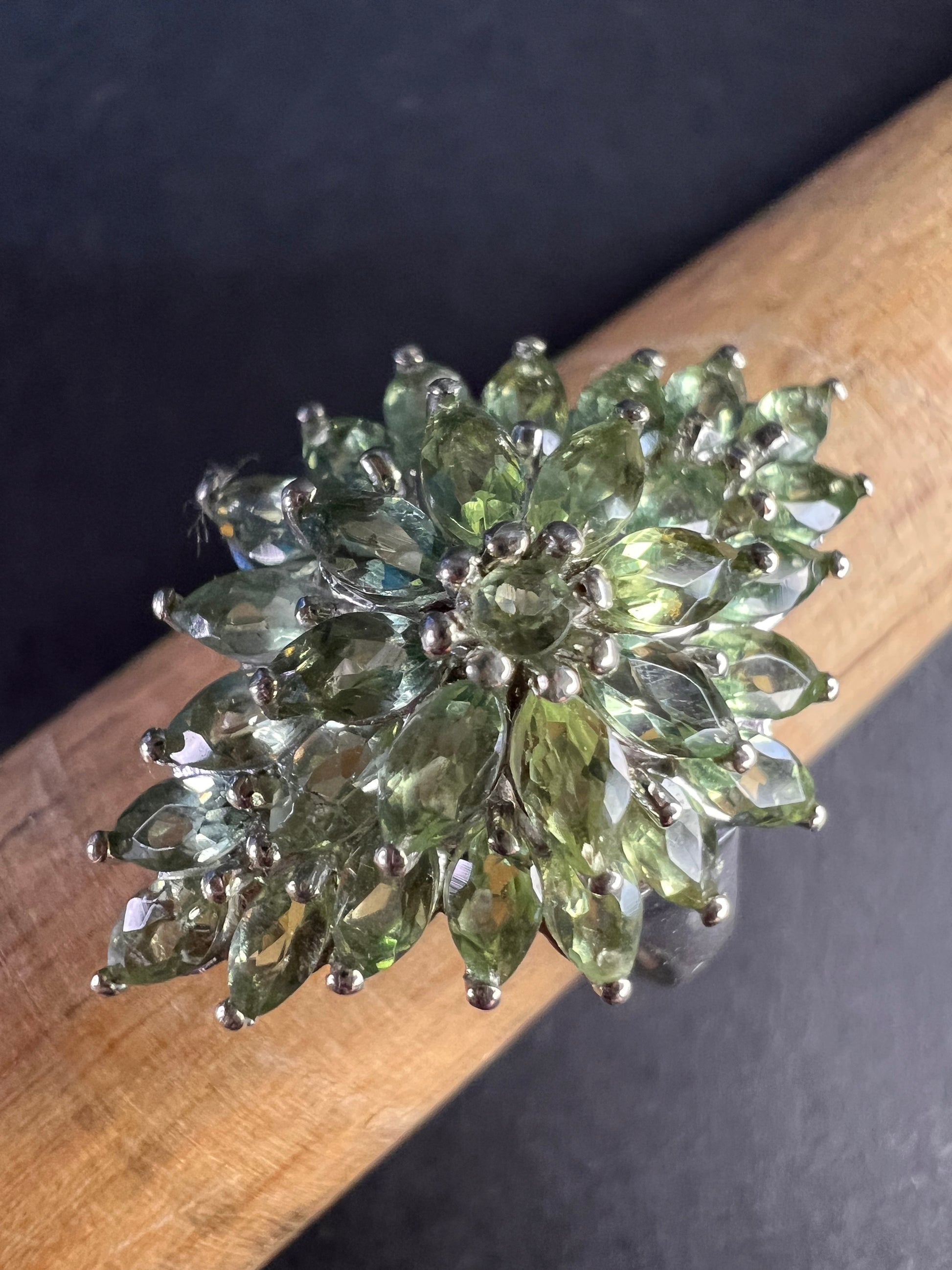 NEW Green apatite floral spray ring in rhodium over sterling silver size 7