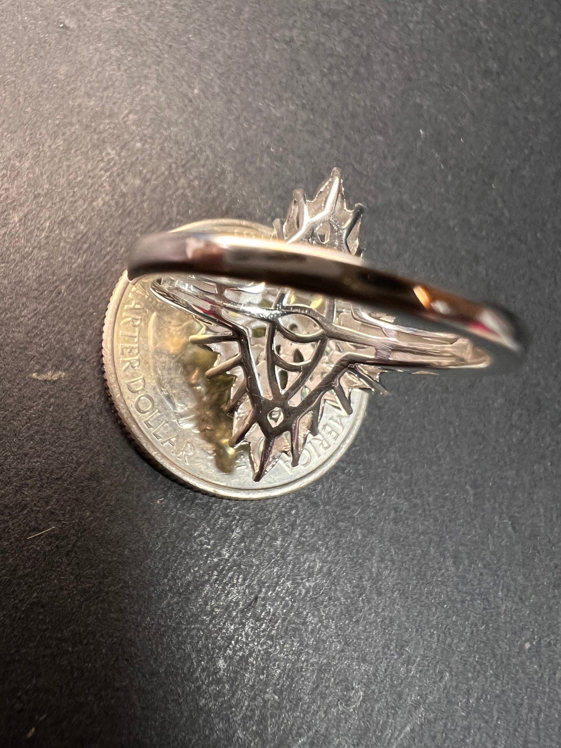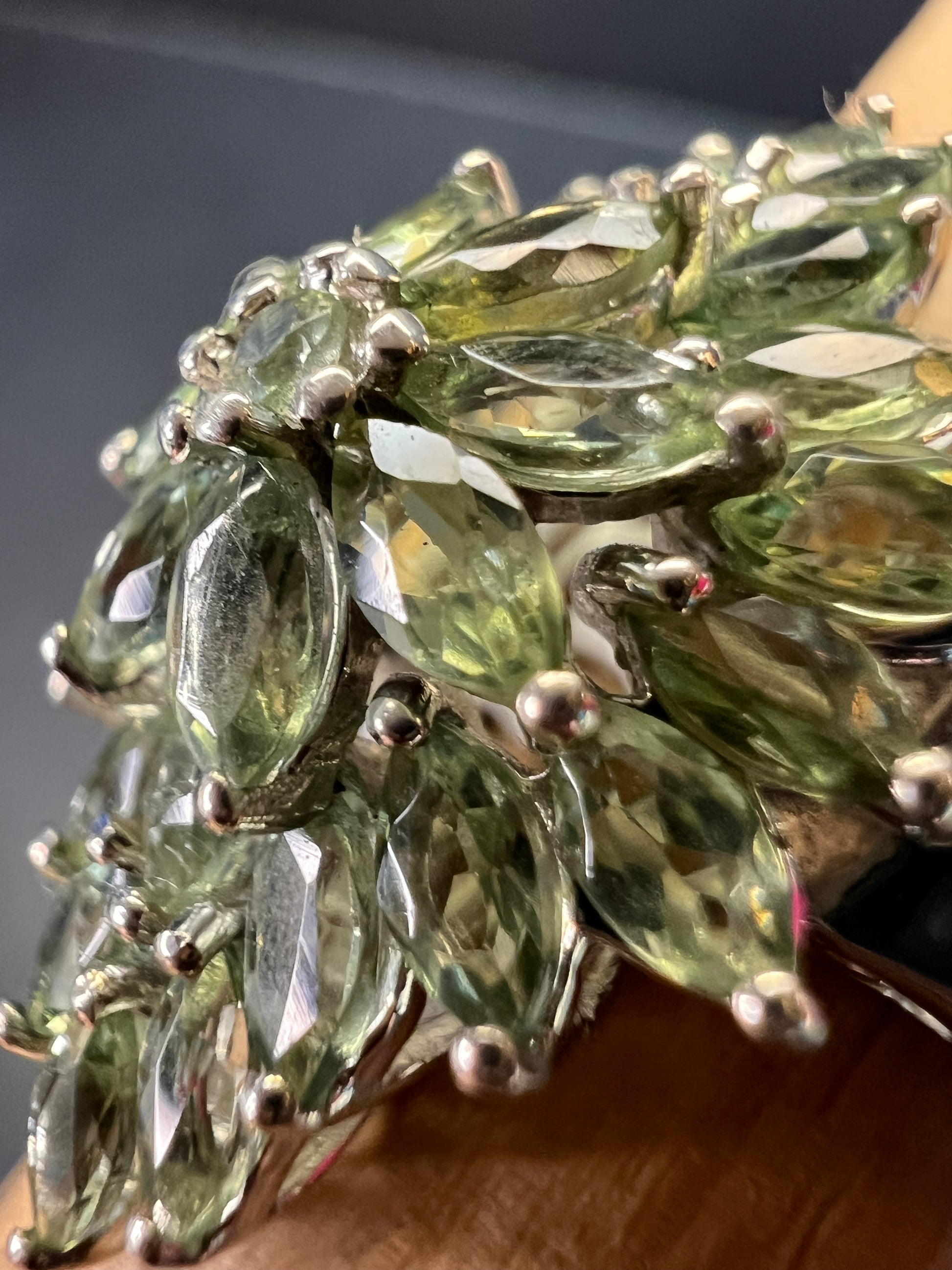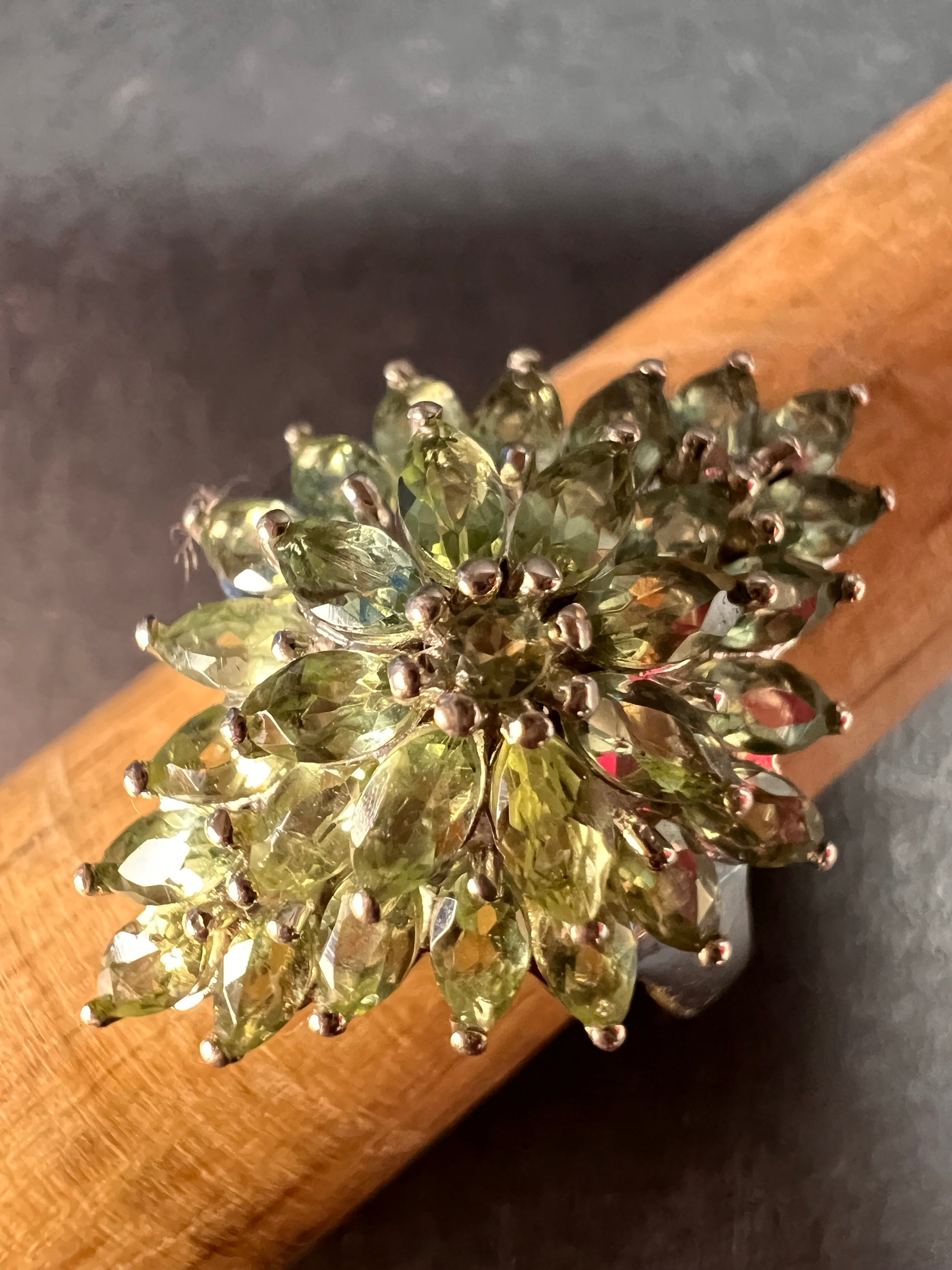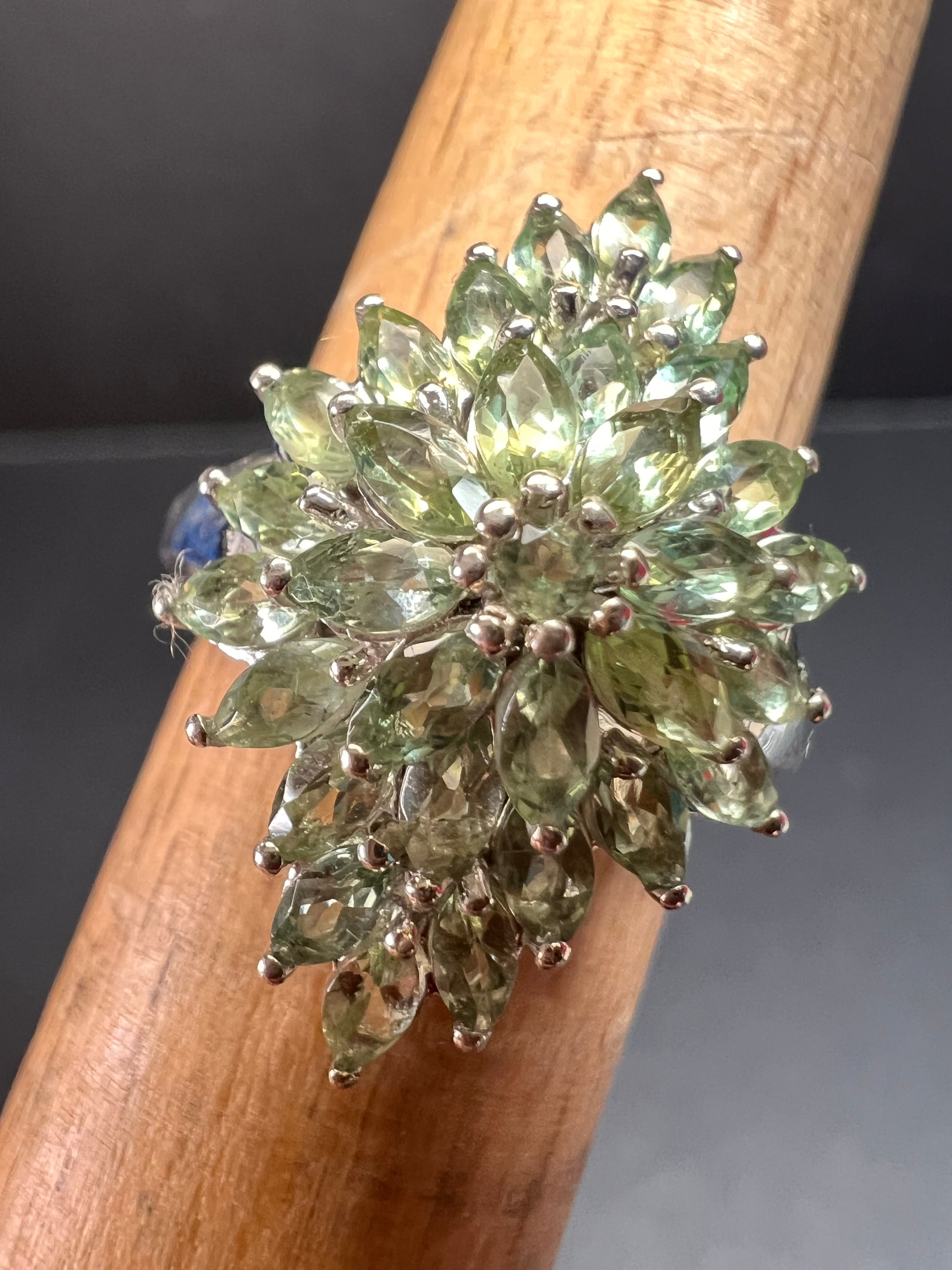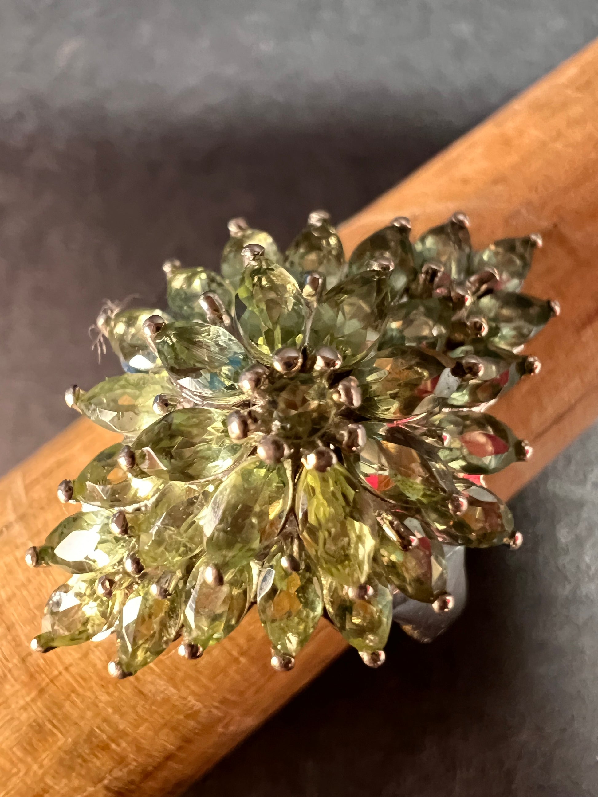 NEW Green apatite floral spray ring in rhodium over sterling silver size 7