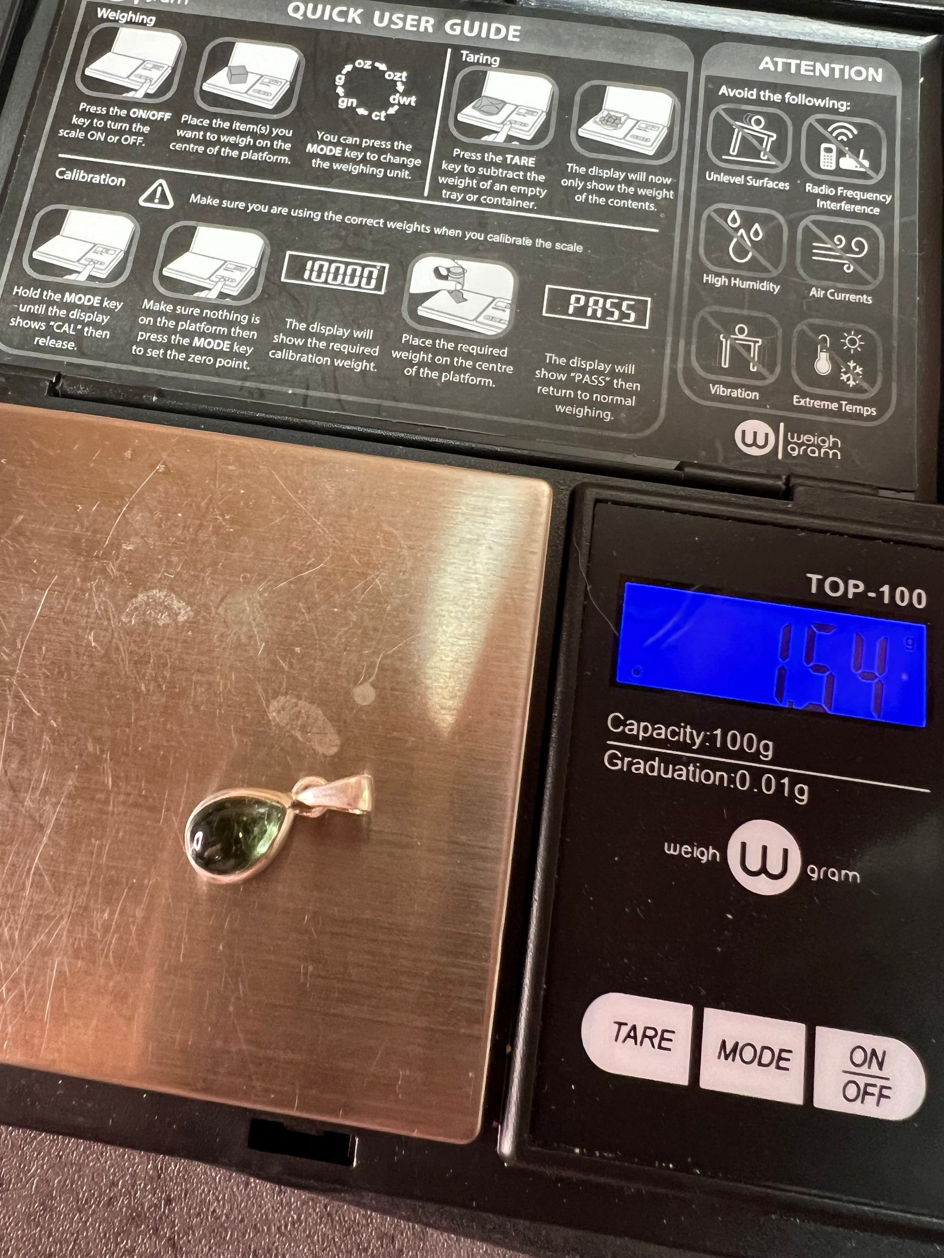 NEW Green tourmaline sterling silver pendant 1.54 grams