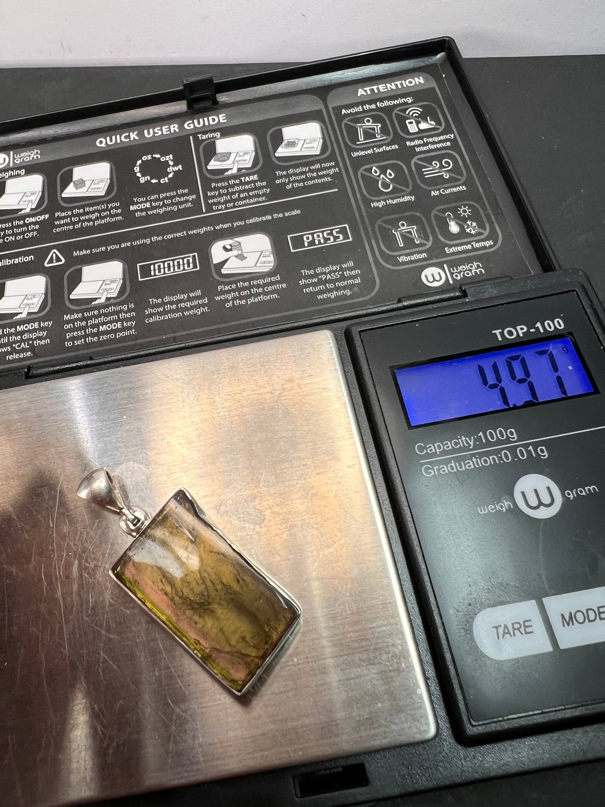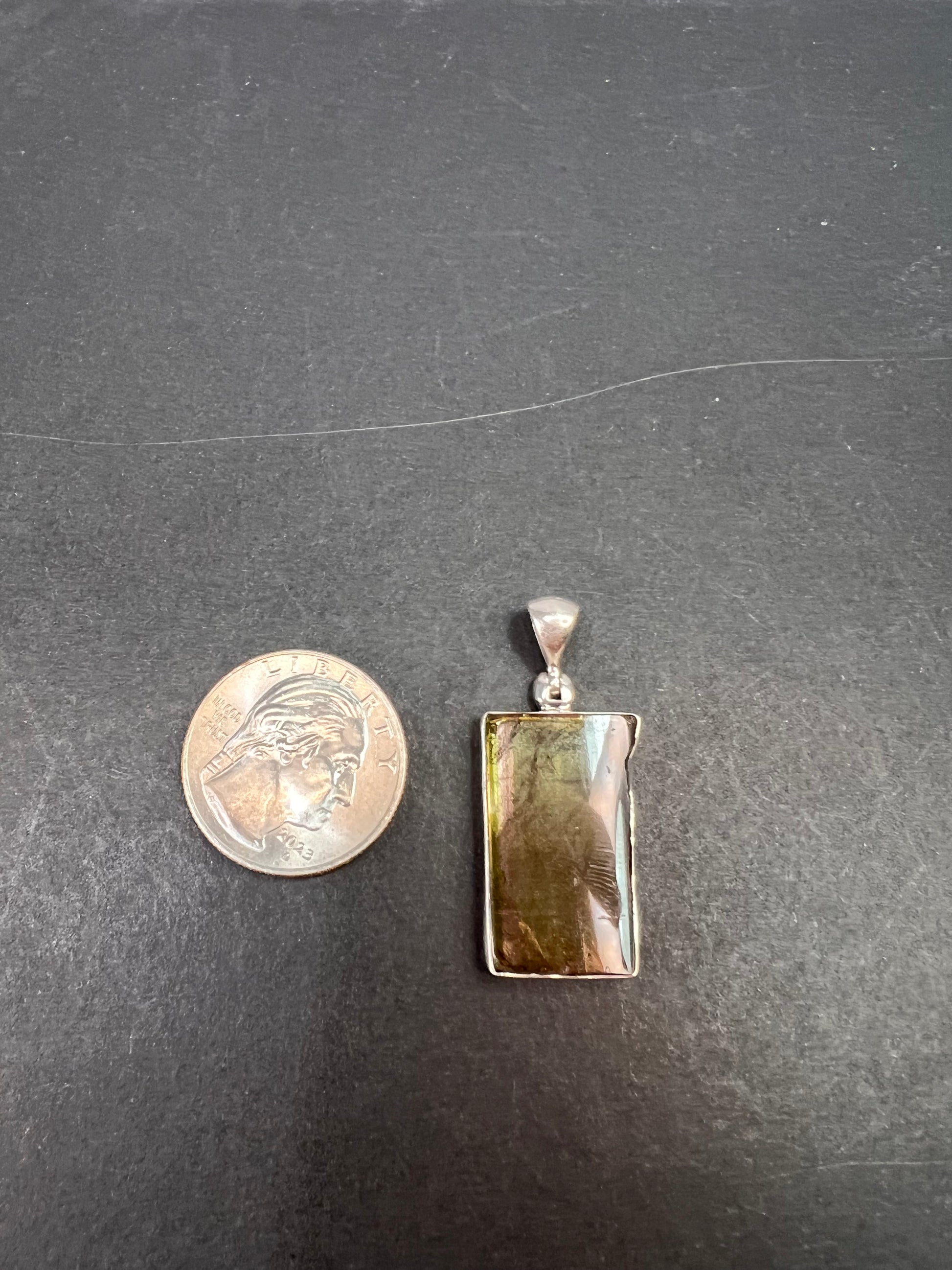 NEW Green watermelon tourmaline sterling silver pendant 4.97 grams