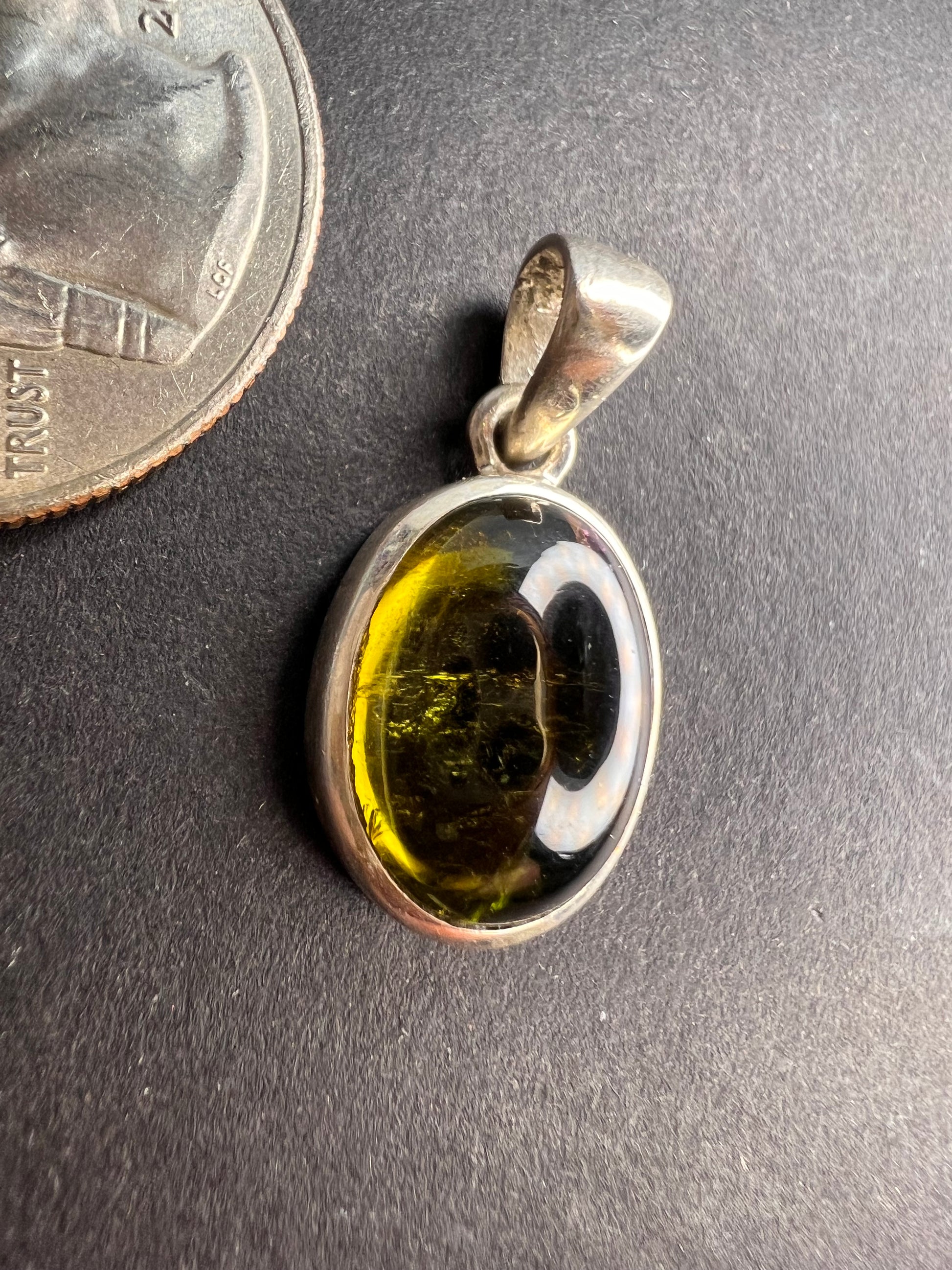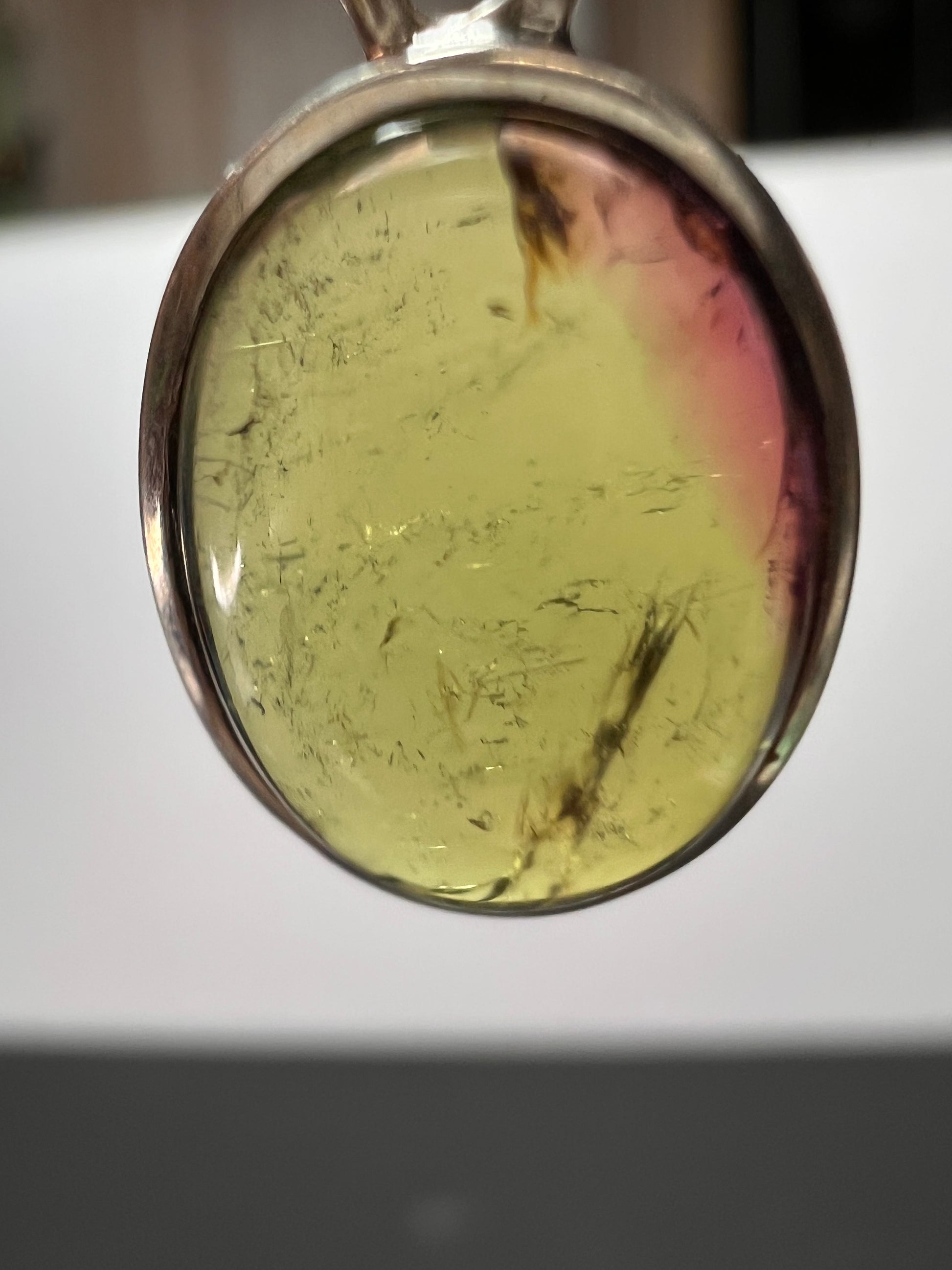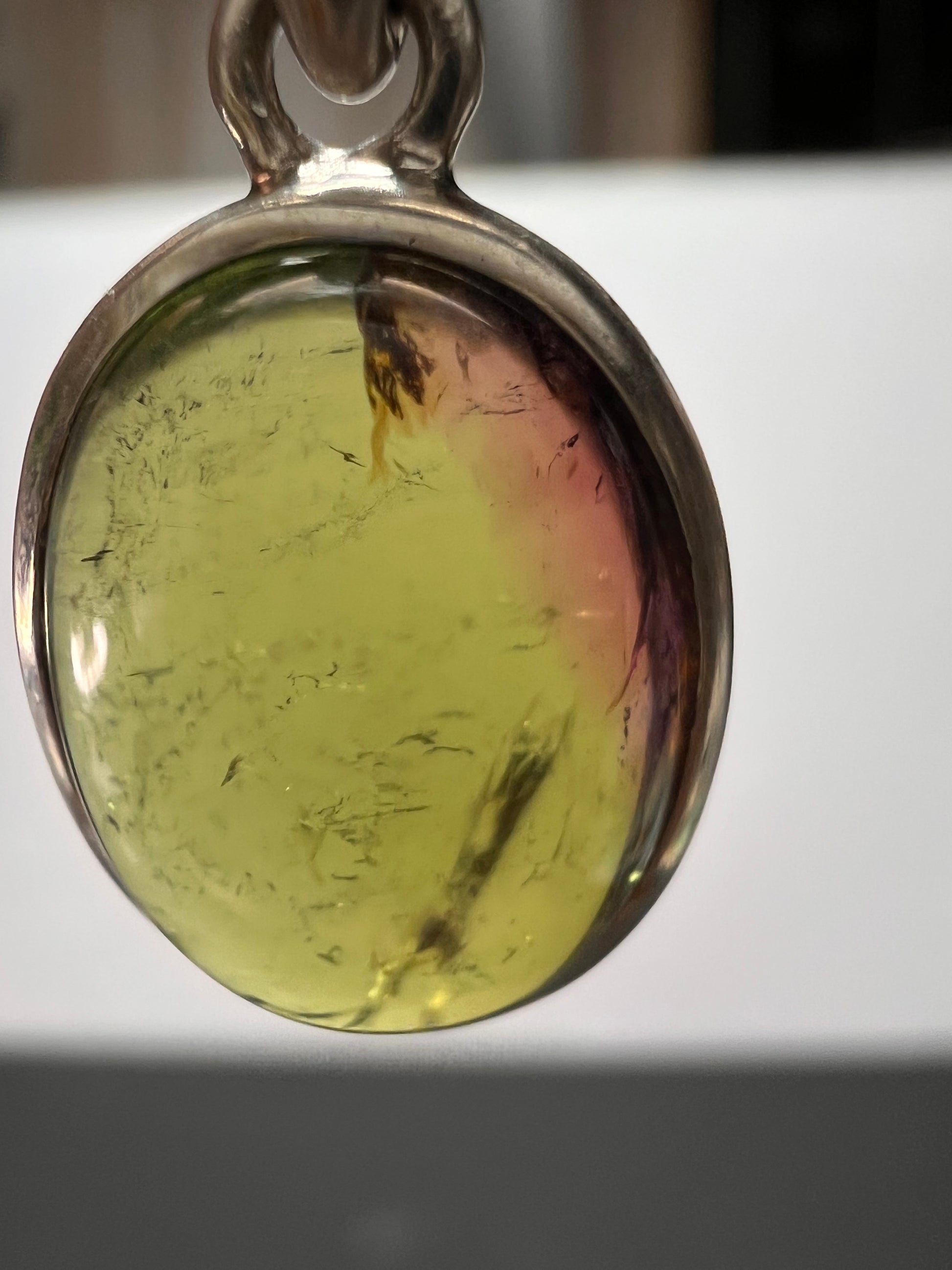 NEW Green with pink tourmaline sterling silver pendant 2.34 grams