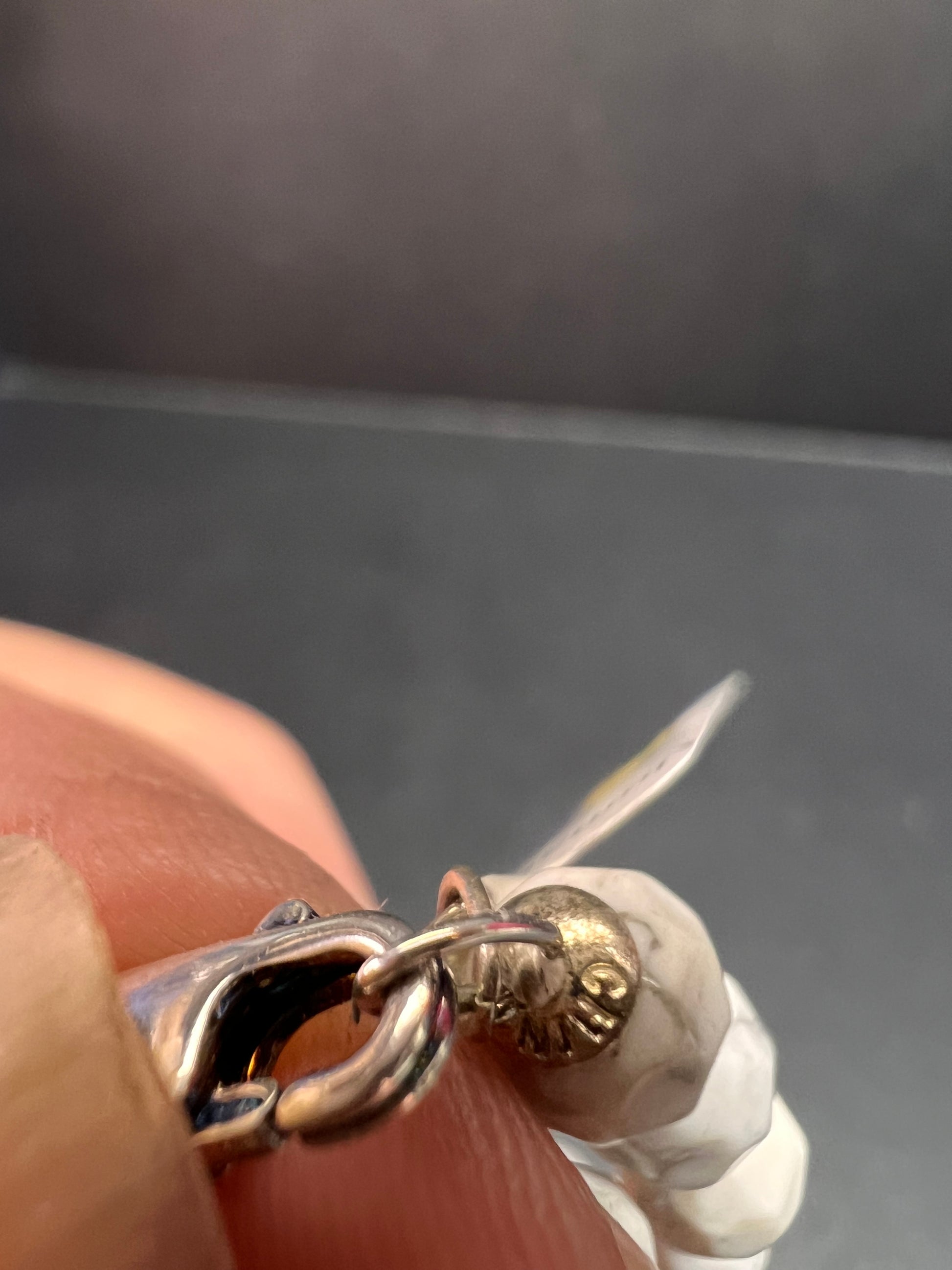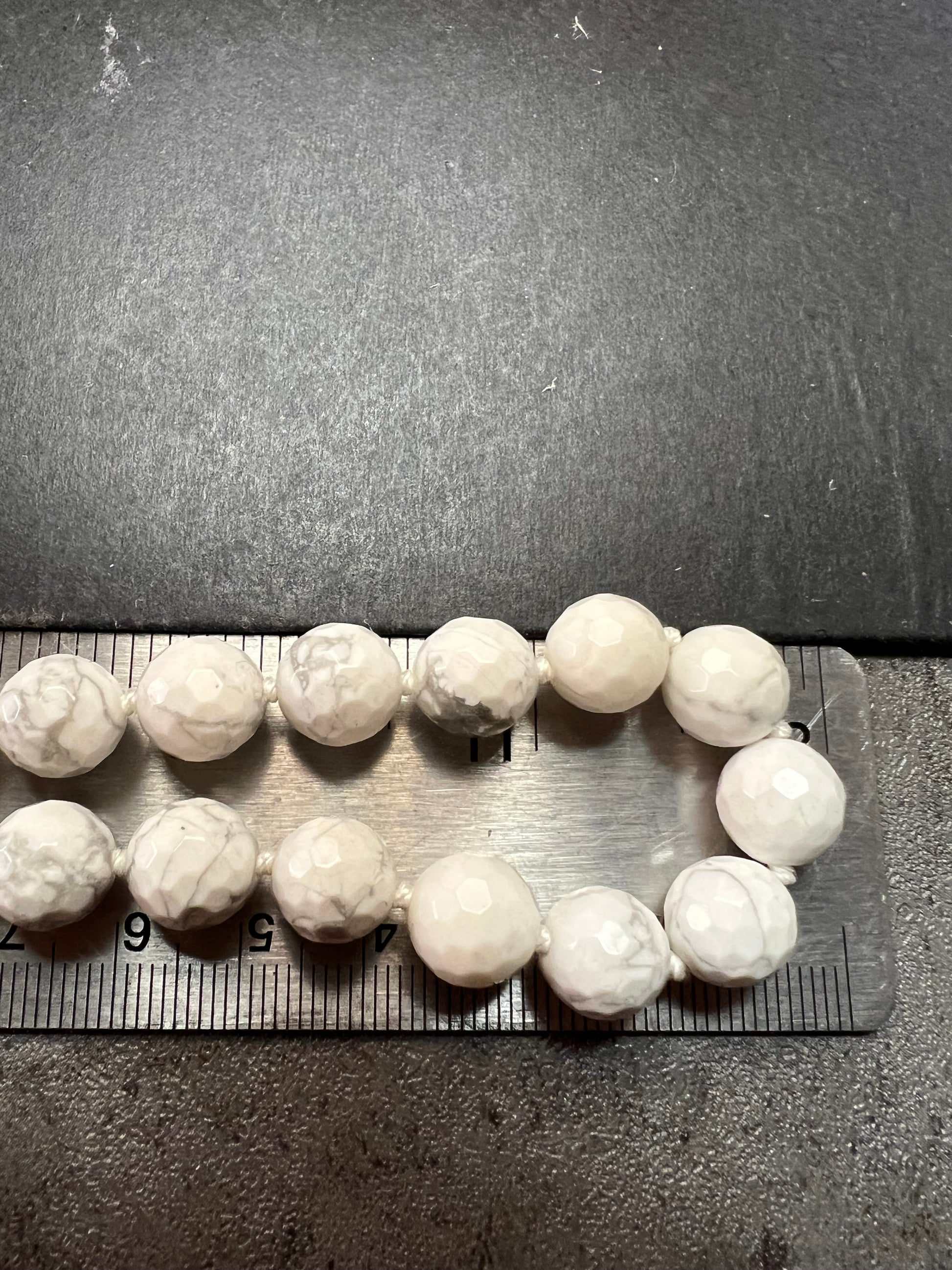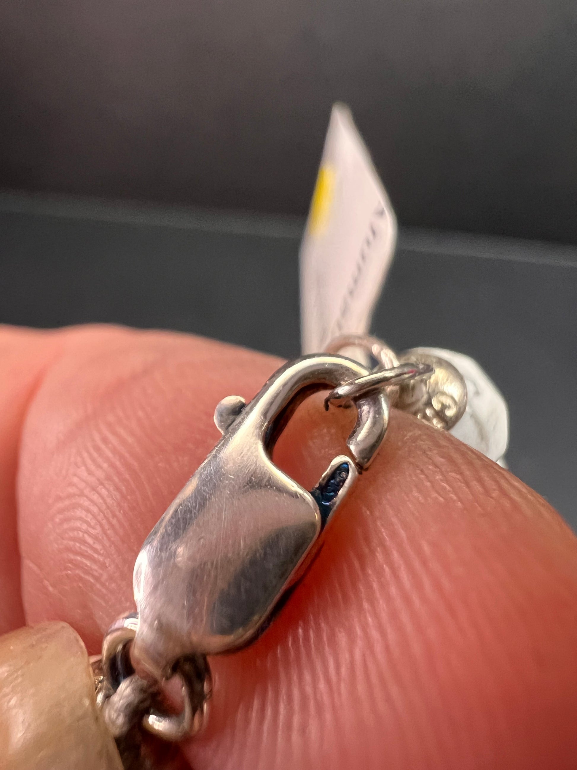 Genuine howlite rounded faceted beads graduated from about 3-9mm strung on knotted white cord. Measures about 24 inches in length with a 925 sterling silver lobster clasp and Anthology brand tag. AlumaUSA. I believe Anthology is a Nordstrom brand.