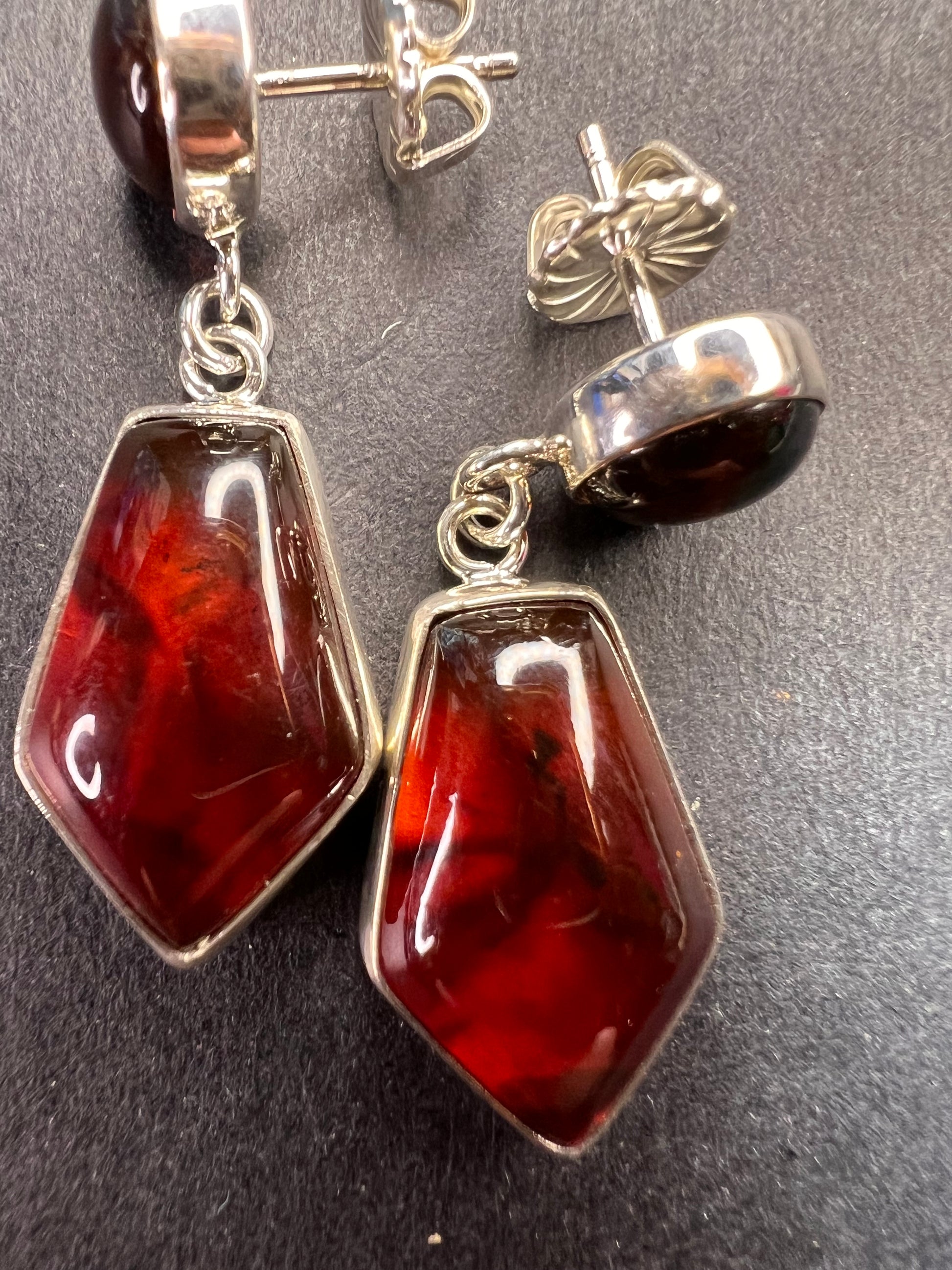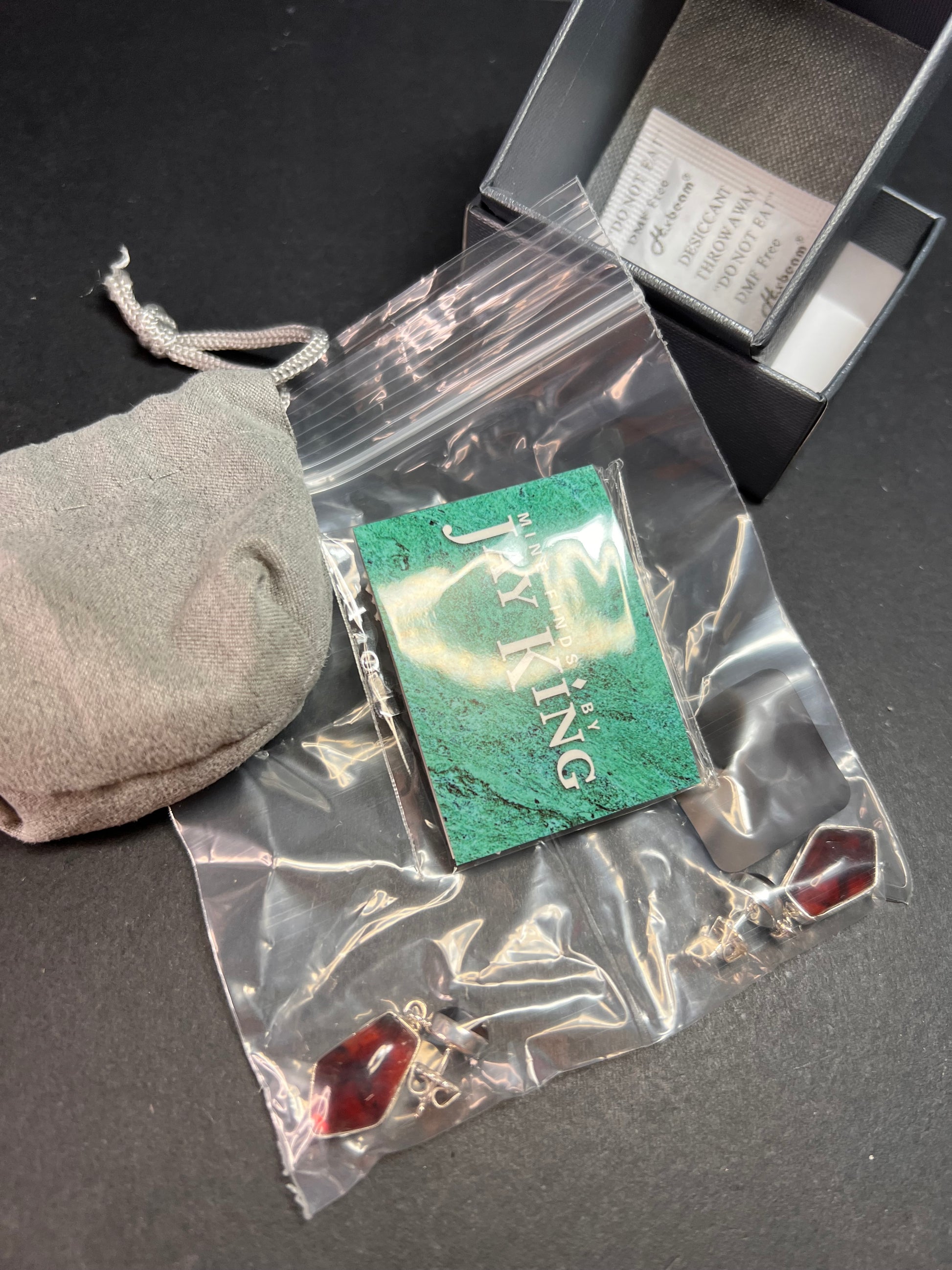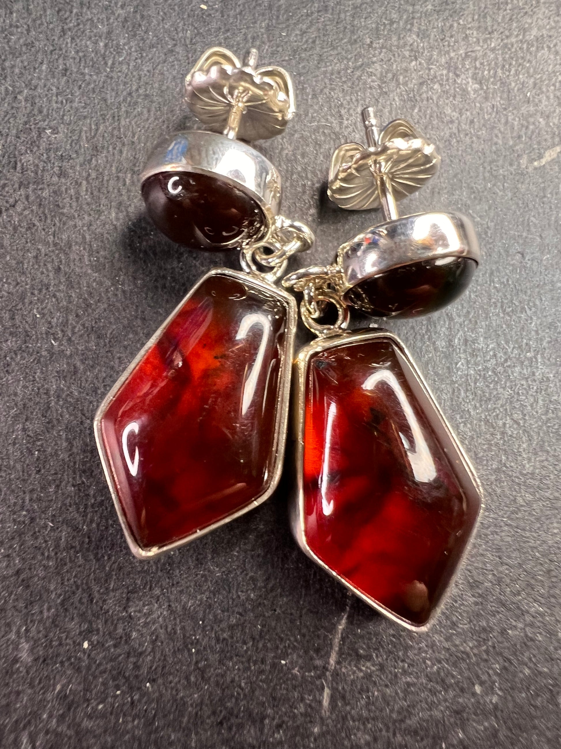 Genuine cognac amber from Poland set in authentic 925 sterling silver by Jay King designer. Likely for HSN. 925 stamp on posts. Not signed.