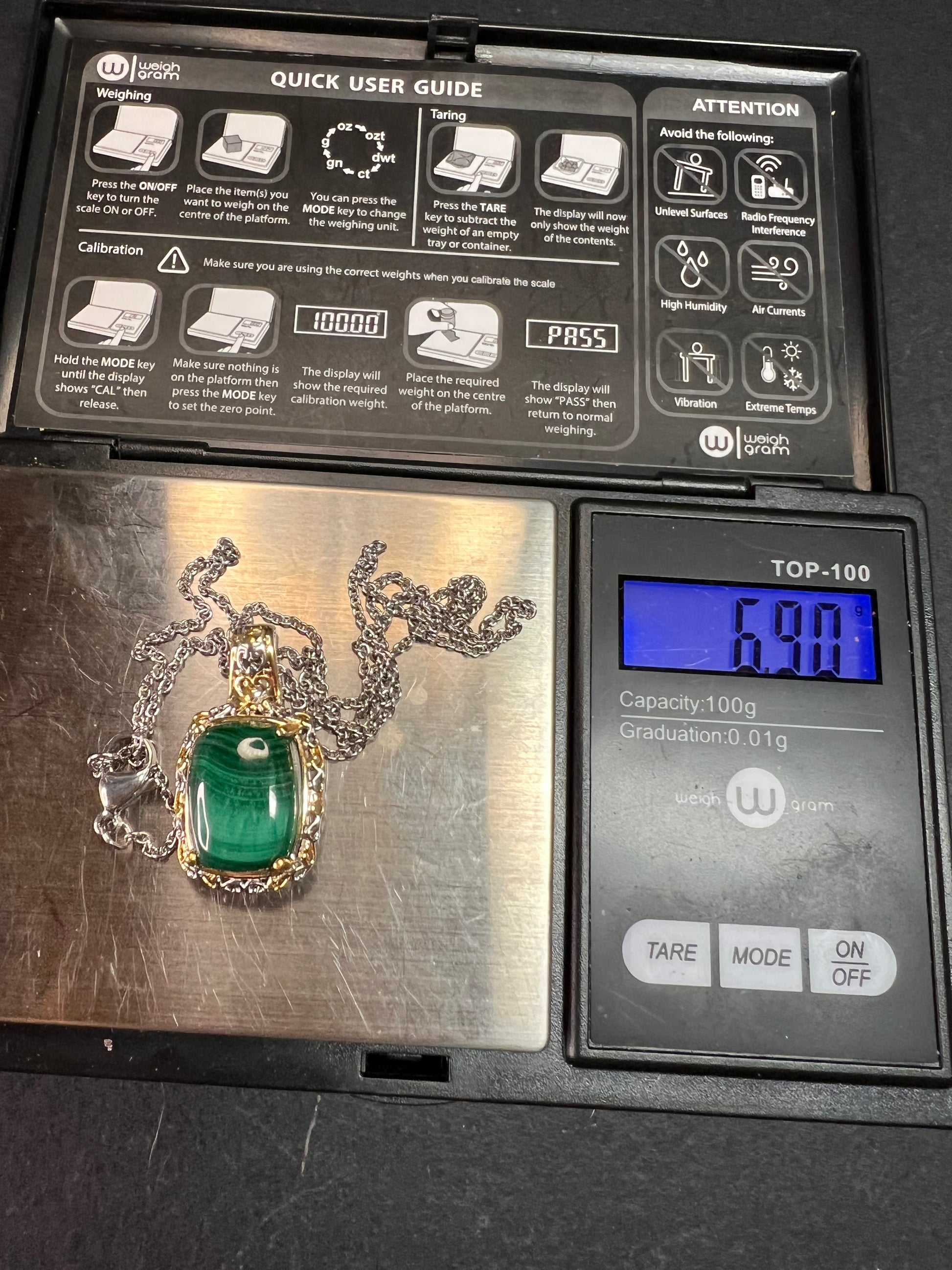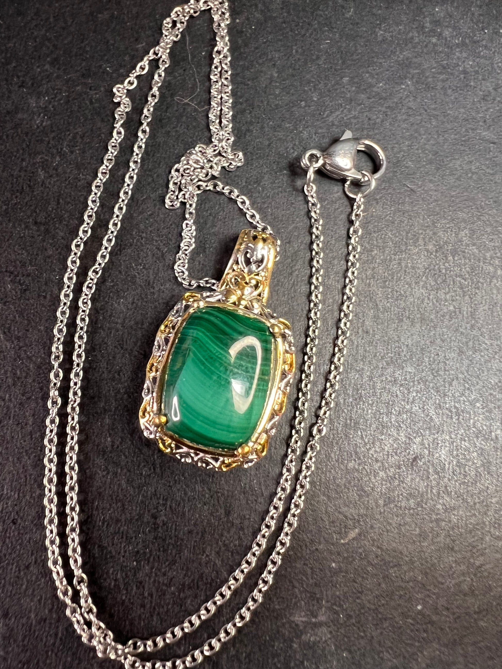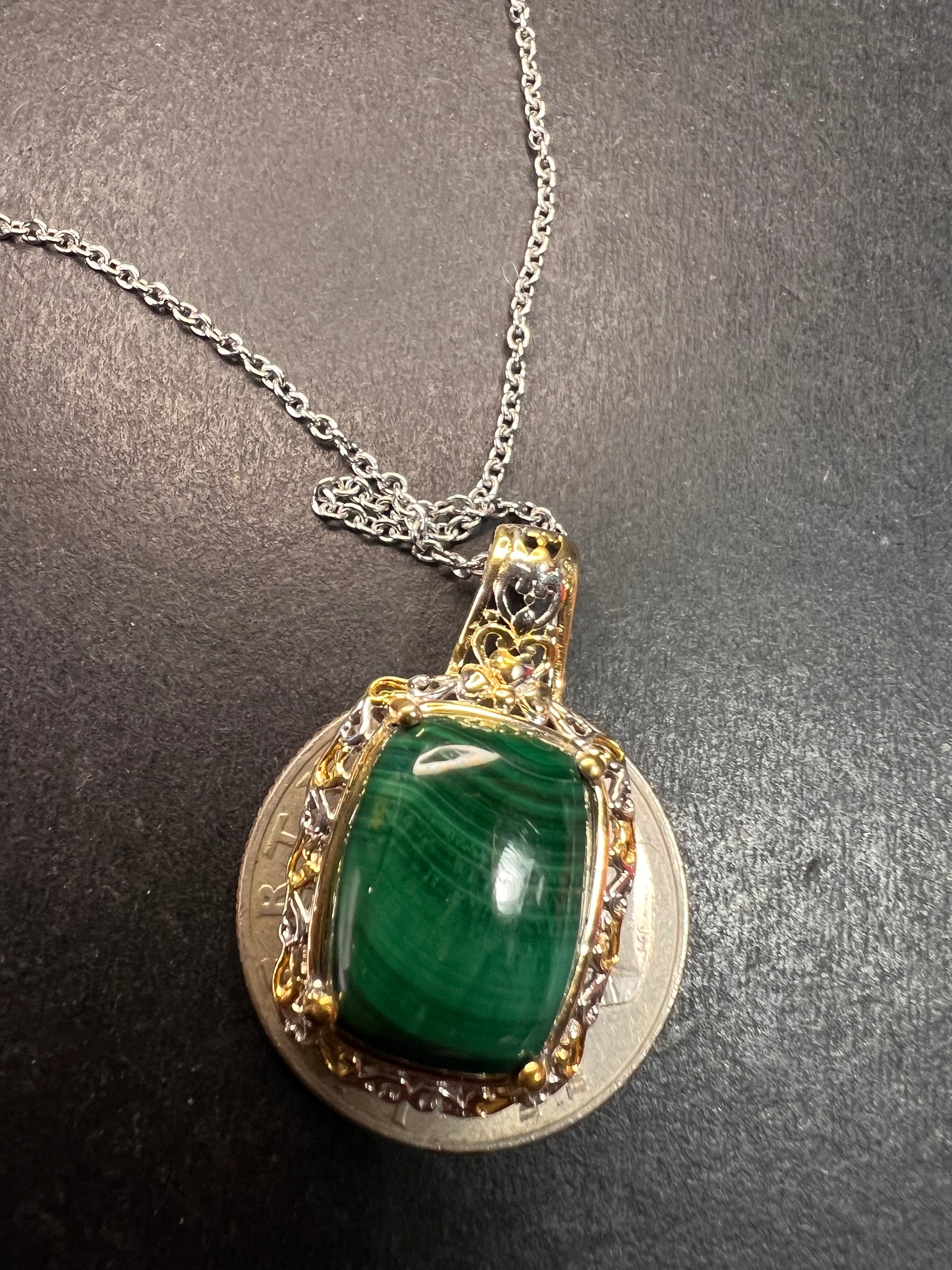 New Karis Platinum & 18K Gold Plated Malachite Pendant Necklace 20”