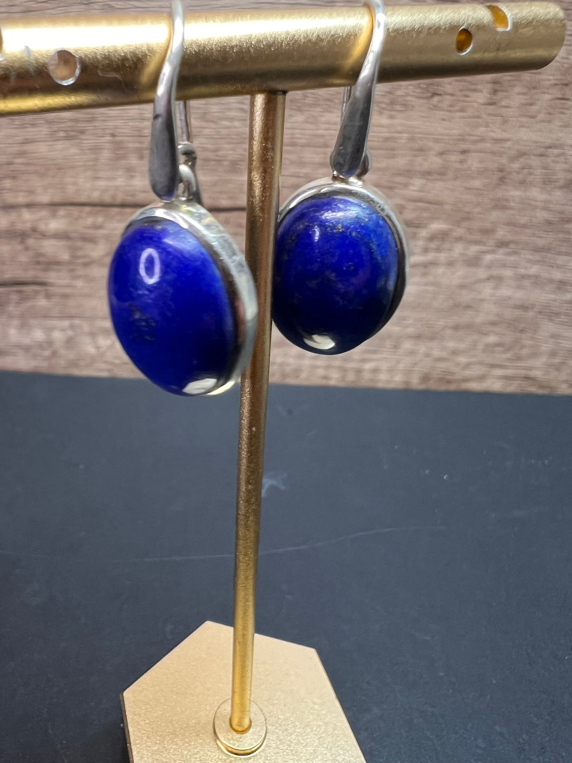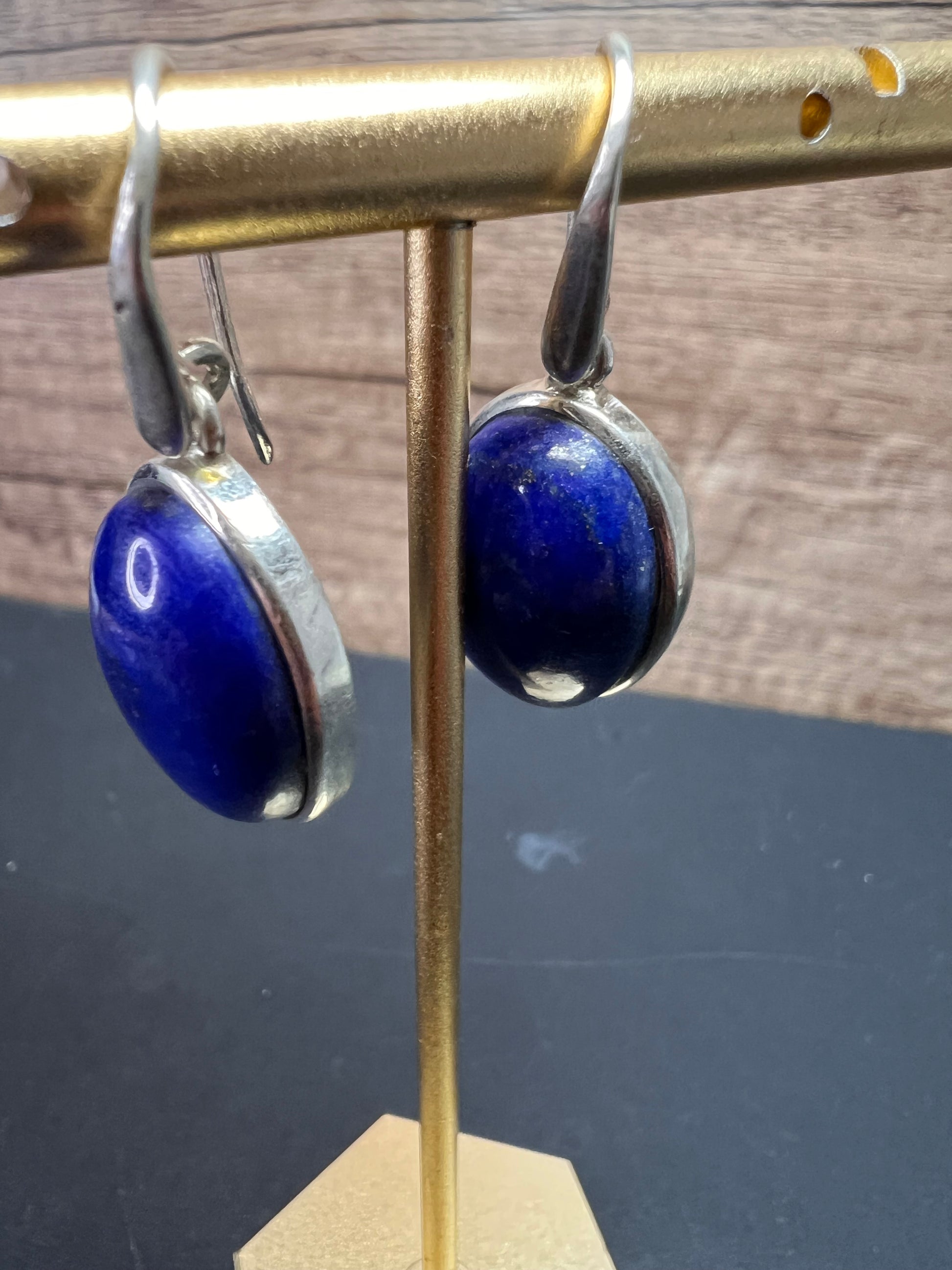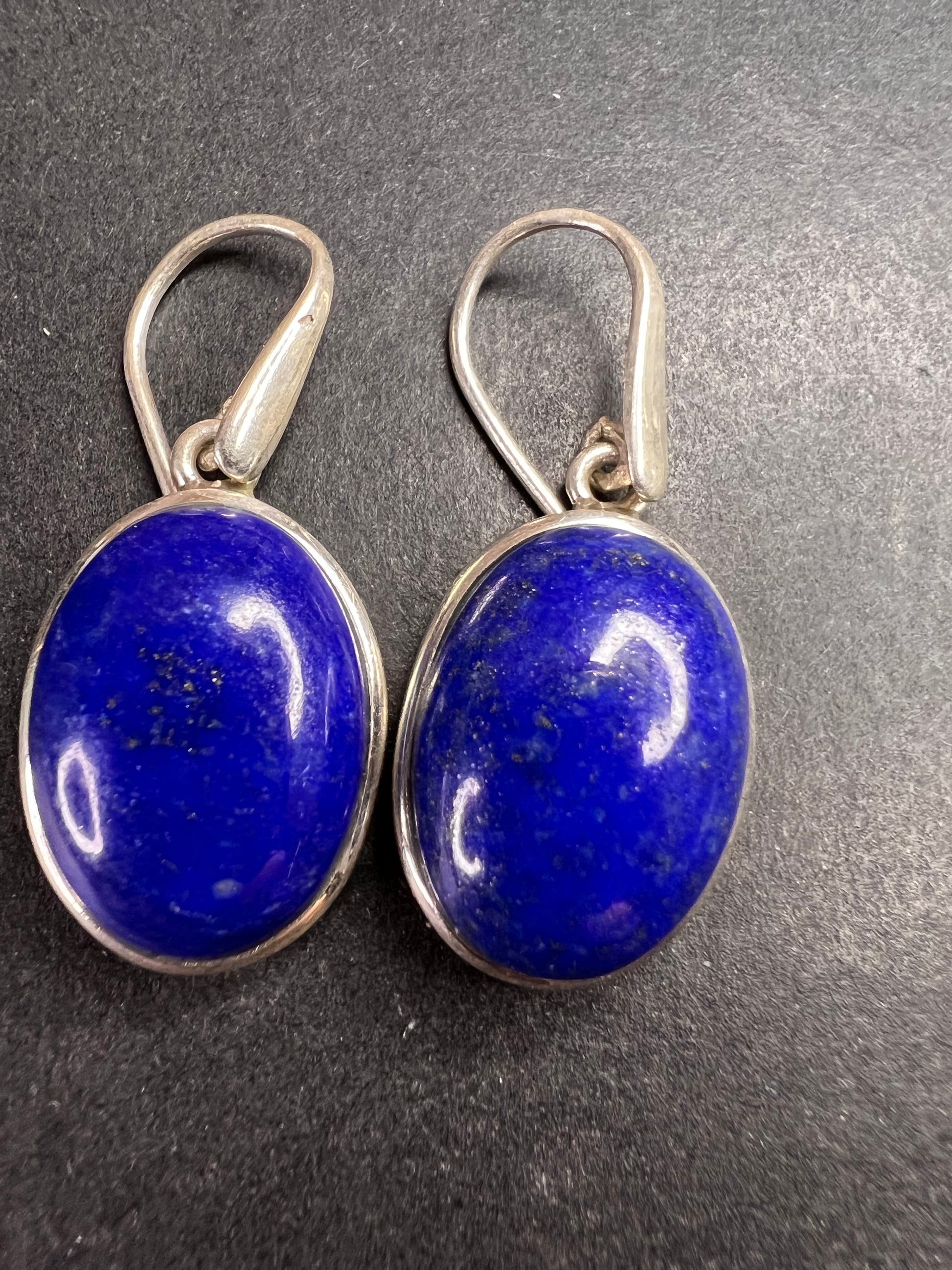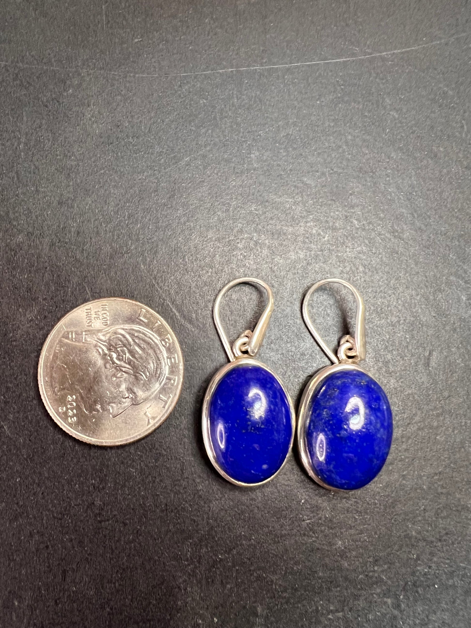 Genuine lapis lazuli oval cabochons set in authentic 925 sterling silver. Total weight is 8.83 grams. Measurements in photos.
