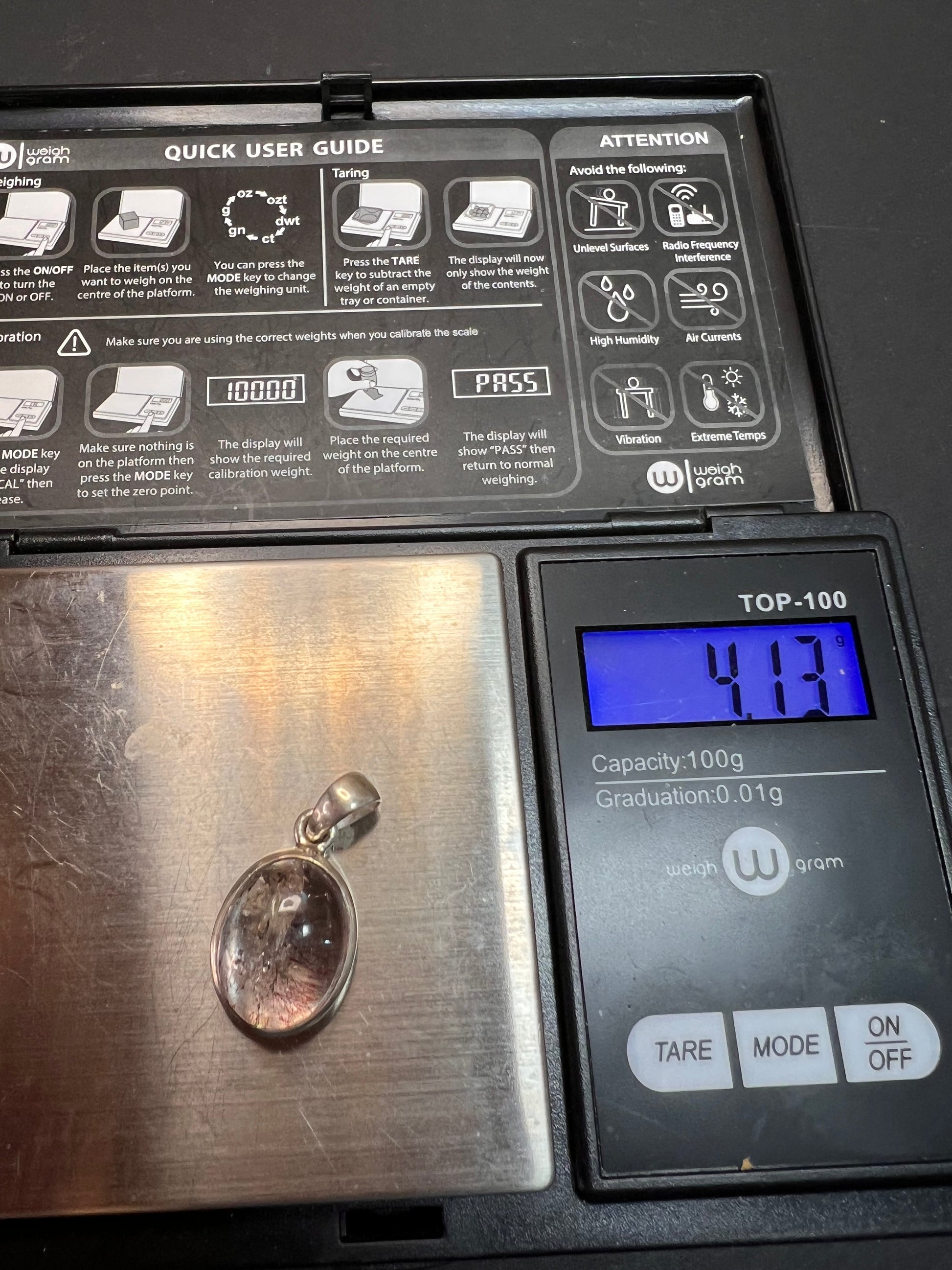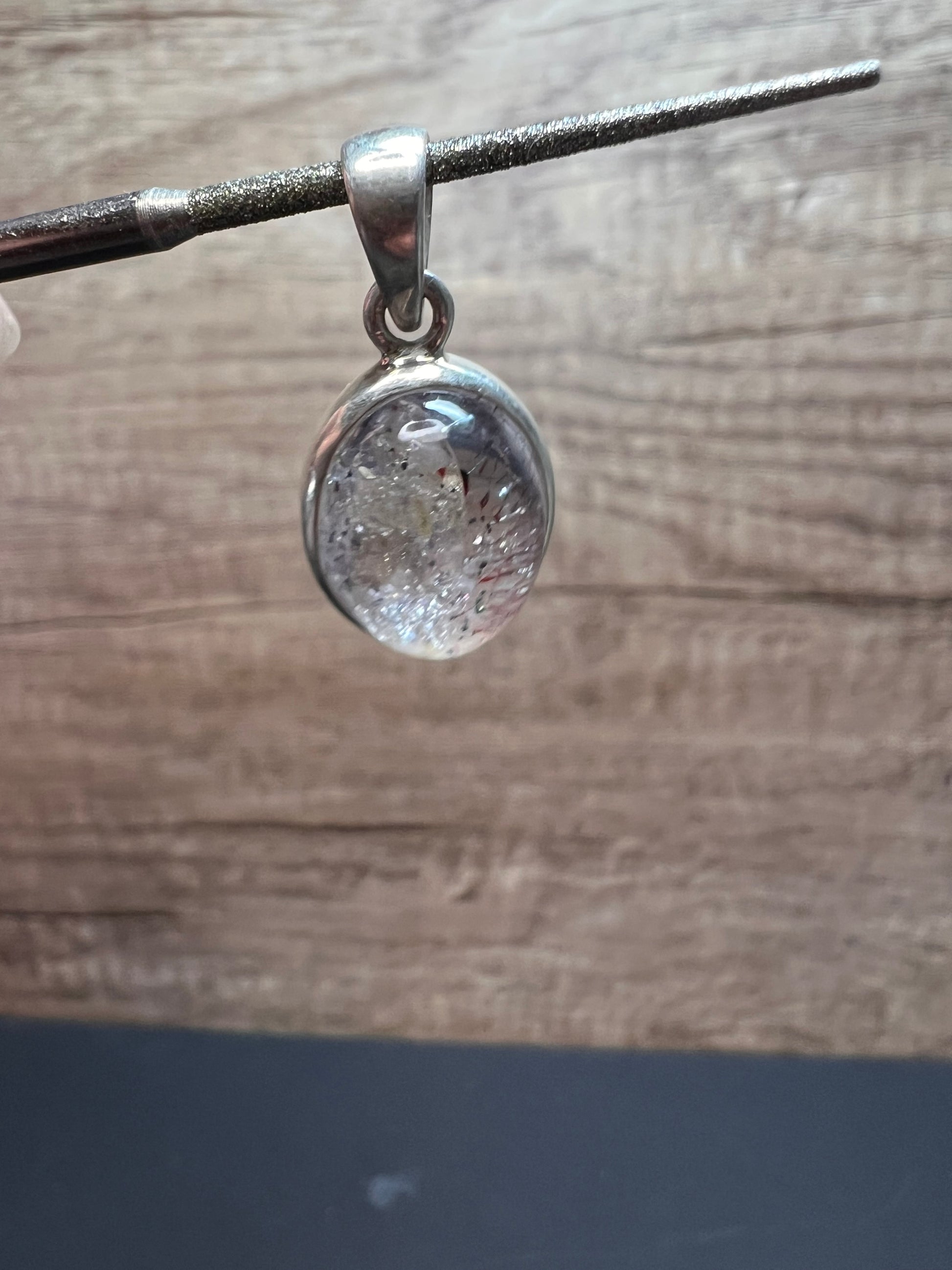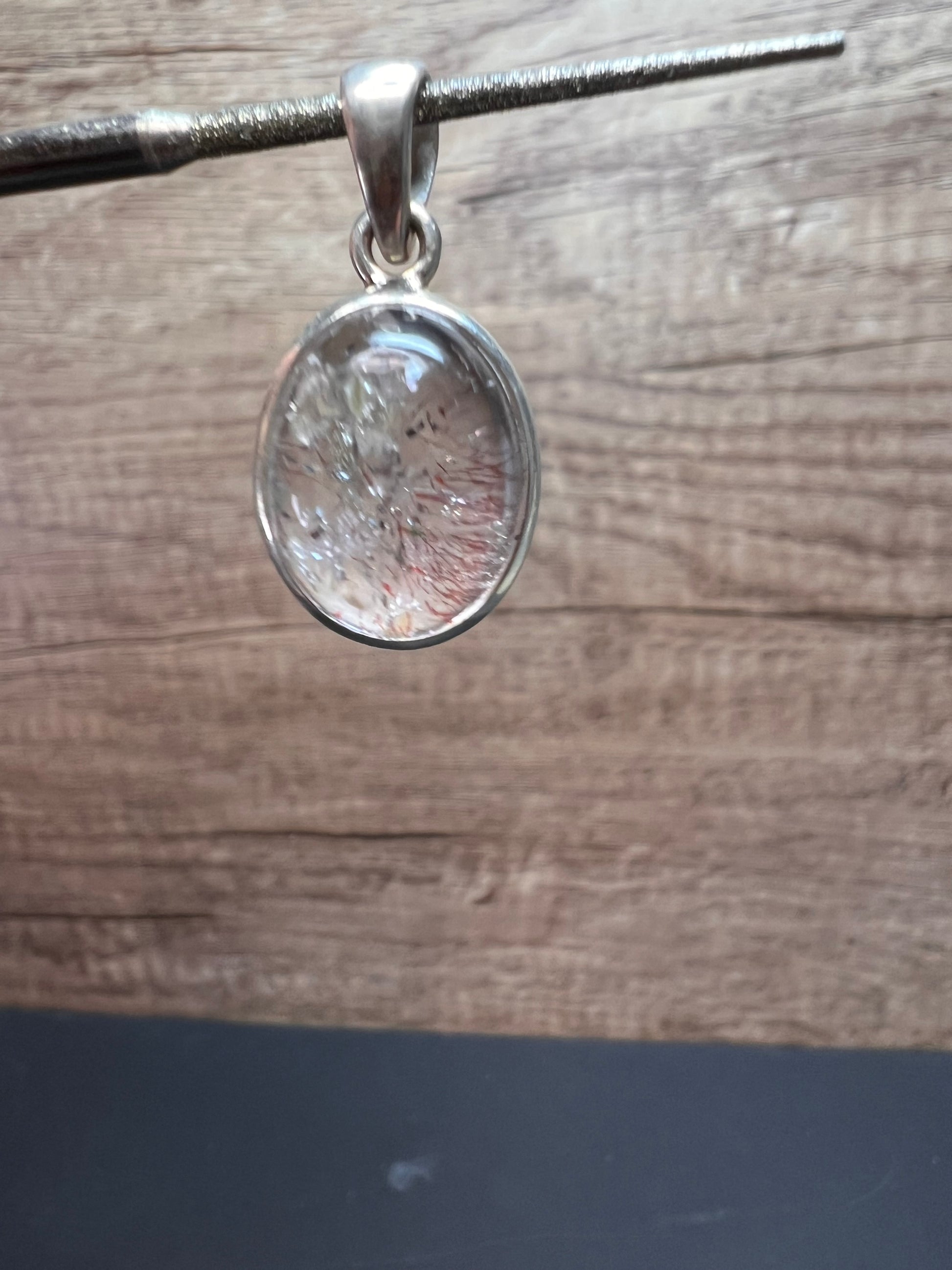 Lepidocrocite oval cabochon set in authentic 925 sterling silver. Total weight is 4.13 grams. Measurements in photos. This is for the pendant only. Chain not included. Lepidocrocite is one of the 7 elements found in super 7 stone , also known as Melody Stone. Sometimes these names are used interchangeably or even referred to as strawberry quartz sometimes. Pendant stones of this quality are usually sold for much higher.