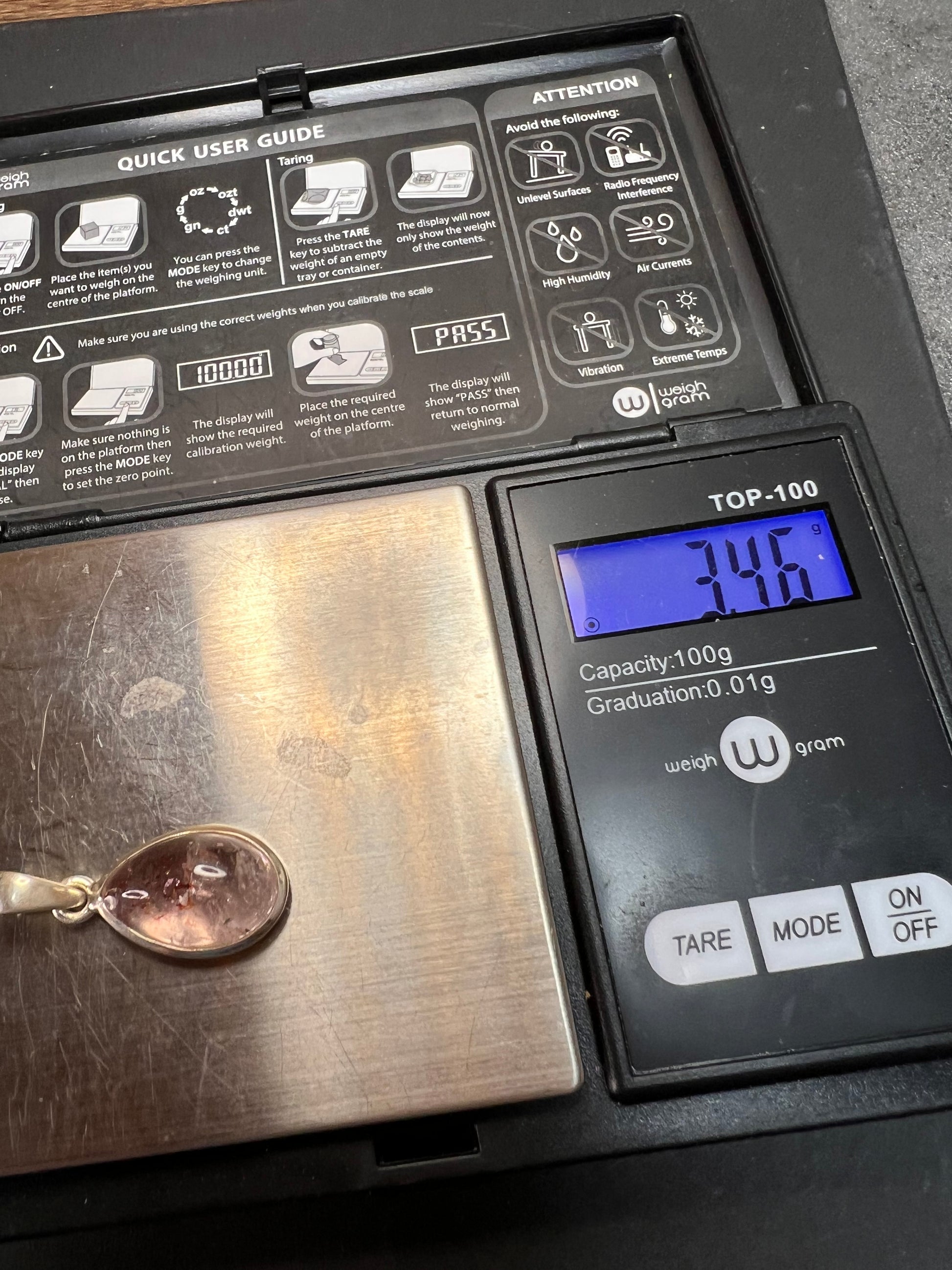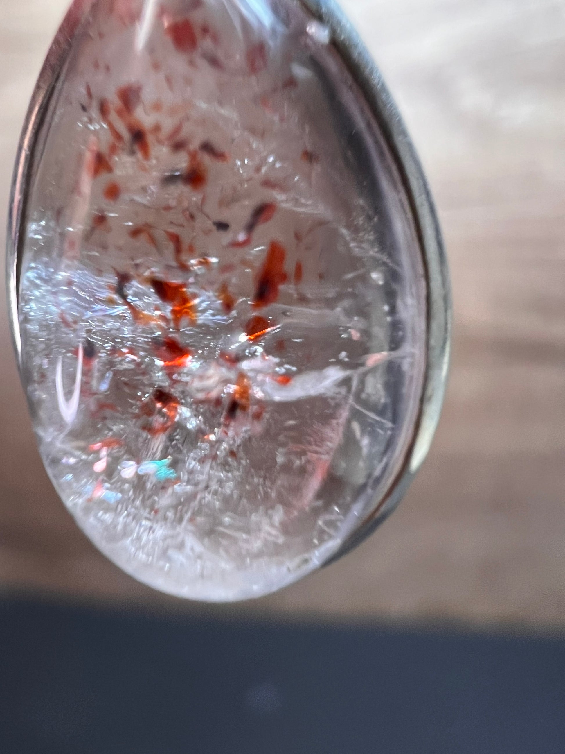 Lepidocrocite teardrop cabochon set in authentic 925 sterling silver. Total weight is 3.46 grams. Measurements in photos. This is for the pendant only. Chain not included. Lepidocrocite is one of the 7 elements found in super 7 stone , also known as Melody Stone. Sometimes these names are used interchangeably or even referred to as strawberry quartz sometimes. Pendant stones of this quality are usually sold for much higher.