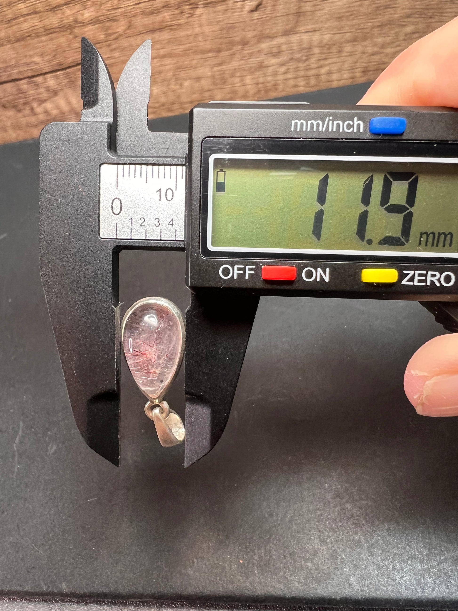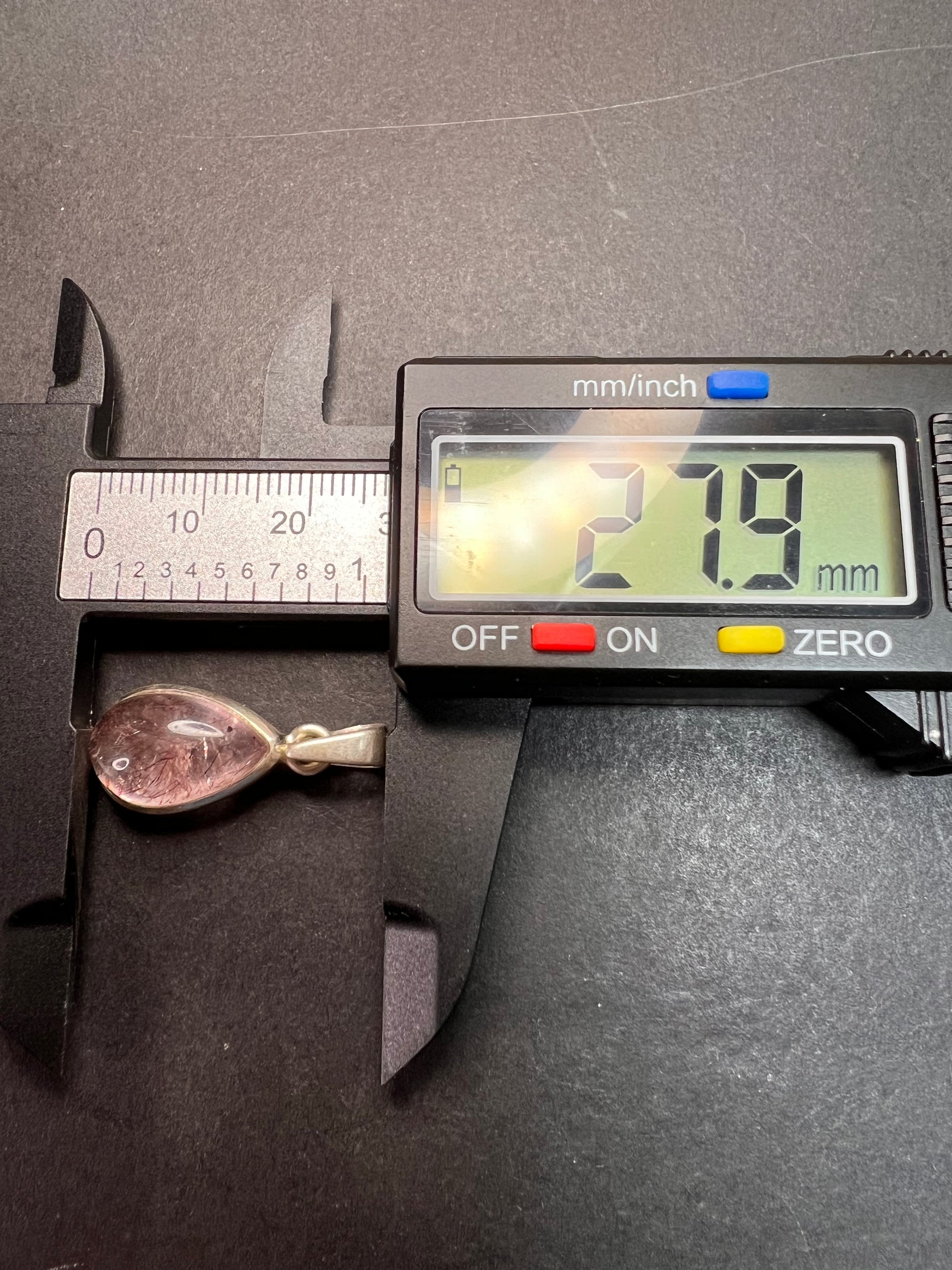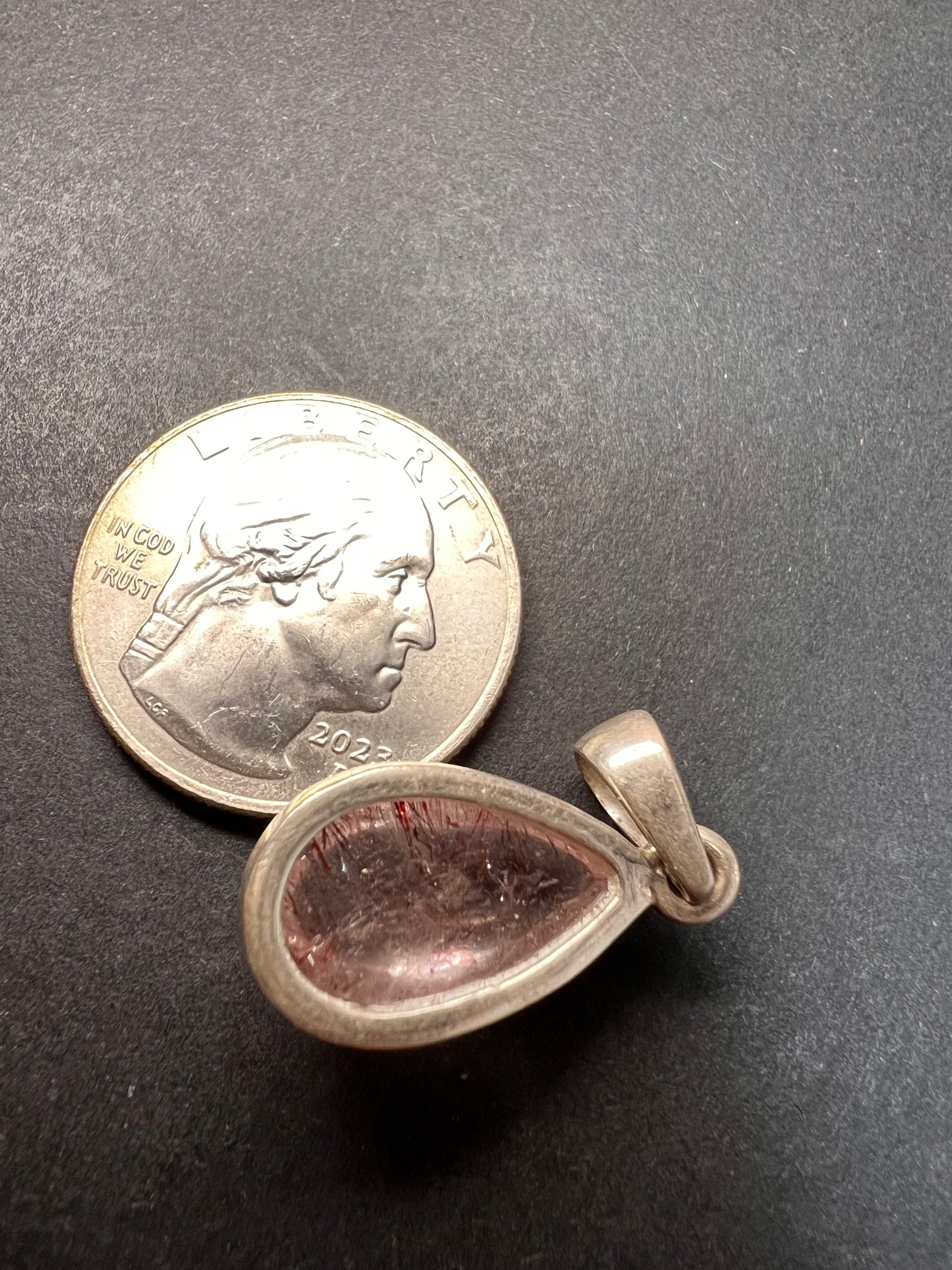 Lepidocrocite/ super 7 teardrop cabochon set in authentic 925 sterling silver. Total weight is 3.56 grams. Measurements in photos. This is for the pendant only. Chain not included. Lepidocrocite is one of the 7 elements found in super 7 stone , also known as Melody Stone. Sometimes these names are used interchangeably or even referred to as strawberry quartz sometimes. Pendant stones of this quality are usually sold for much higher.