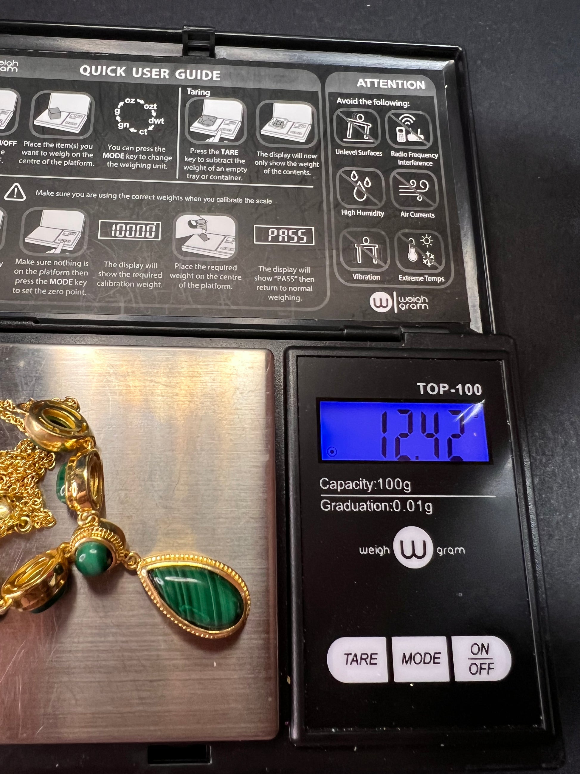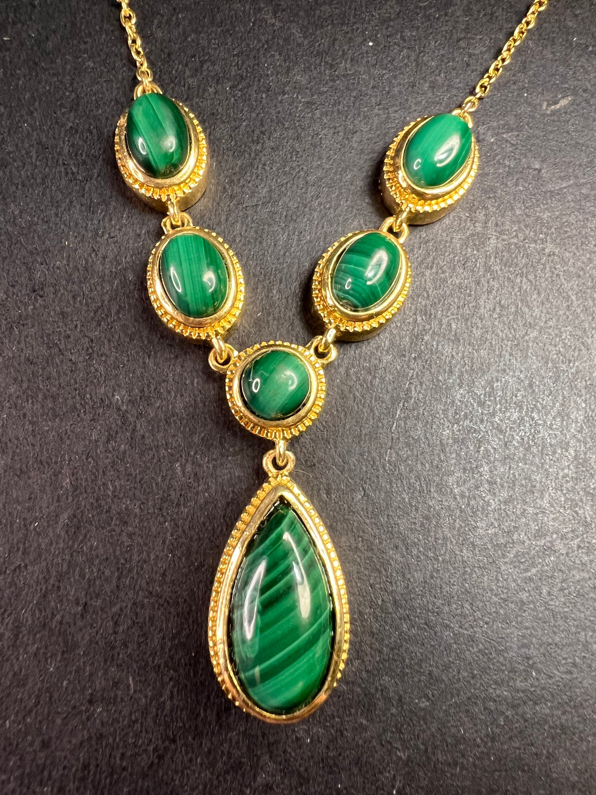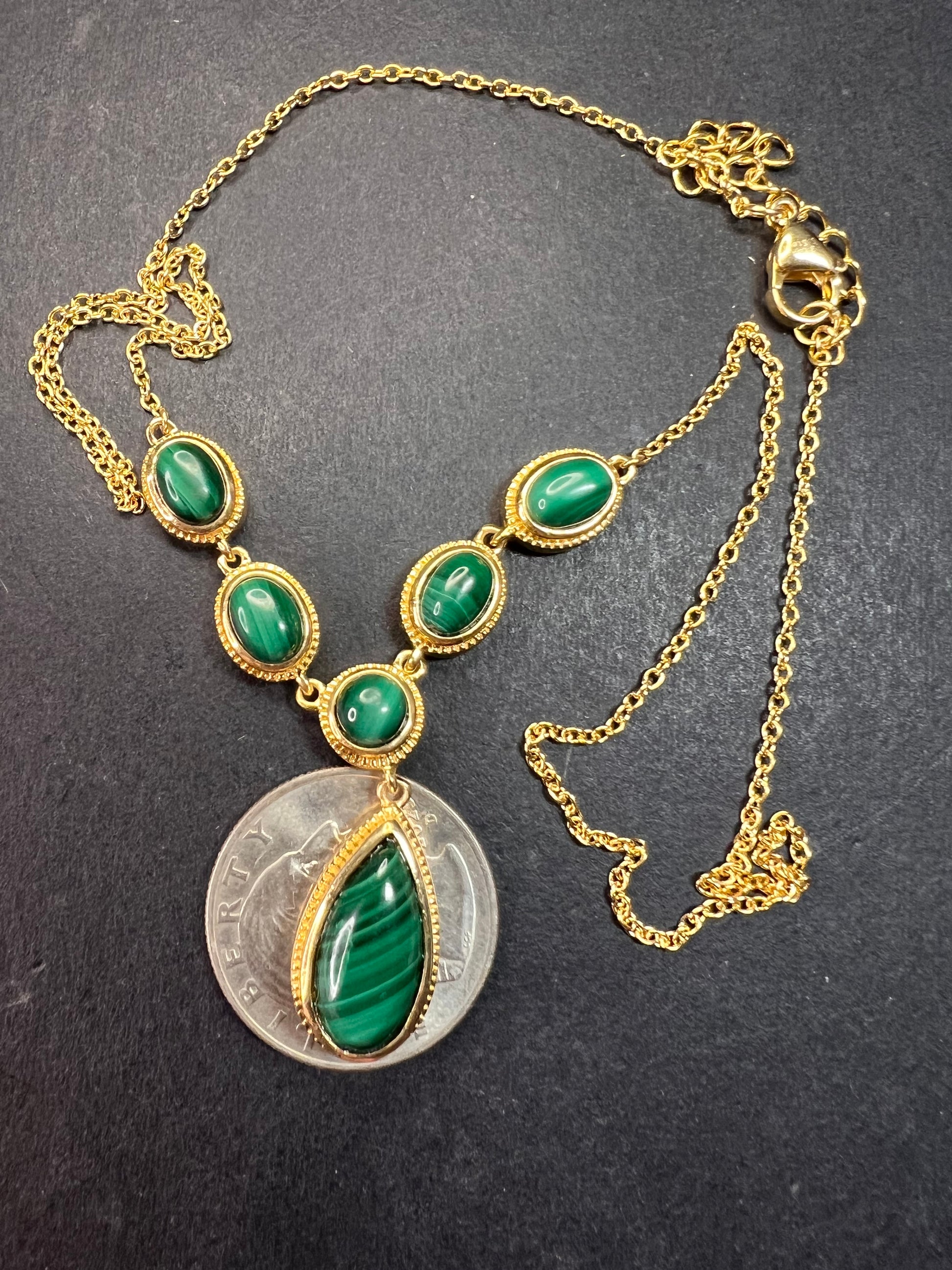 NEW Malachite necklace in yellow gold over brass 18-22inch