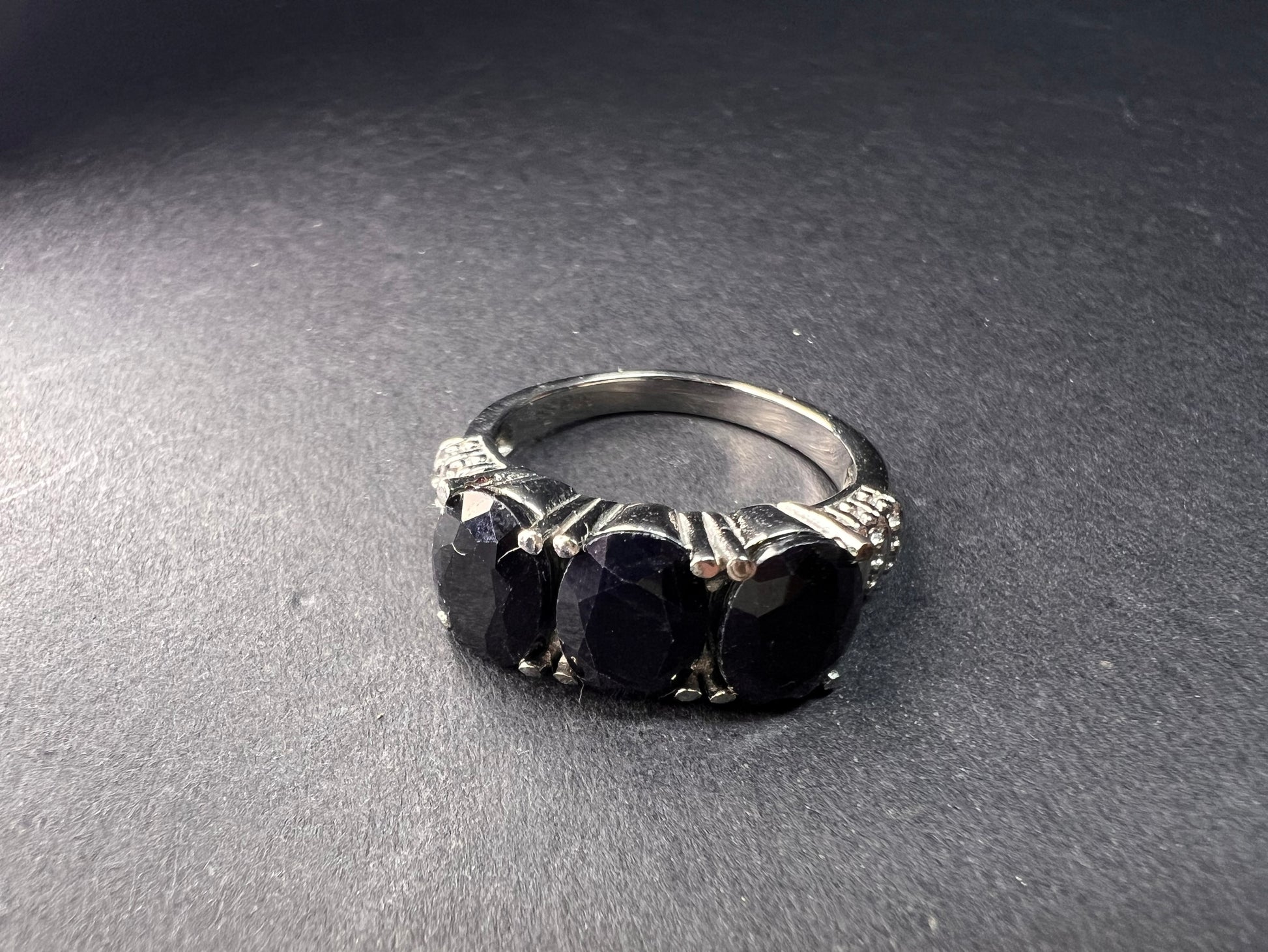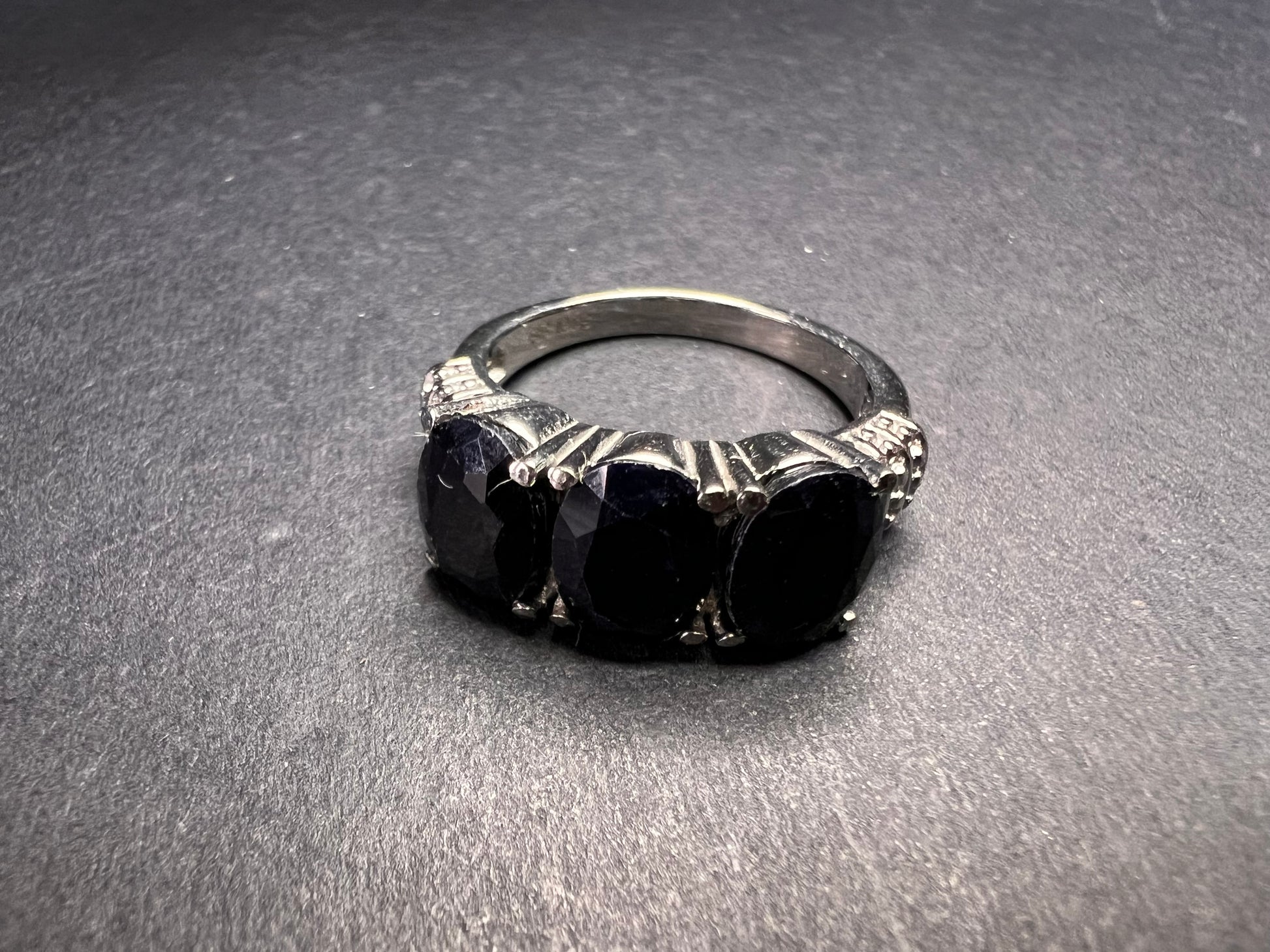 NEW midnight sapphire three stone ring in stainless steel size 7