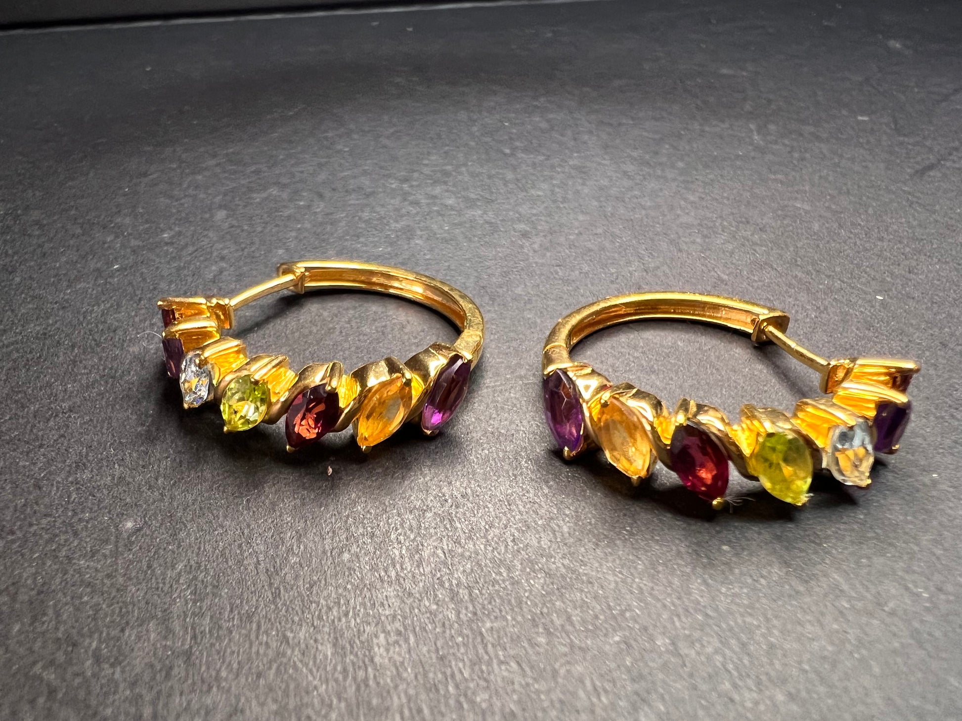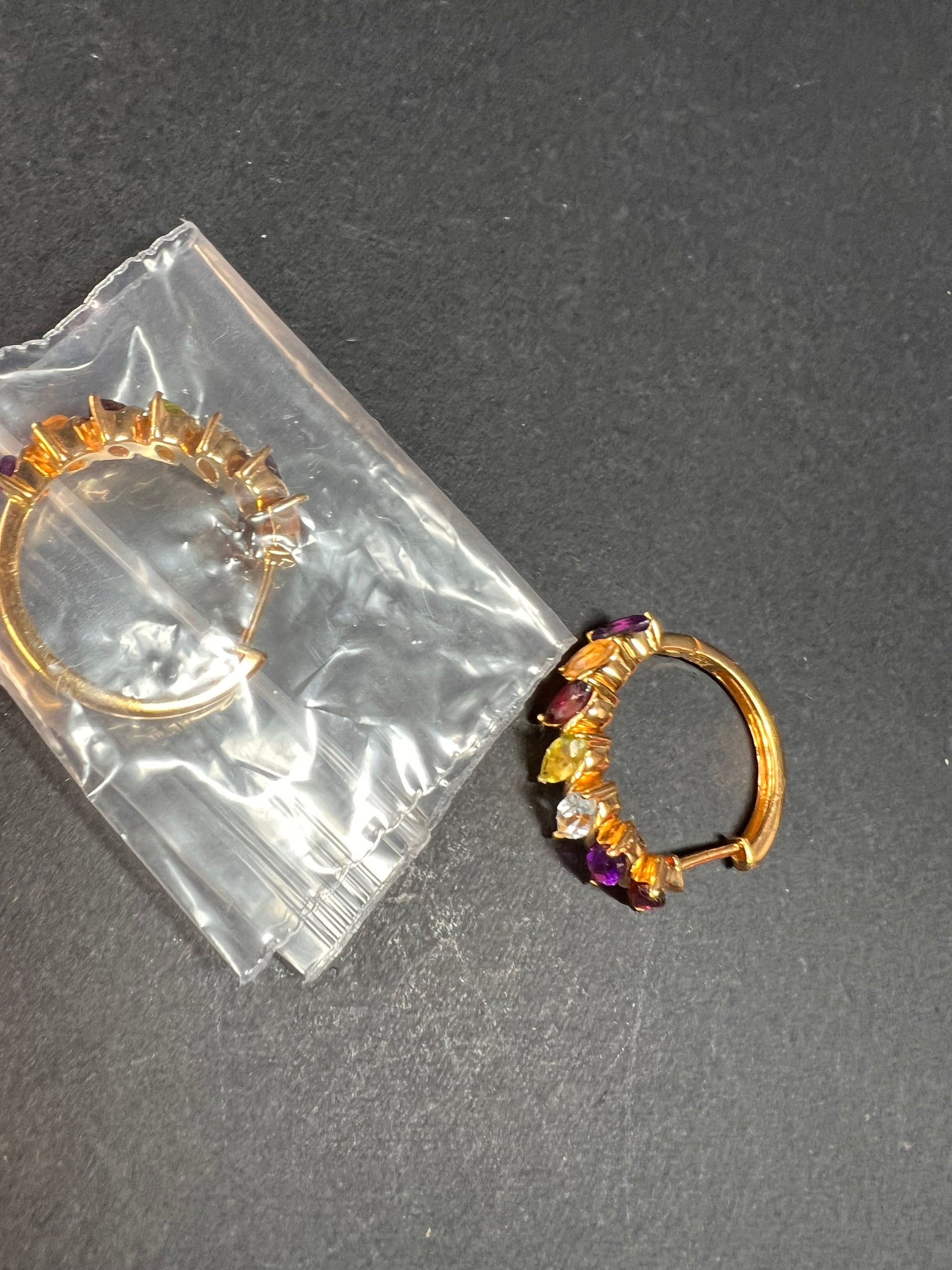 NEW multi gemstone hoop earrings in vermeil gold over sterling silver