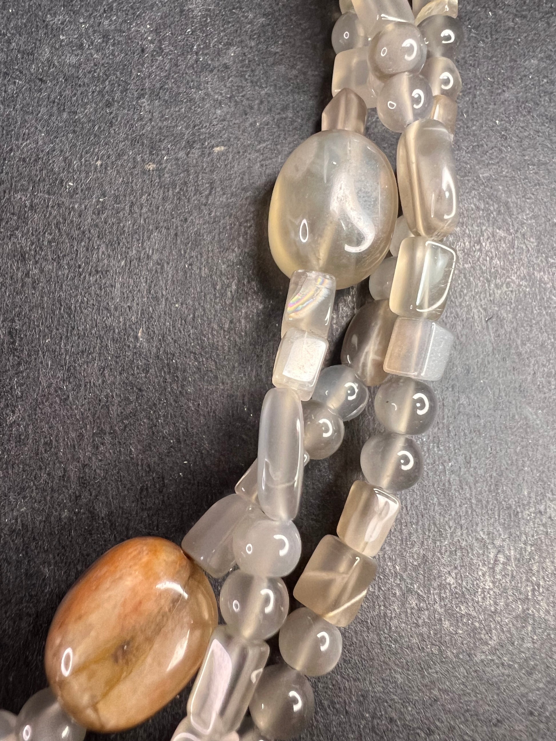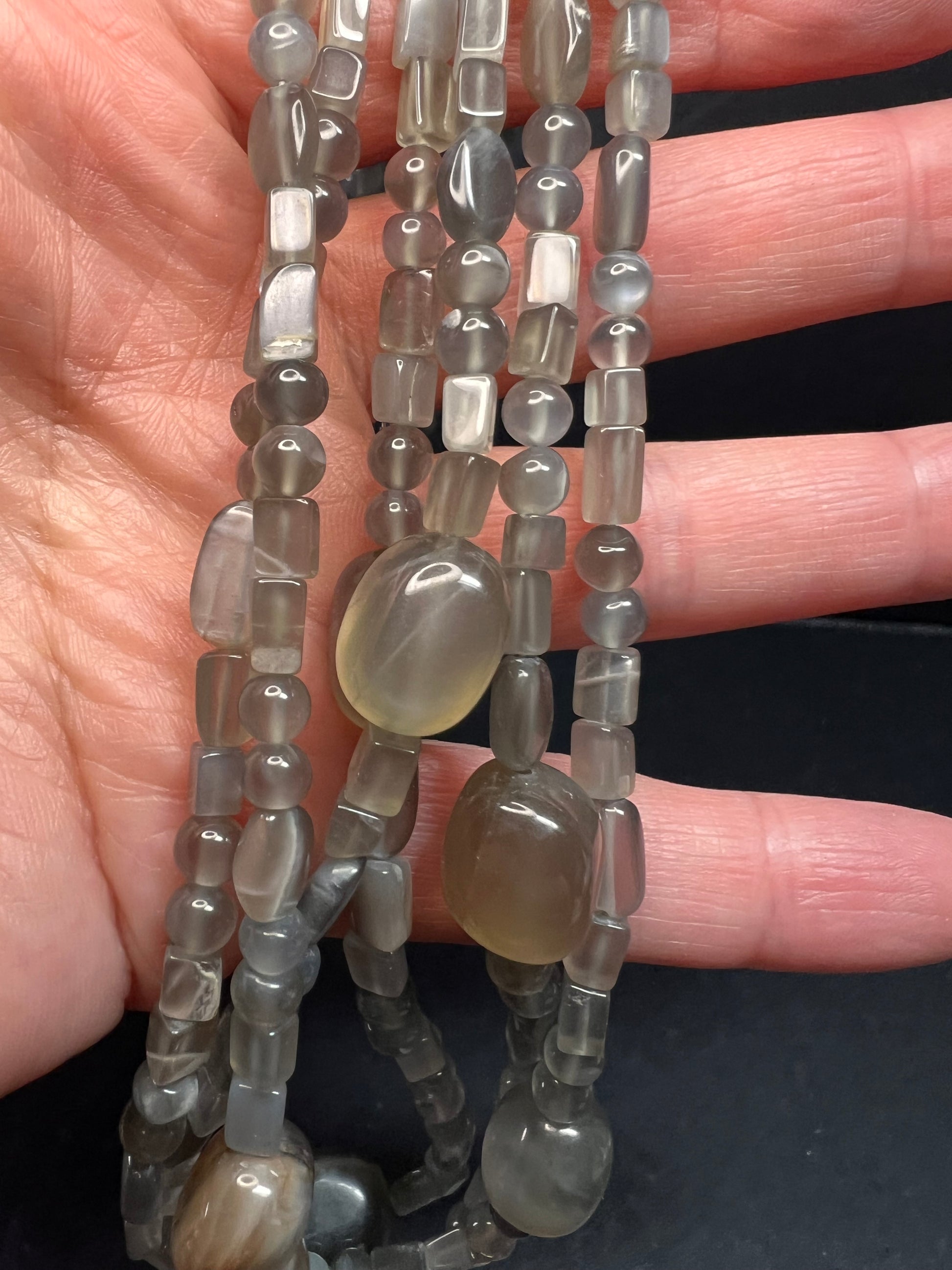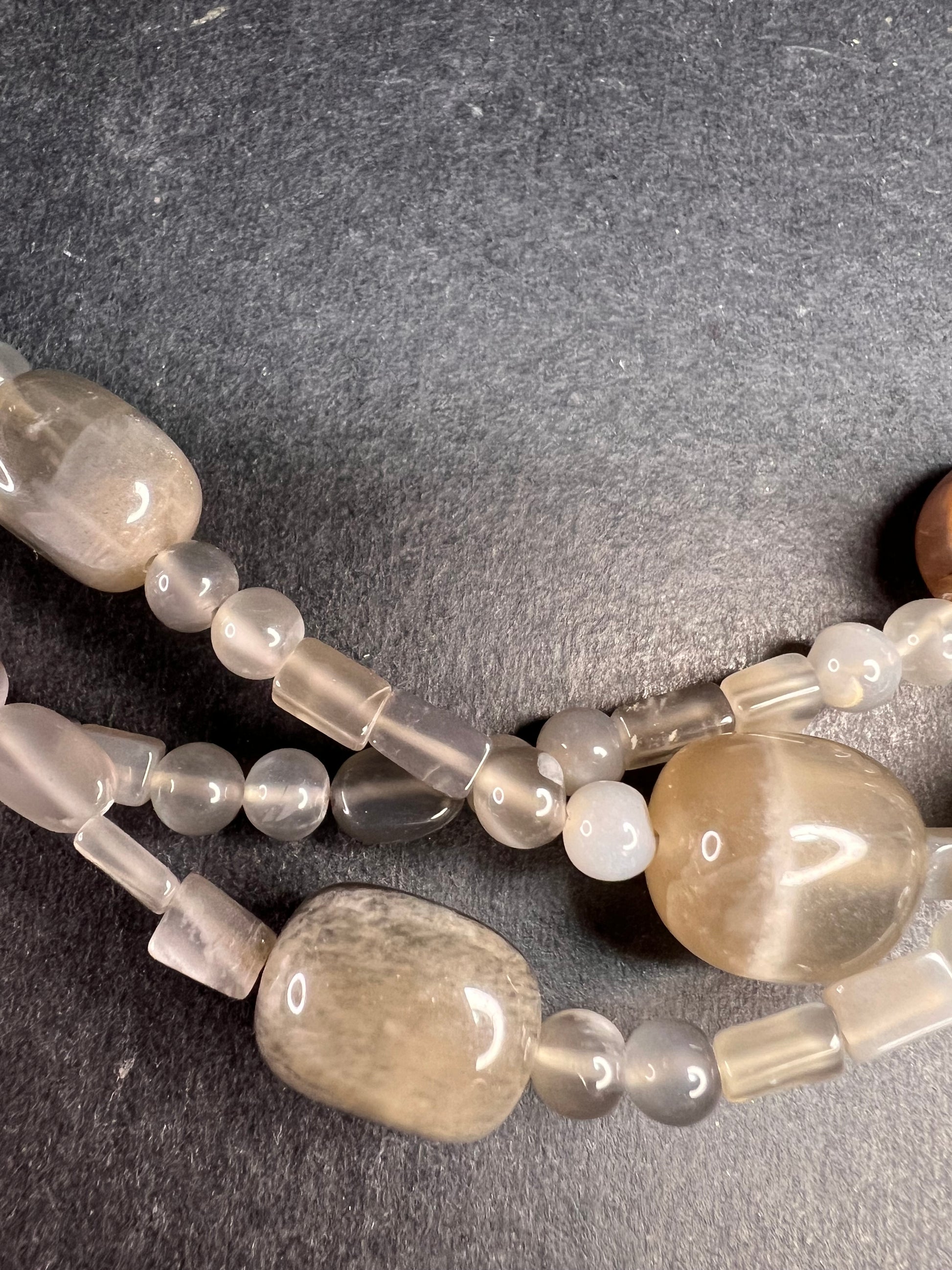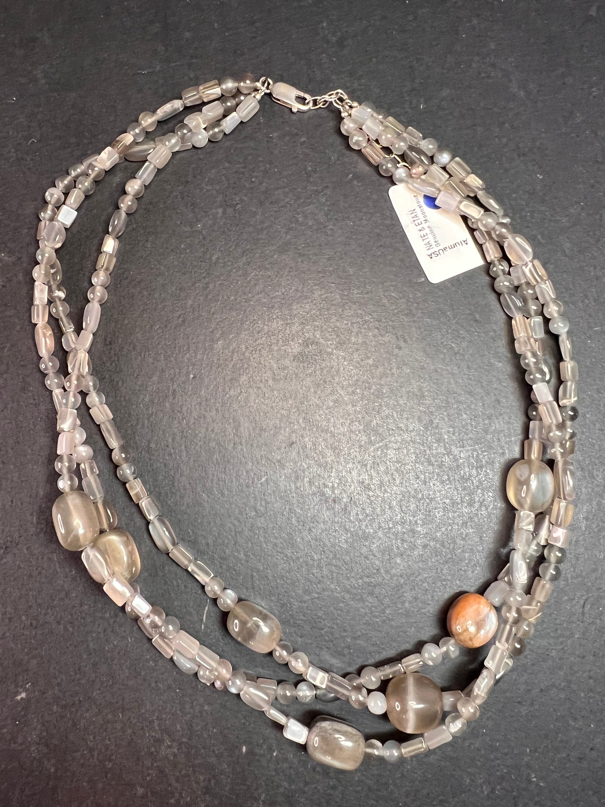 NEW Nate & Etan grey moonstone triple strand necklace with sterling silver clasp