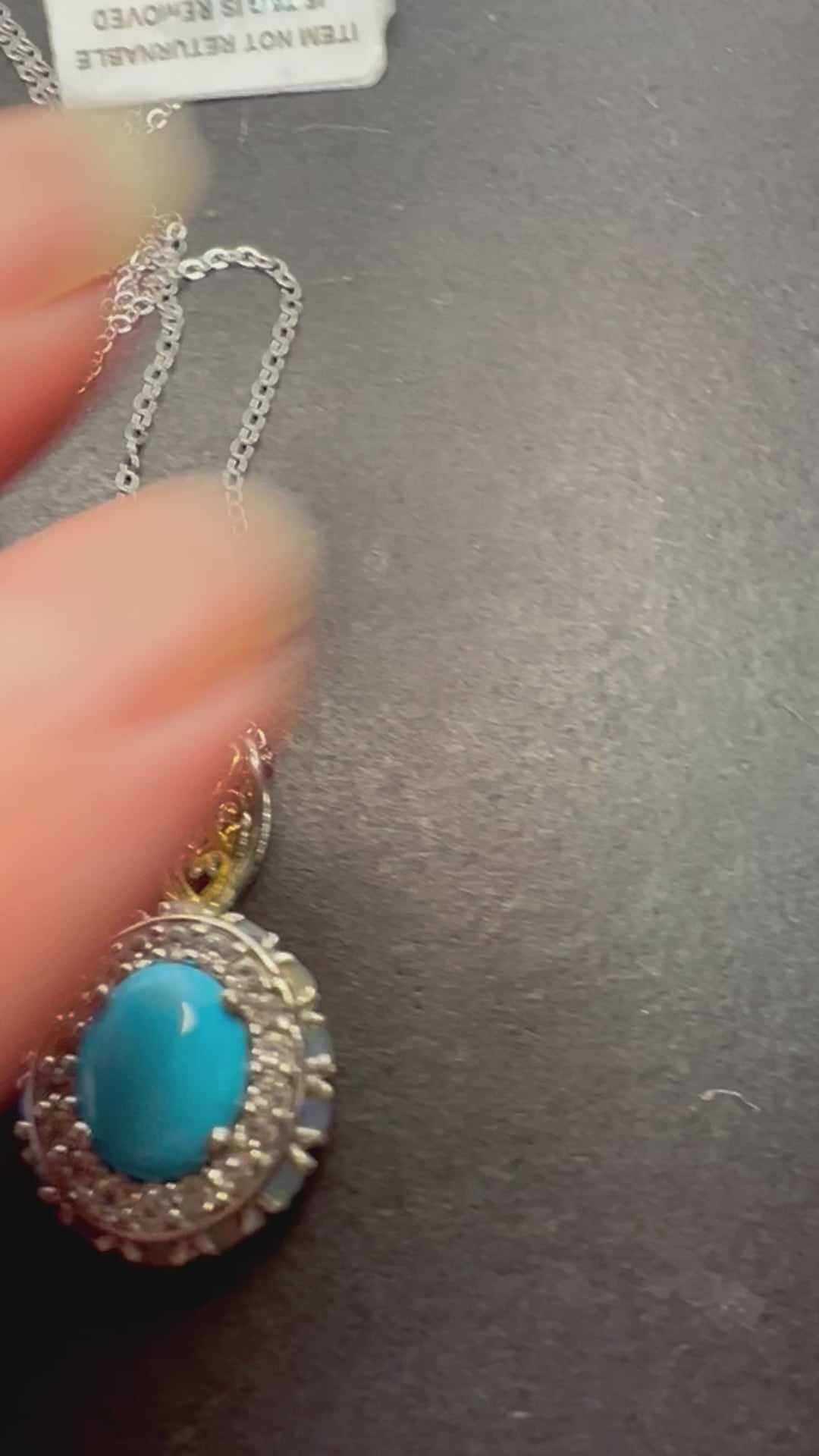 New Opal and sleeping beauty turquoise halo pendant and 20 inch chain necklace