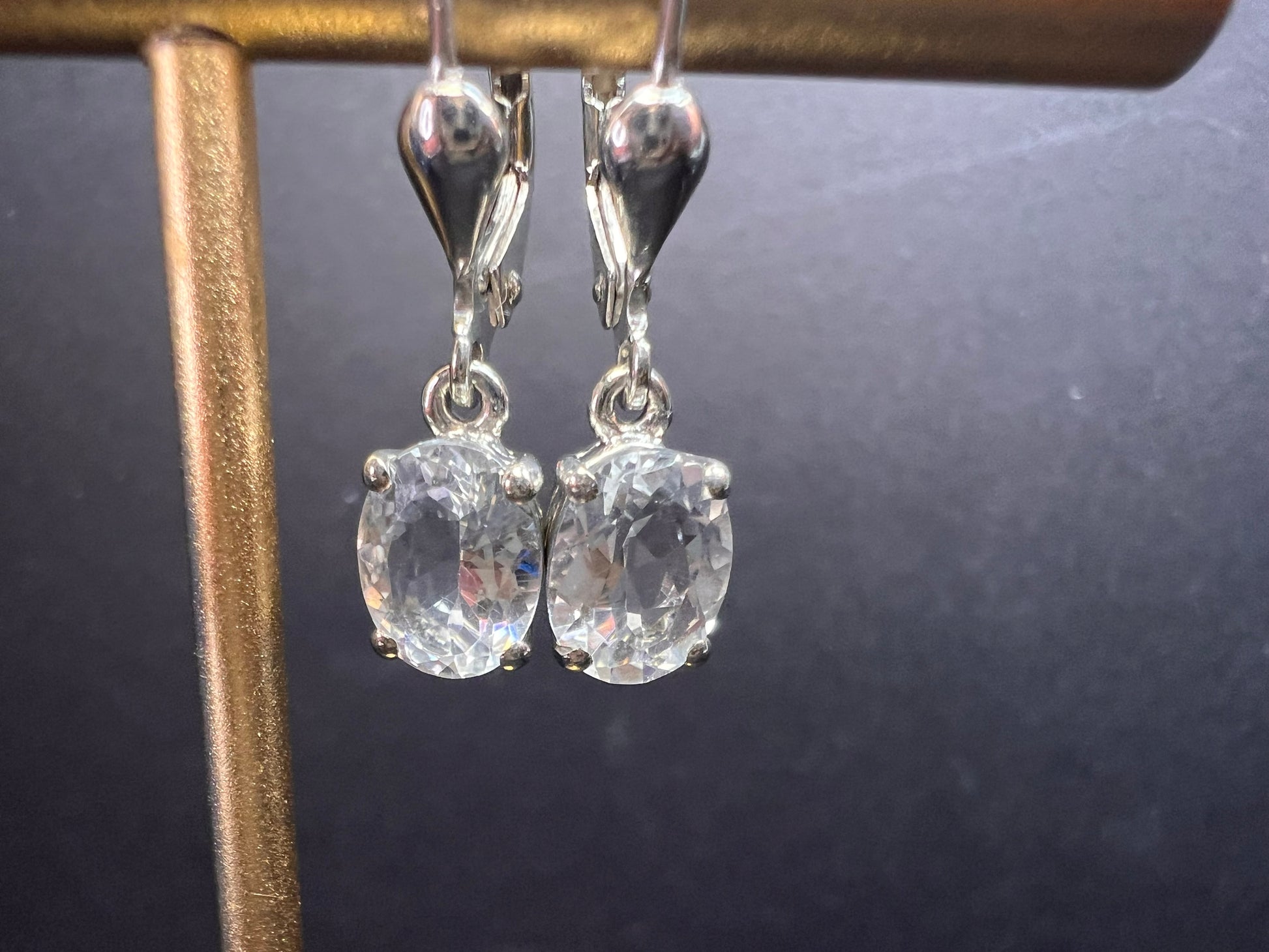Genuine oval cut petalite gemstones prong set in authentic 925 sterling silver plated with rhodium. Lever backs are also 925 sterling silver. Total weight is 2.00 grams. 2.75 ctw. Djoy. Made in India. Estimated retail value is $240.00