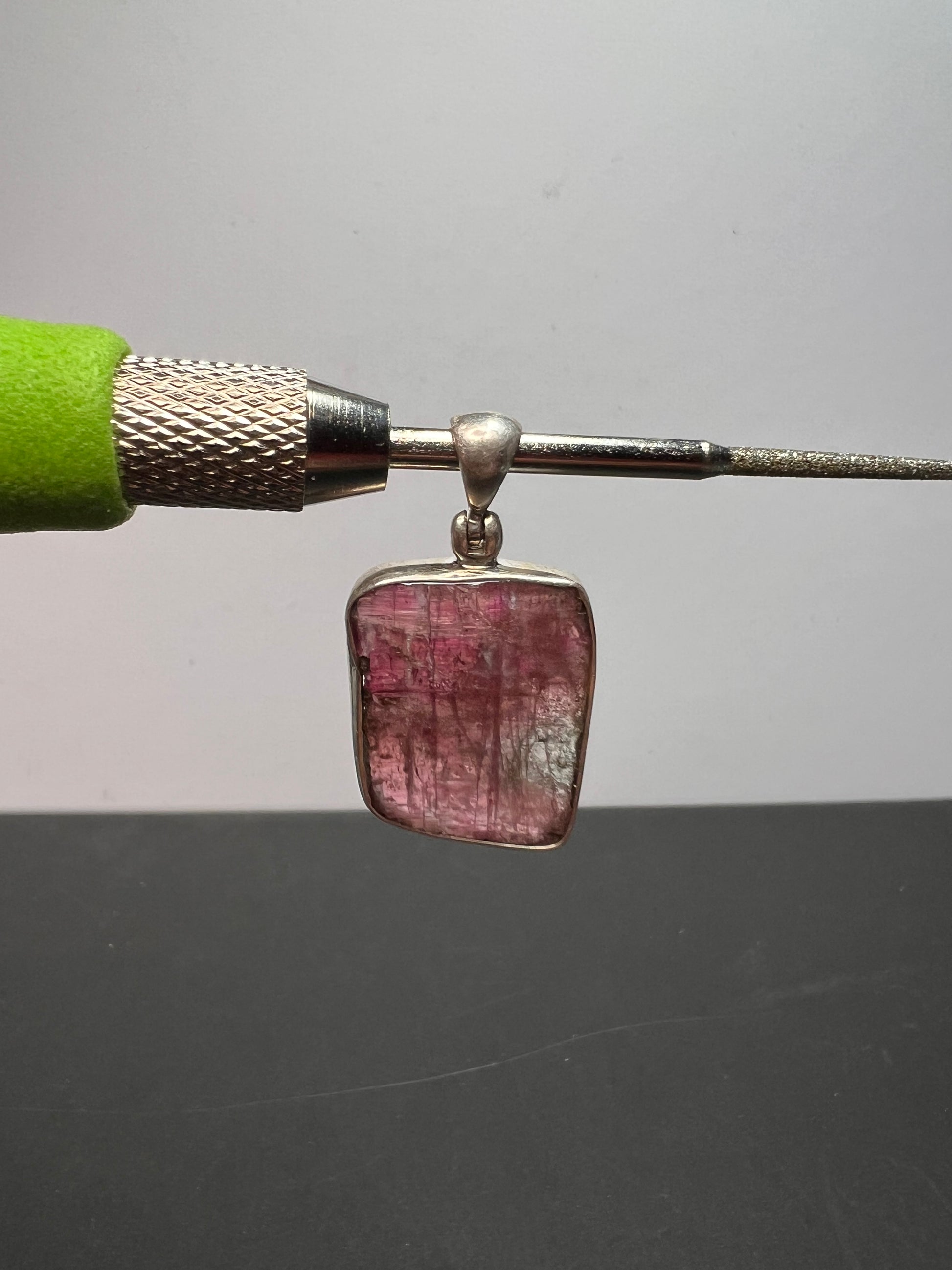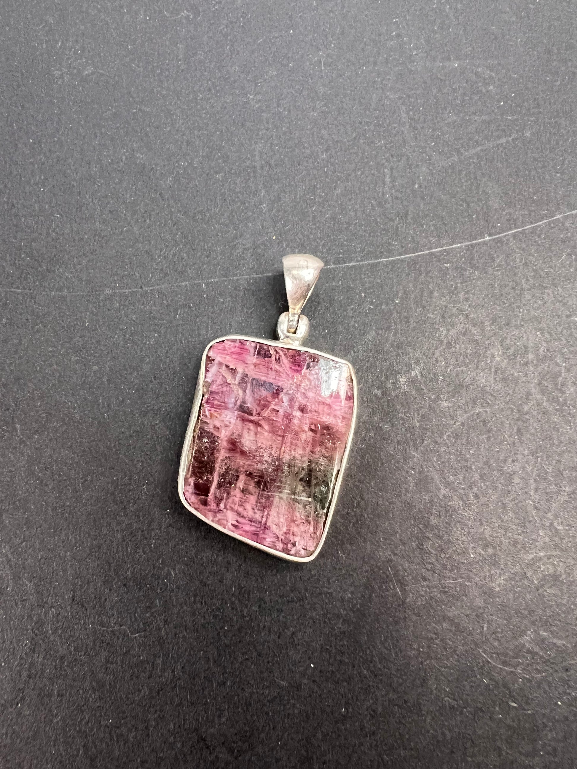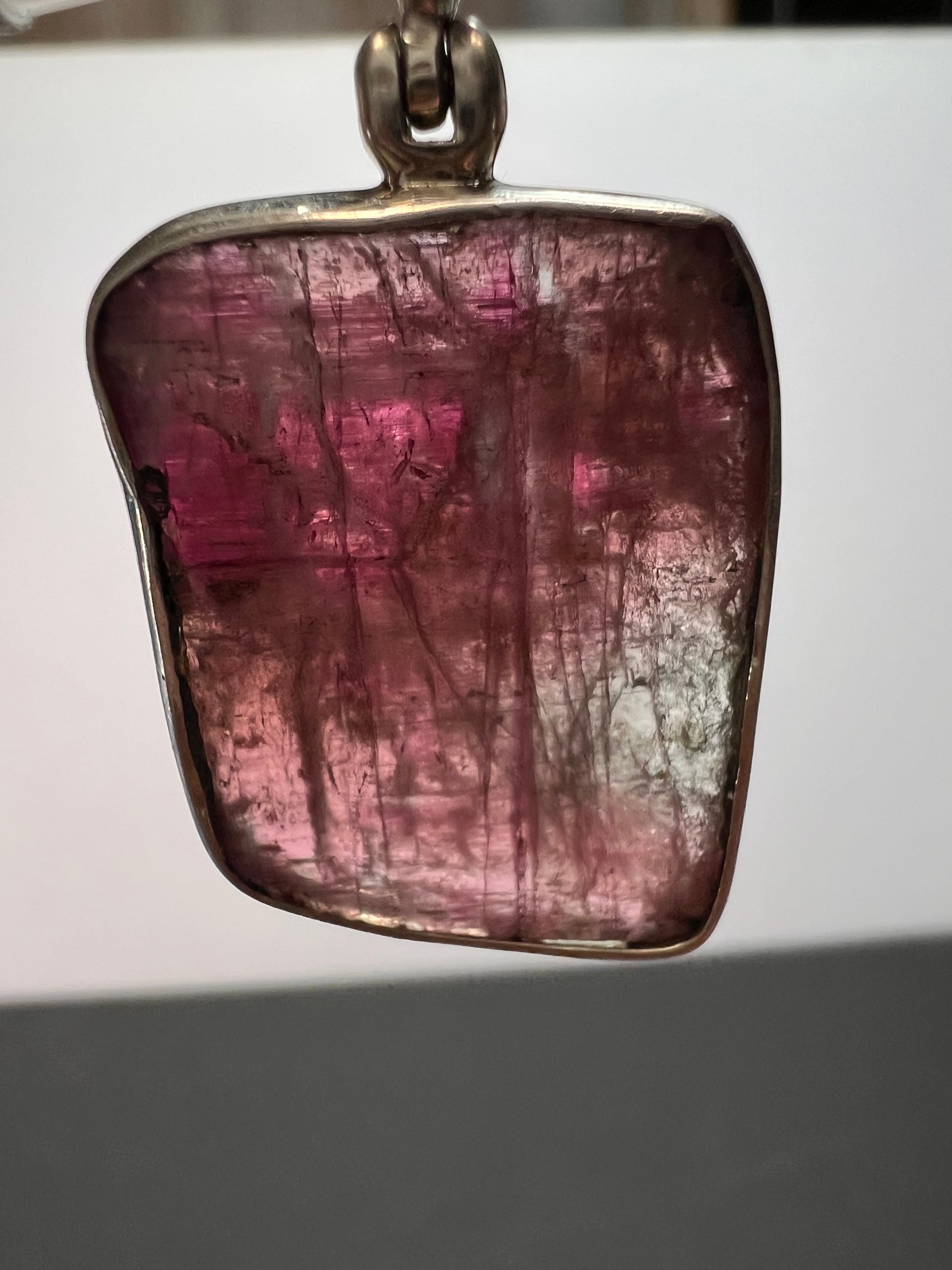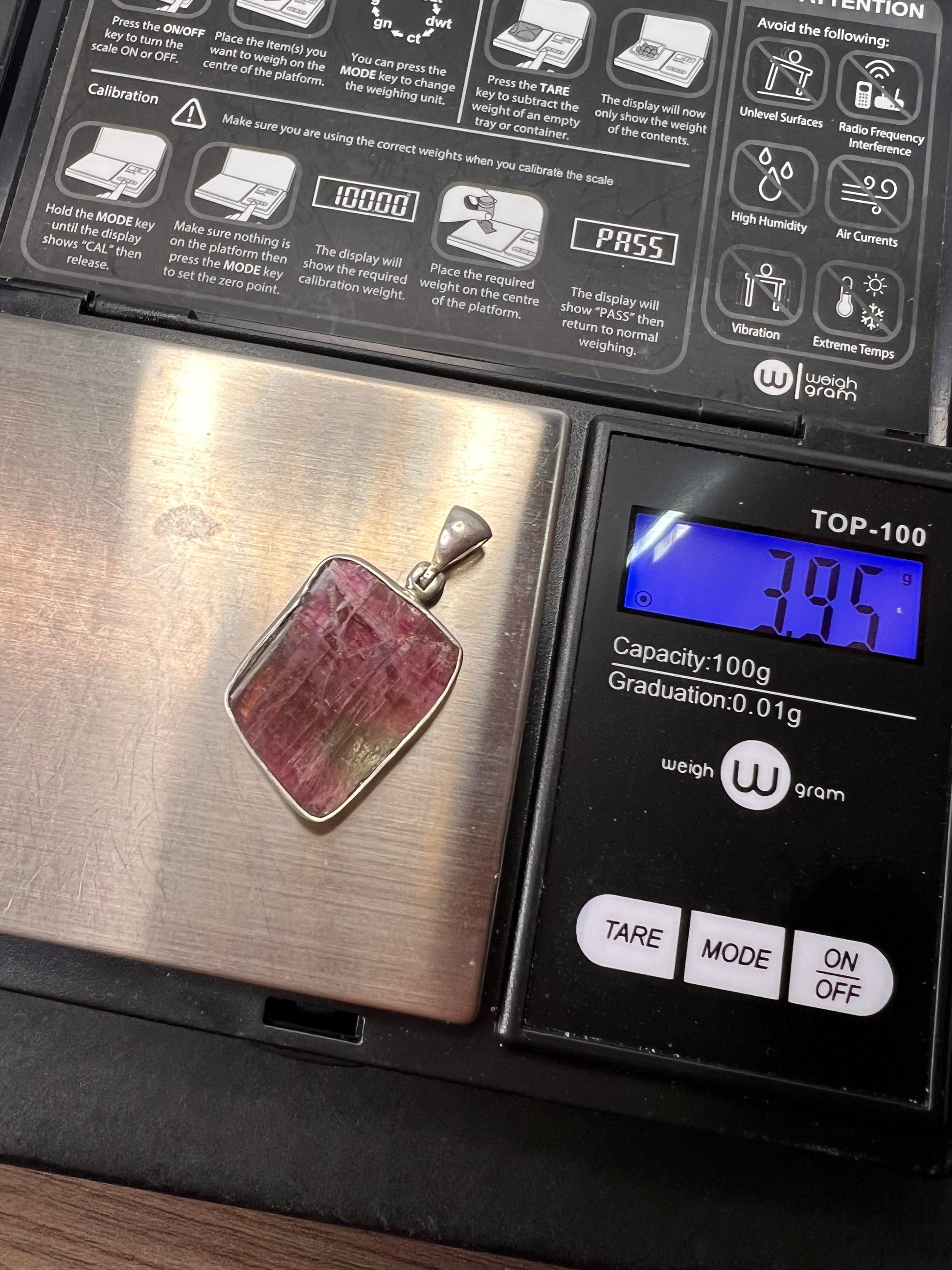 NEW Pink/ bi colored watermelon half rough tourmaline pendant in sterling silver 3.95 grams