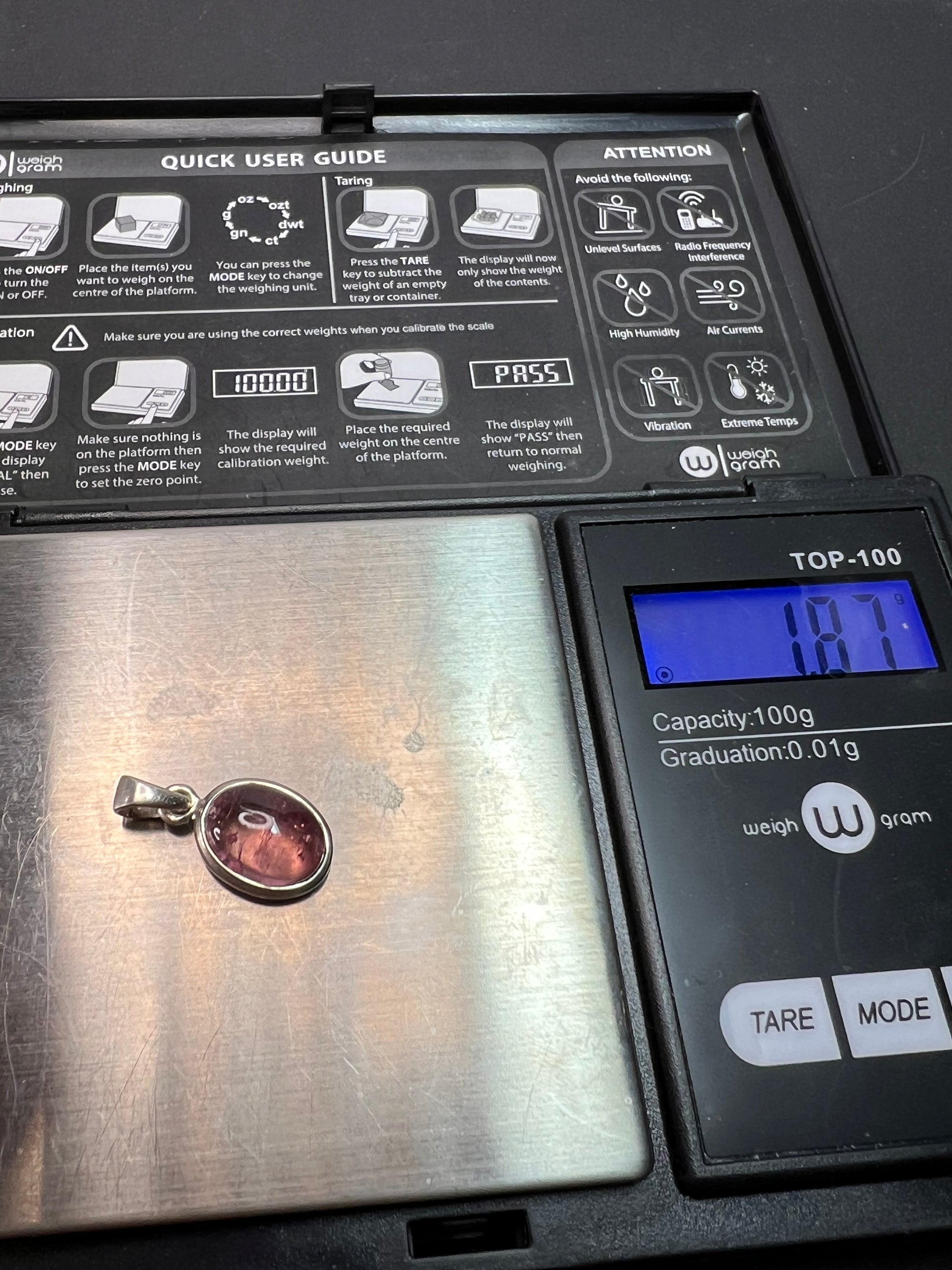 NEW Pink Rubellite tourmaline sterling silver pendant 1.87 grams