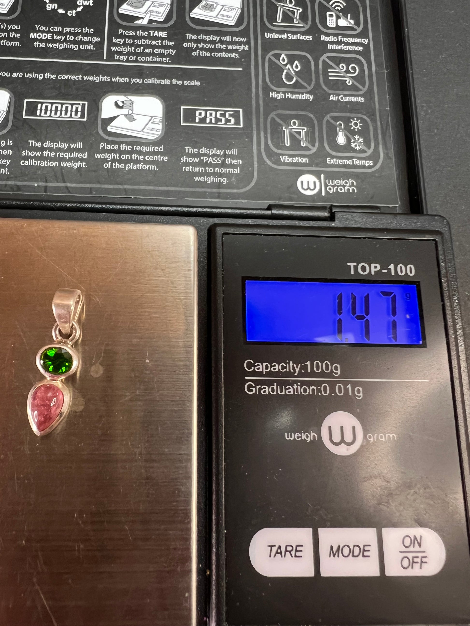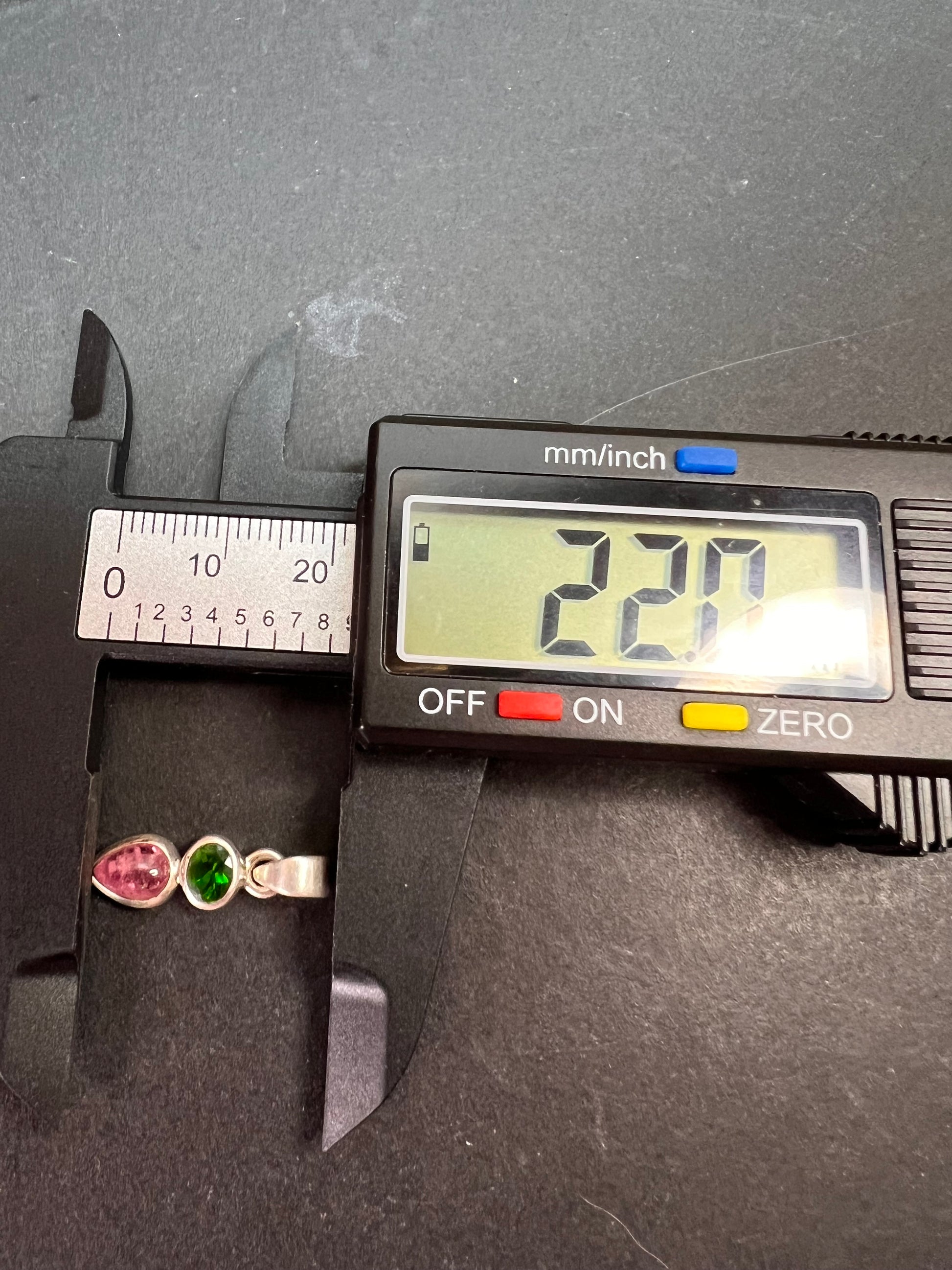 NEW Pink tourmaline and chrome diopside sterling silver pendant 1.47 grams