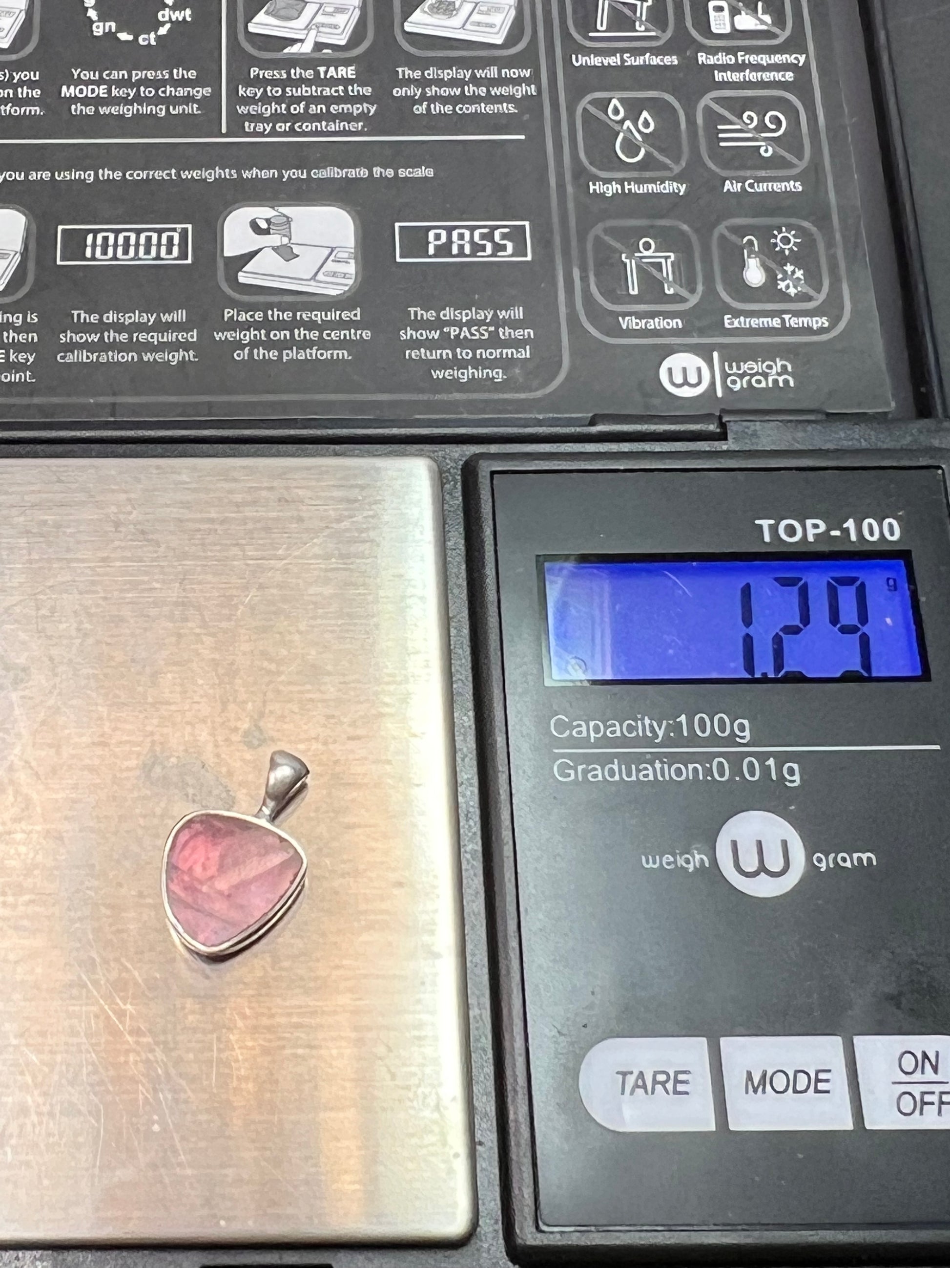 NEW Pink tourmaline sterling silver pendant 1.29 grams